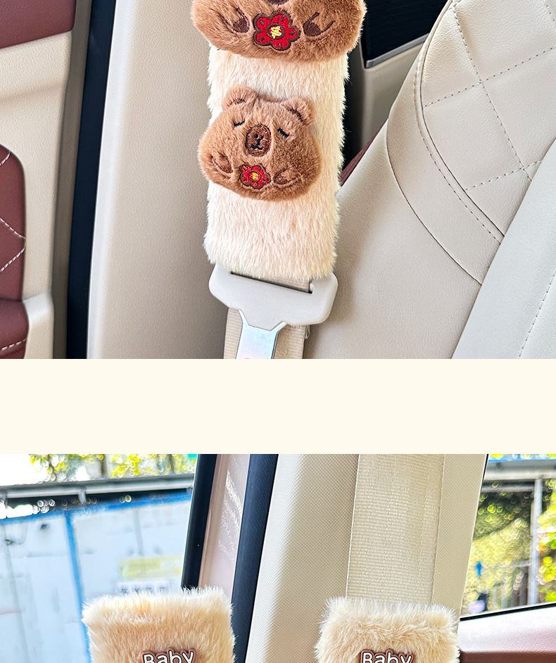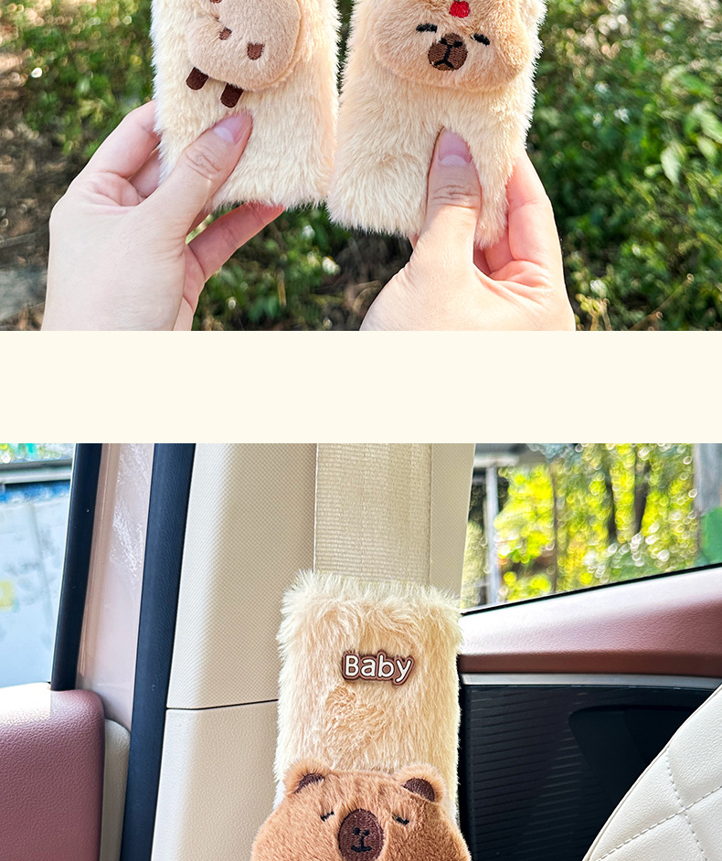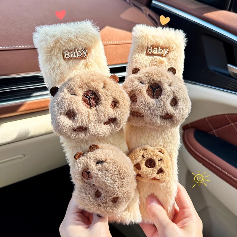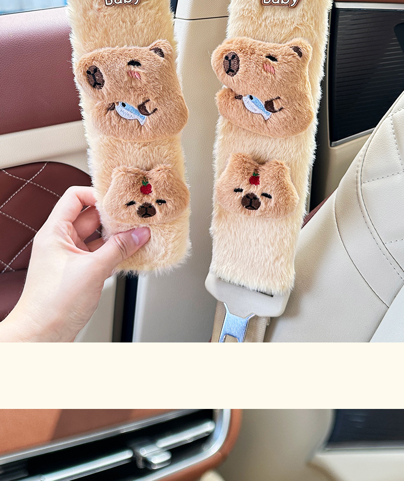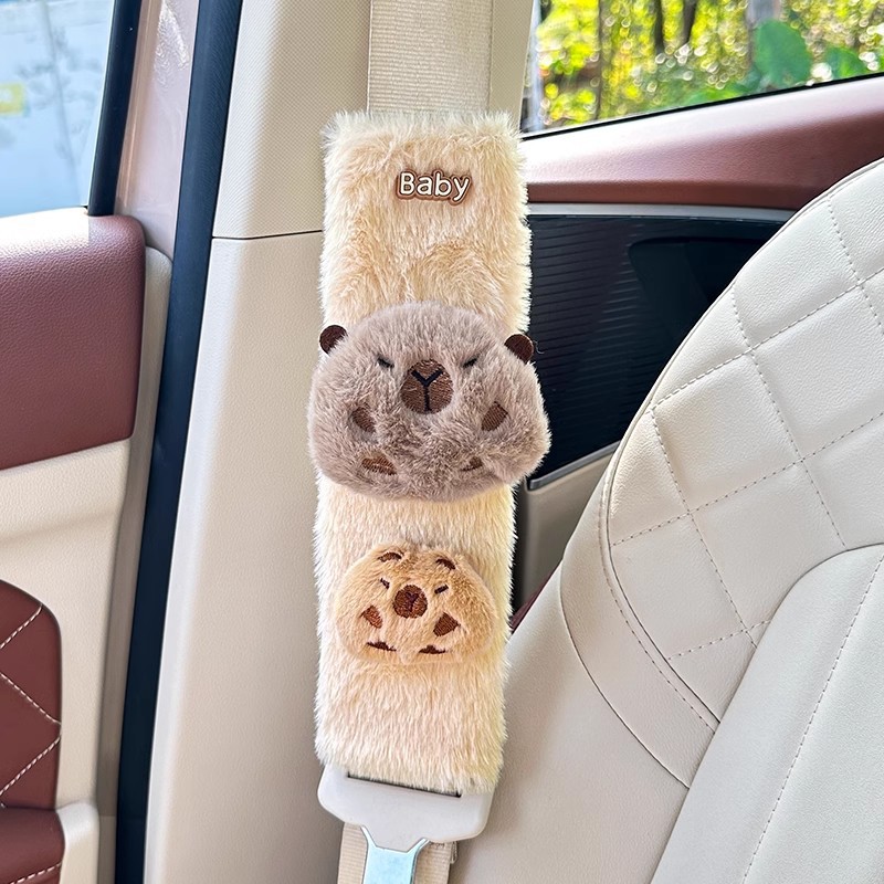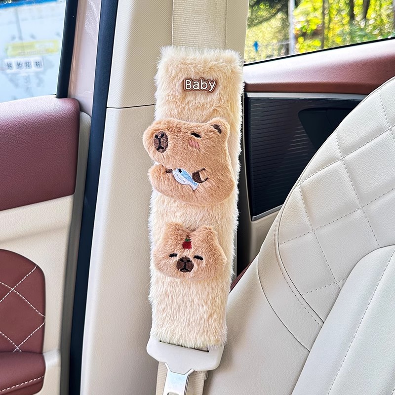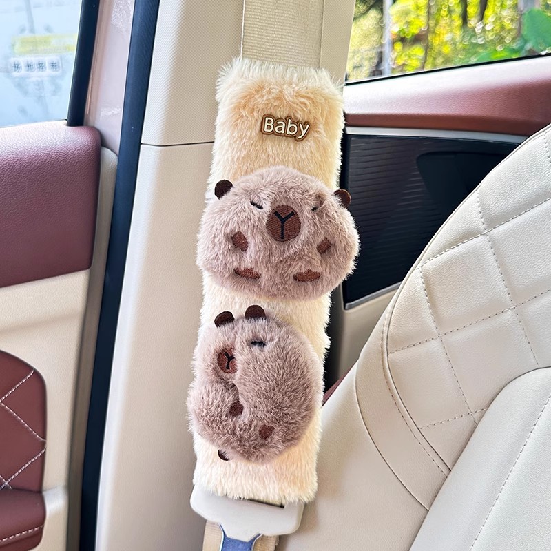 카피 바라 자동차 시트 벨트 어깨 패드 자동차 인테리어 장식 귀여운 겨울 봉제 인형 안전 벨트 여성스토어 가기