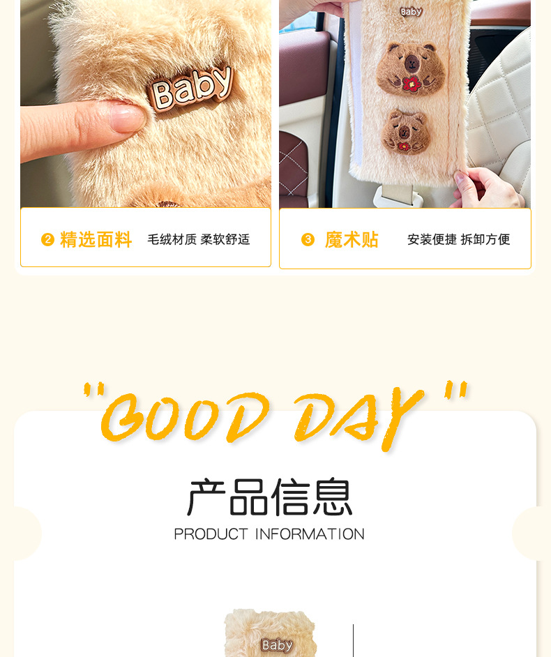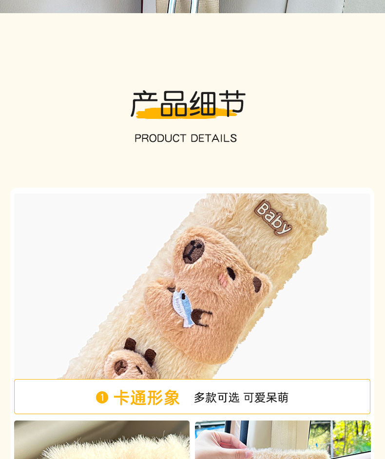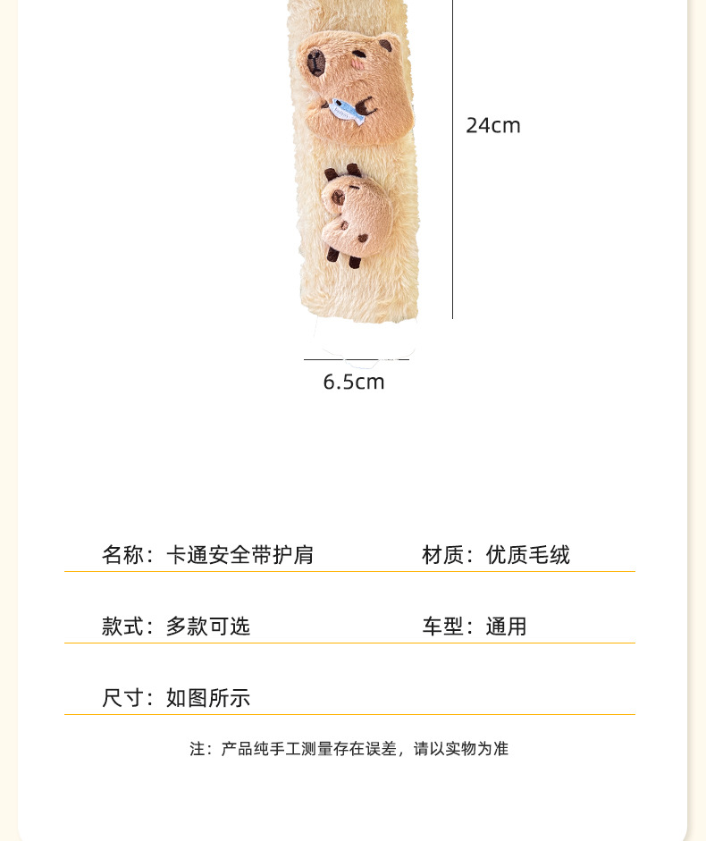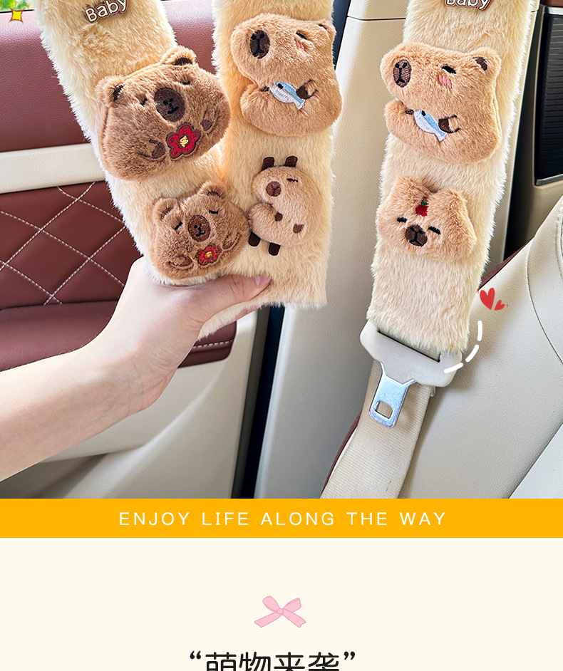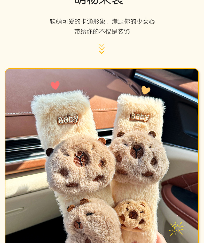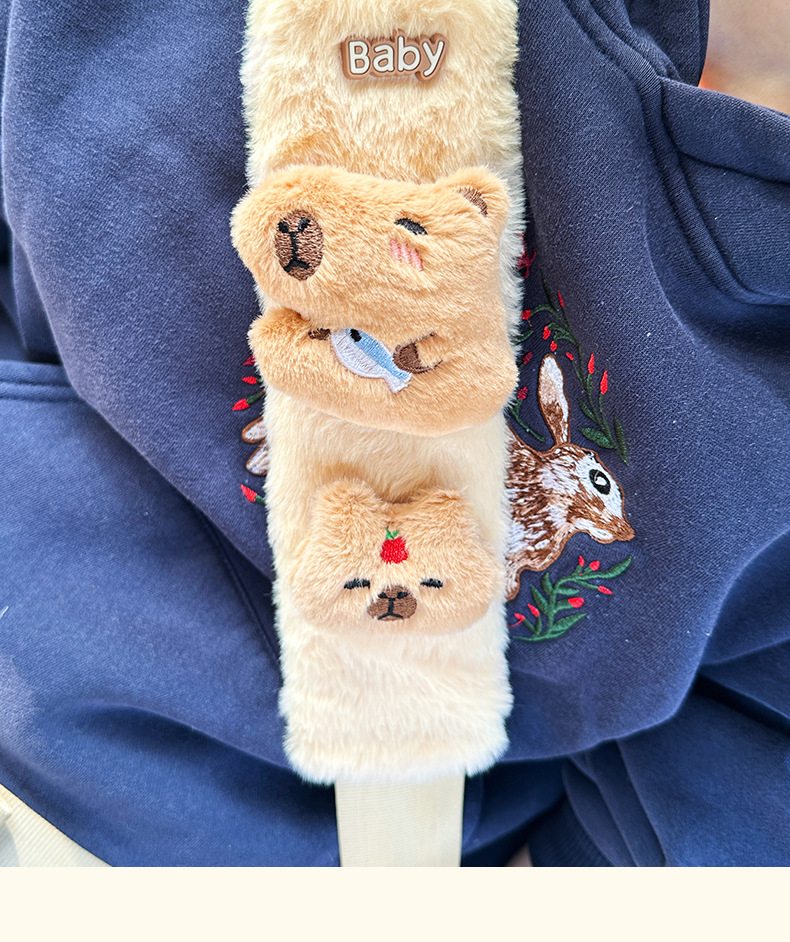 카피 바라 자동차 시트 벨트 어깨 패드 자동차 인테리어 장식 귀여운 겨울 봉제 인형 안전 벨트 여성스토어 가기
