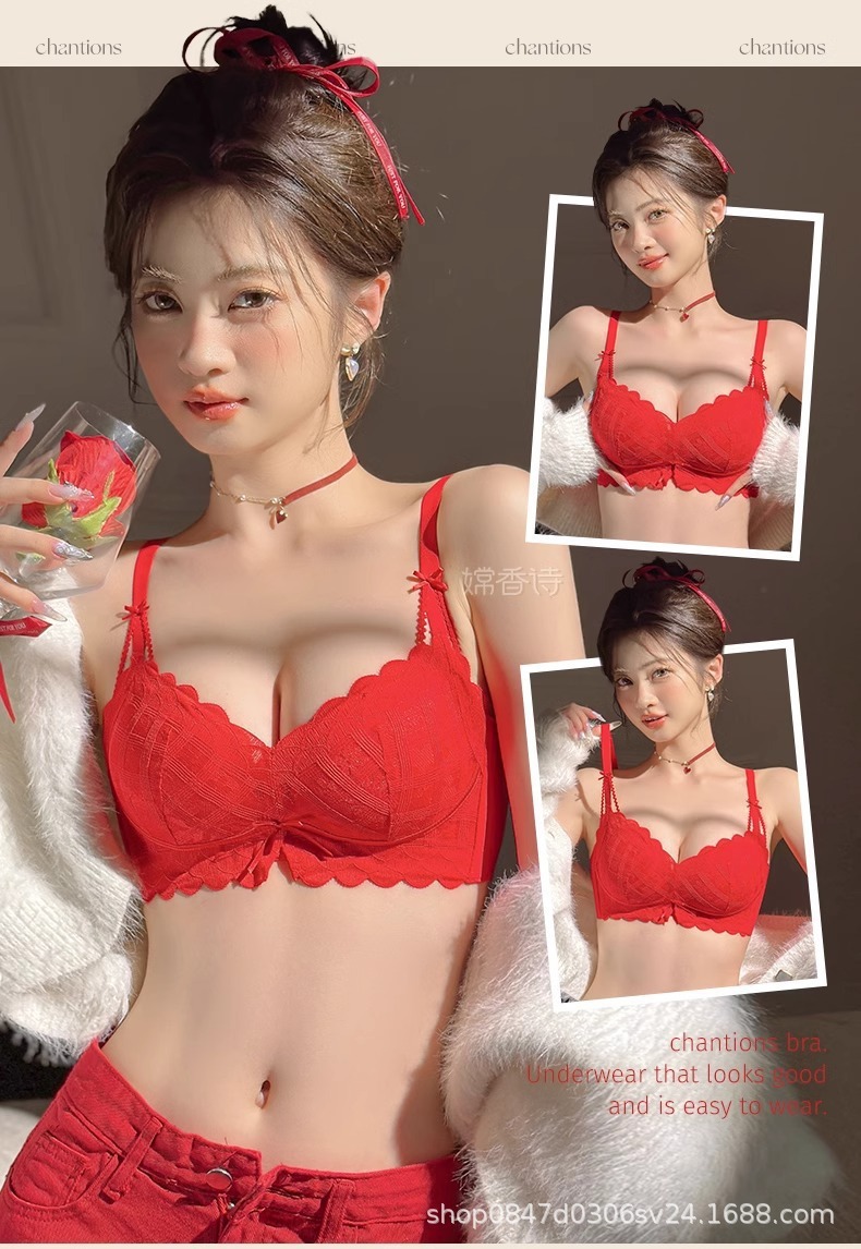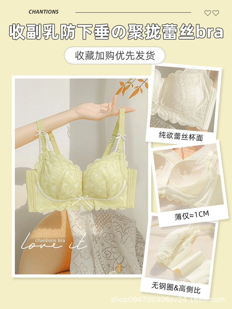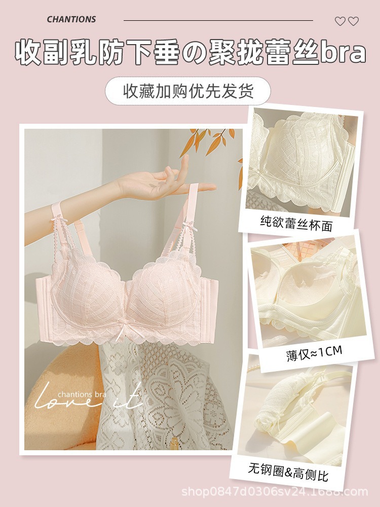2024 새로운 스타일 레이스 순수한 욕망 작은 가슴 푸시 업 브래지어 무테 속옷 여성의 처짐 방지 유방 브래지어스토어 가기