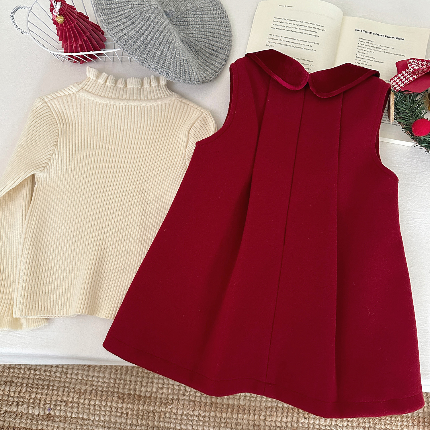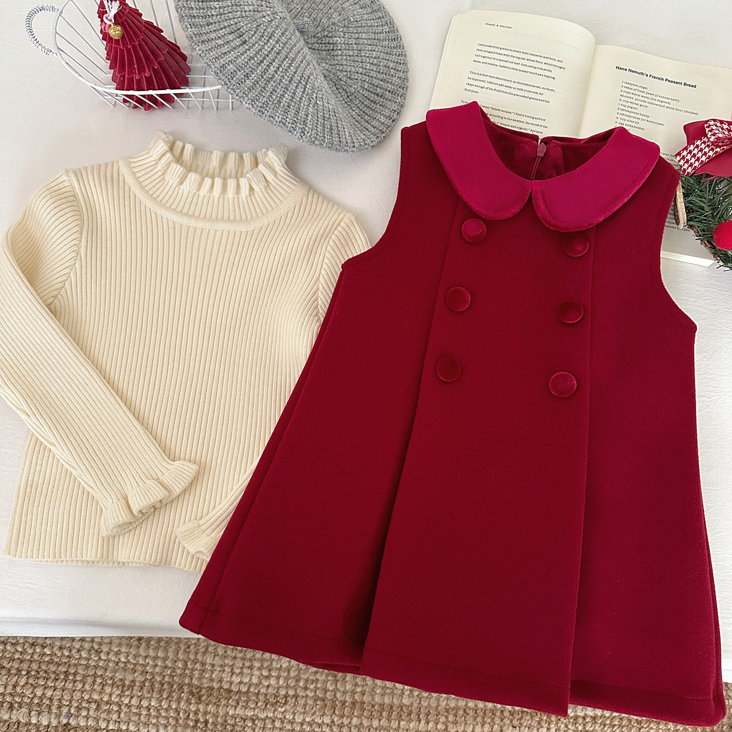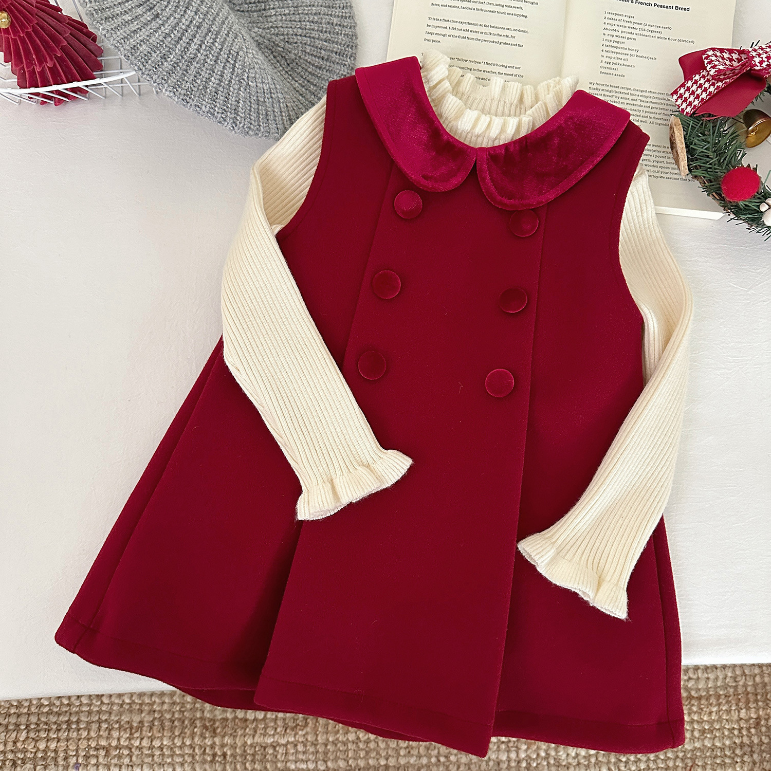 여아용 빨간색 모직 조끼 원피스 겨울 2025 신상 아기용 플리스 원피스 어린이용 두꺼운 새해 원피스스토어 가기