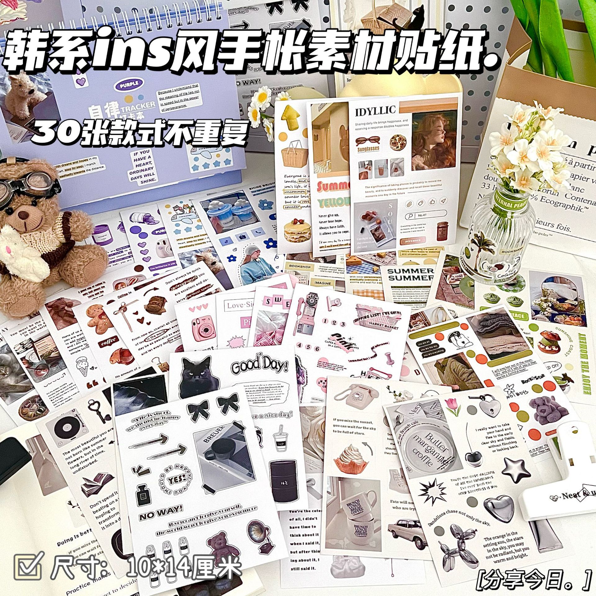 한국어 ins 스타일 DIY 스티커 예술적 간단한 높은 색상 가치 창조적 인 손 계정 소재 스티커 휴대 전화 장식 스티커스토어 가기