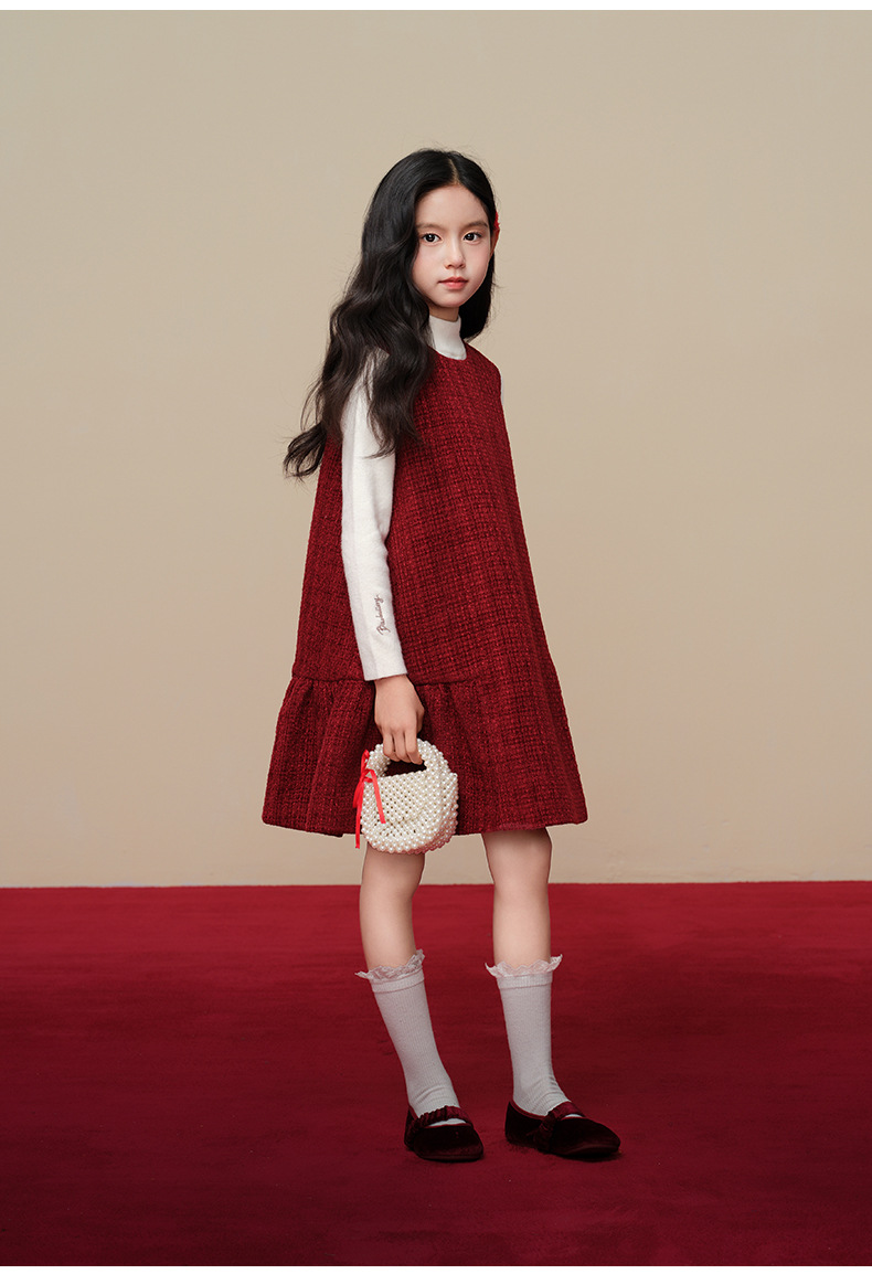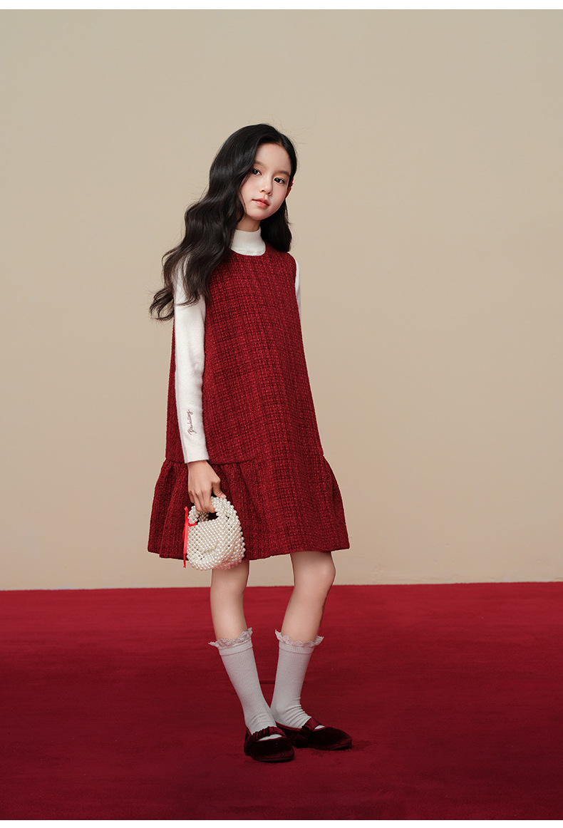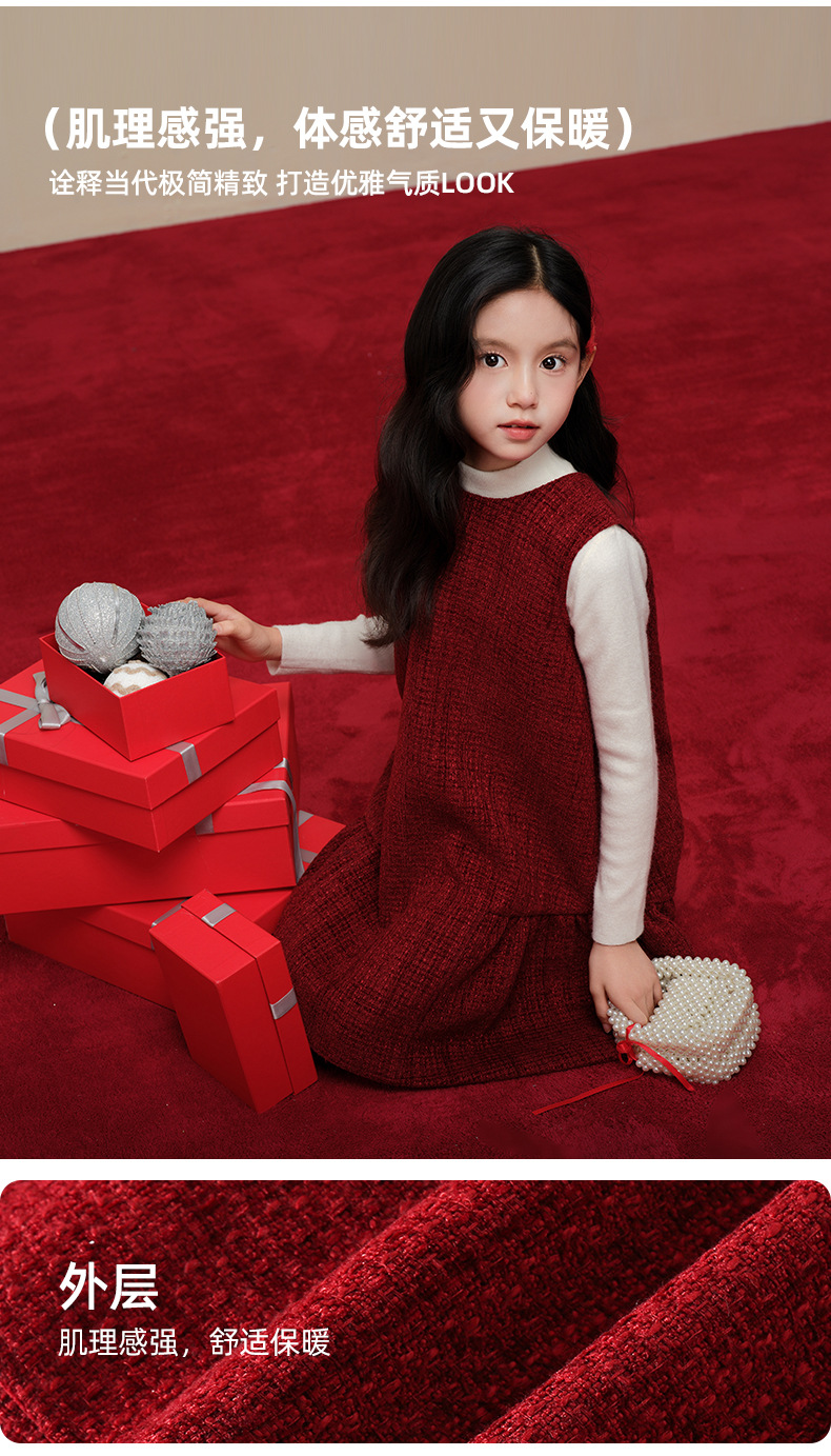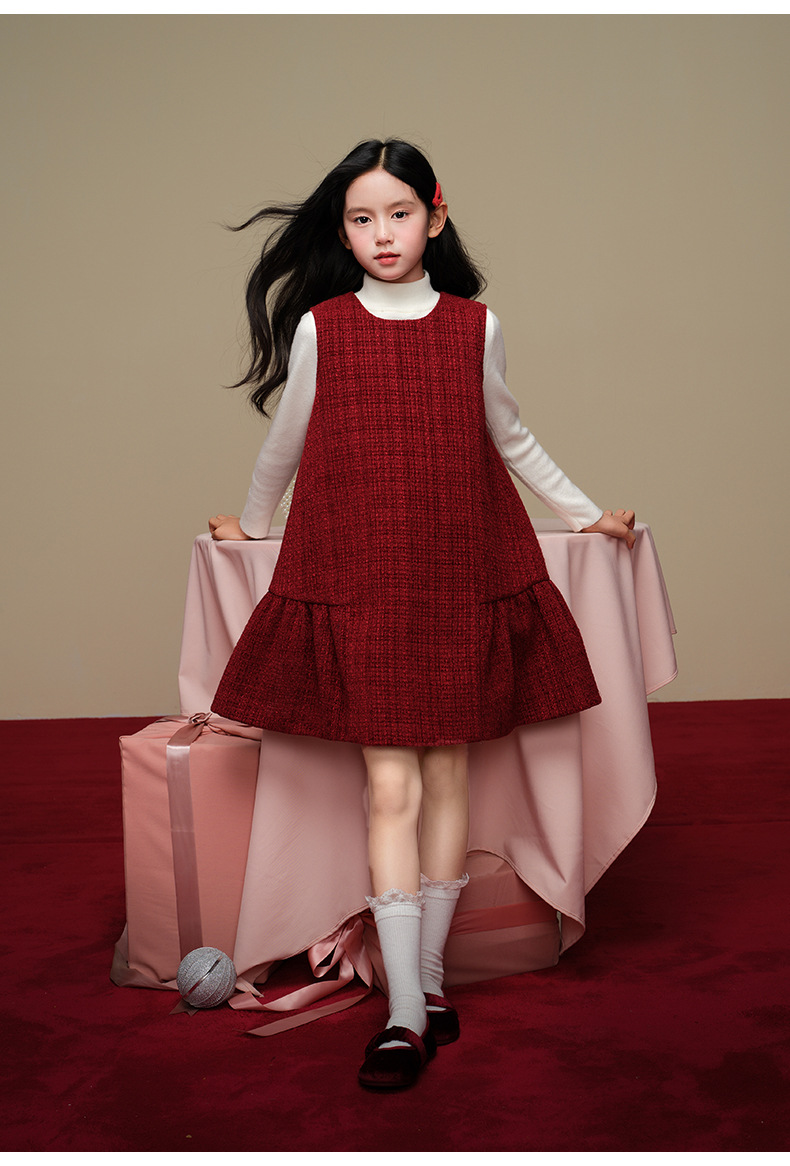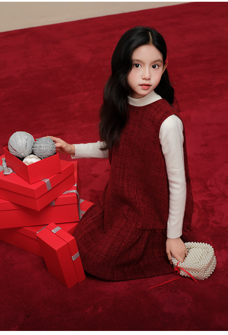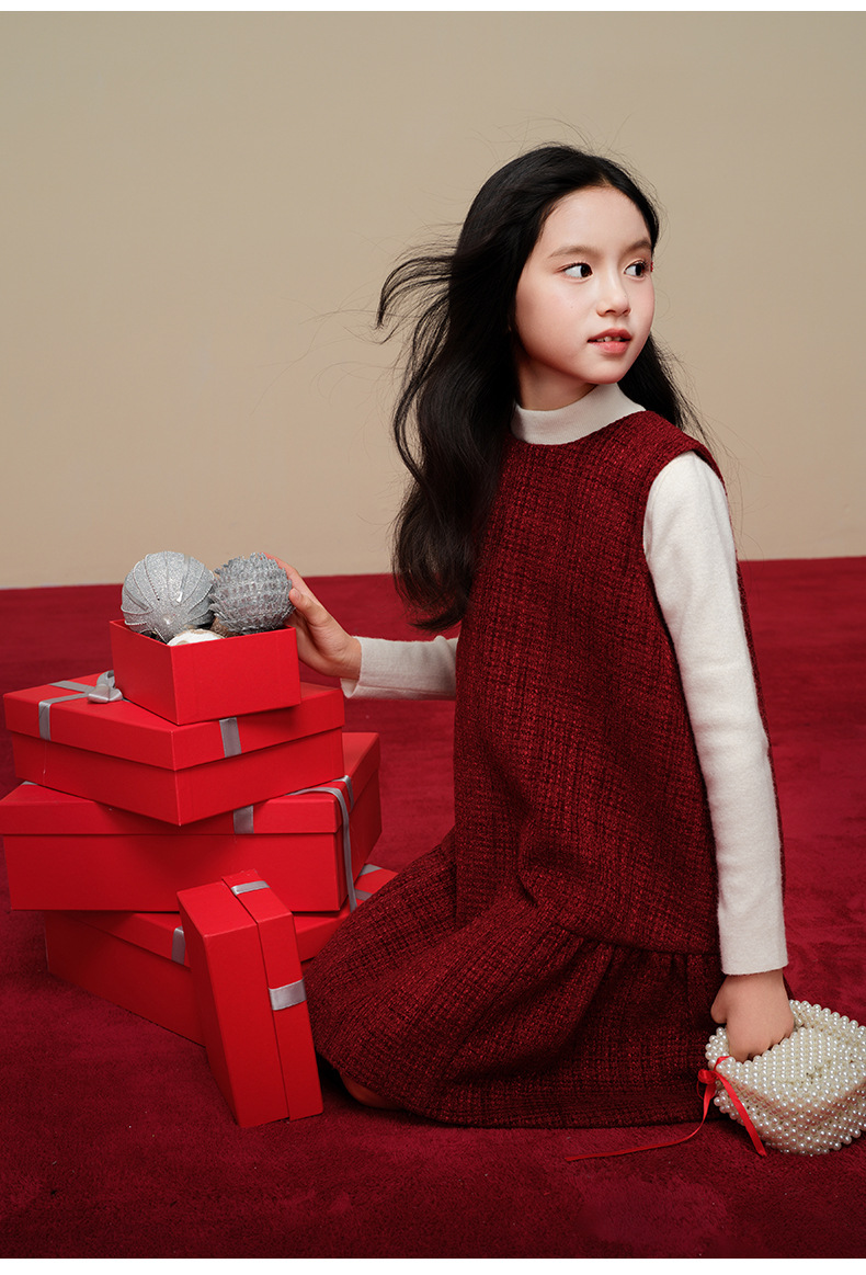 Amoy 마을 크리스마스 딸 바람 원피스 소녀 가을과 겨울 [Ankora 붉은 굵은 울] 작은 향기로운 바람 잠 못 이루는 치마