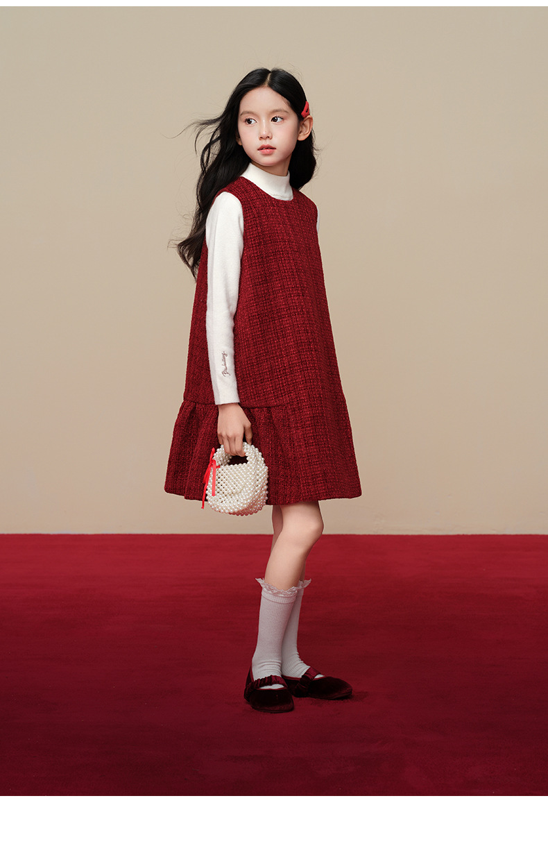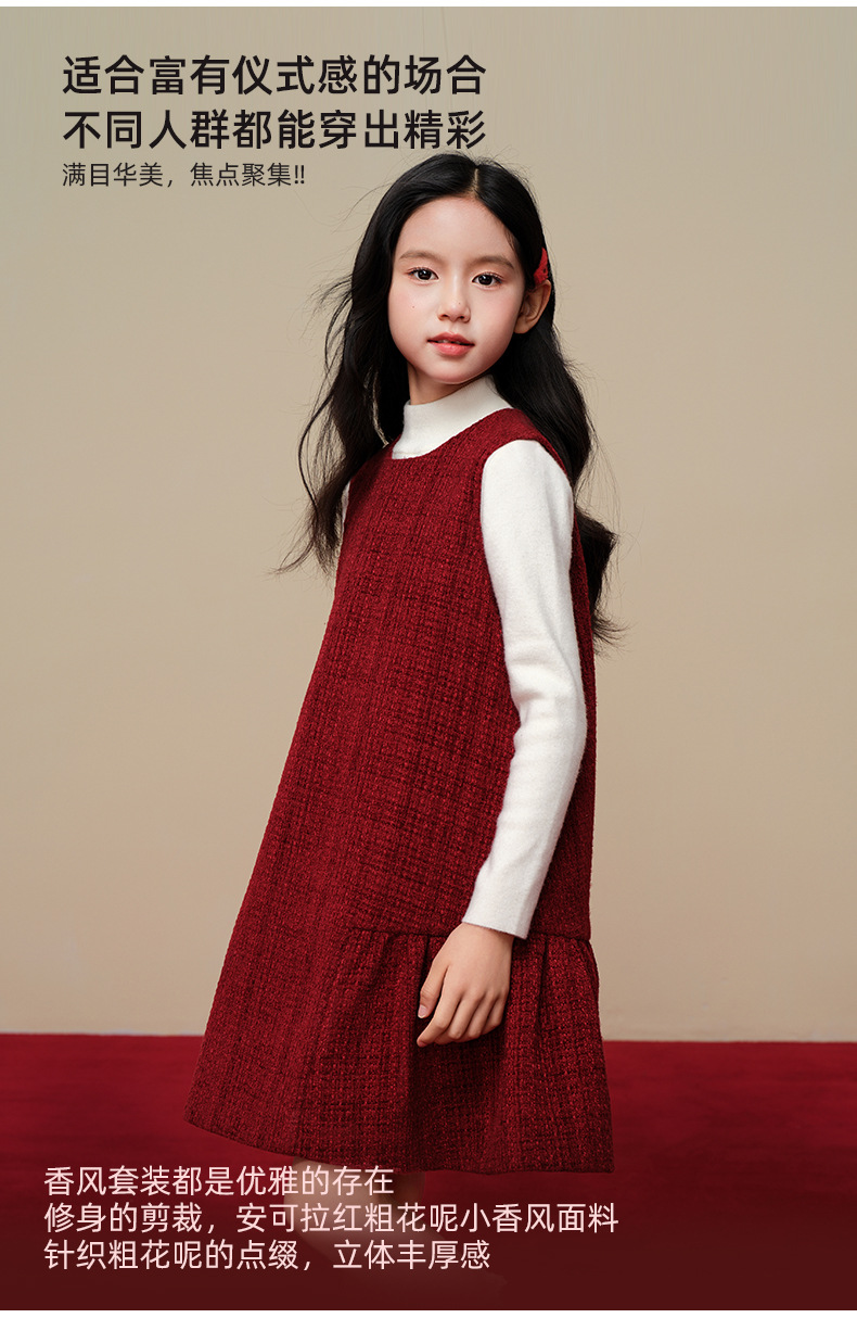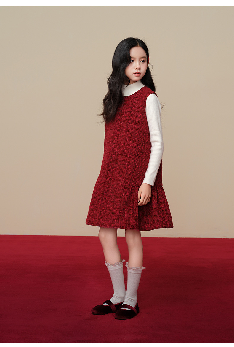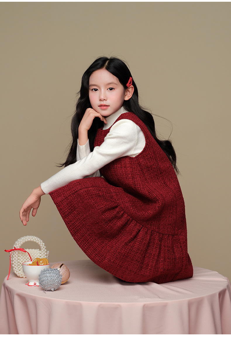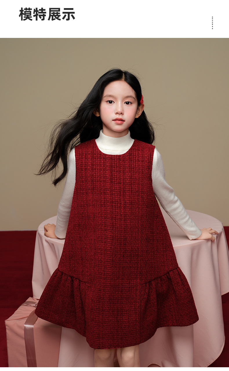 Amoy 마을 크리스마스 딸 바람 원피스 소녀 가을과 겨울 [Ankora 붉은 굵은 울] 작은 향기로운 바람 잠 못 이루는 치마