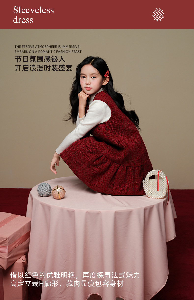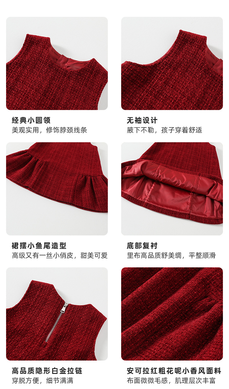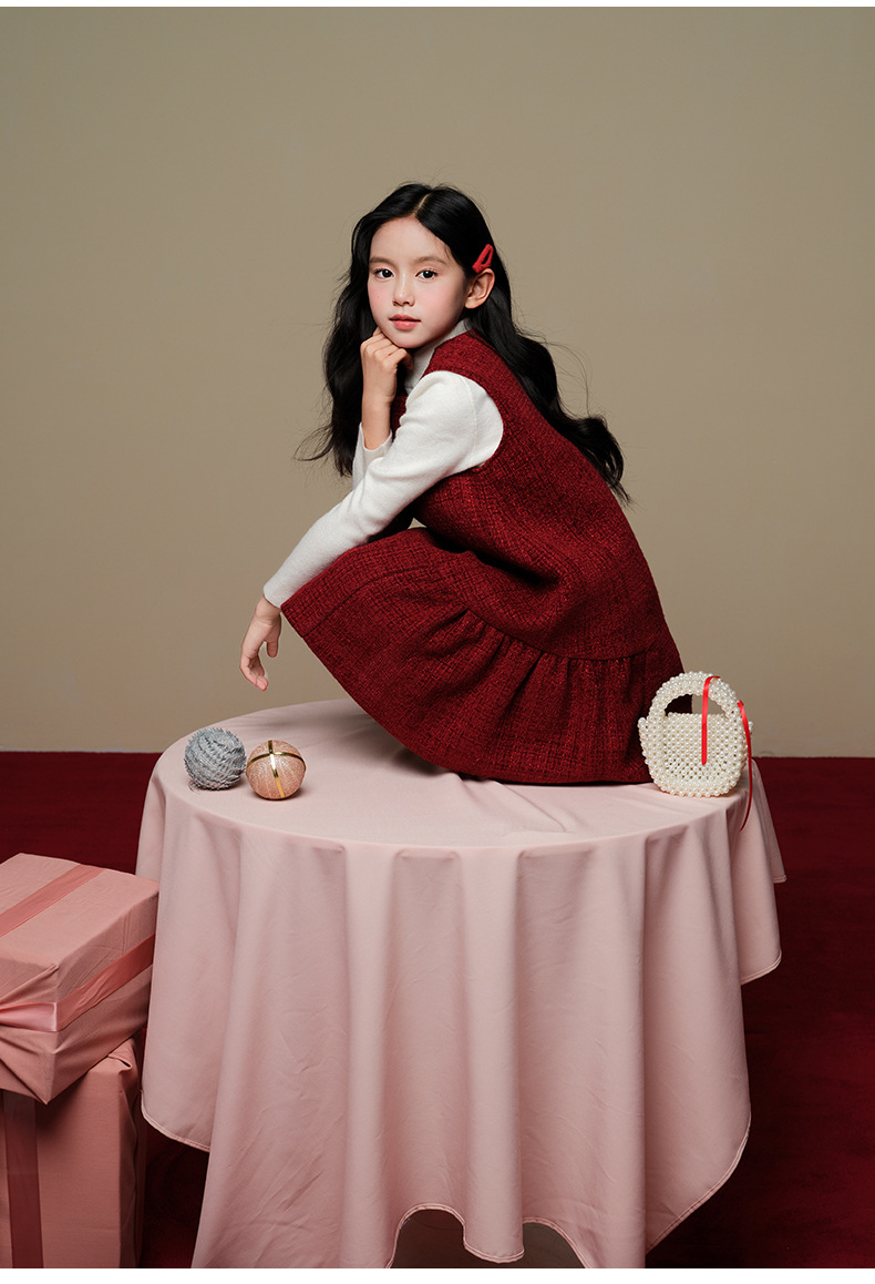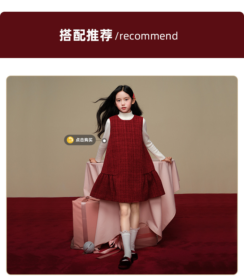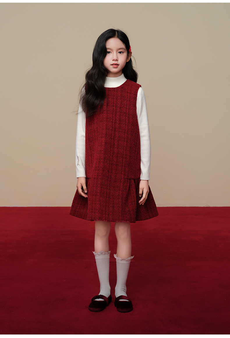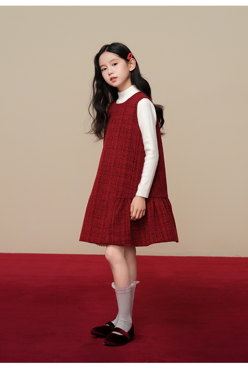 Amoy 마을 크리스마스 딸 바람 원피스 소녀 가을과 겨울 [Ankora 붉은 굵은 울] 작은 향기로운 바람 잠 못 이루는 치마