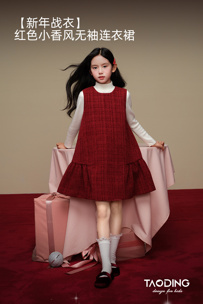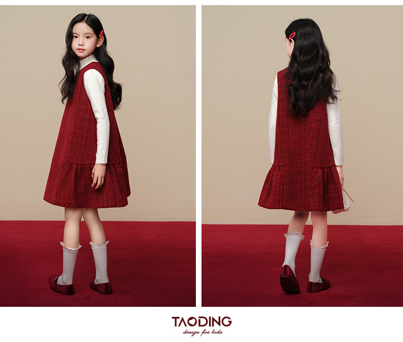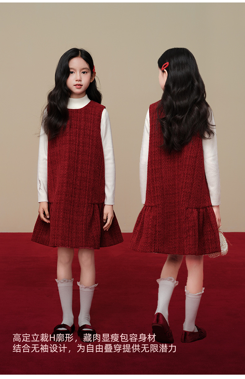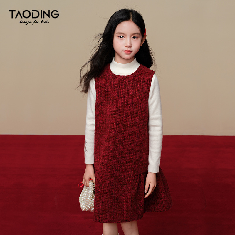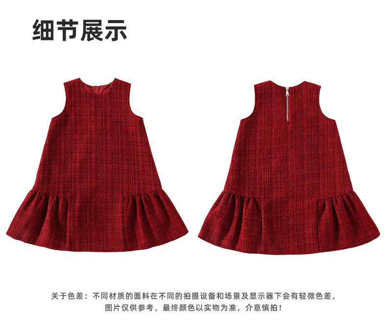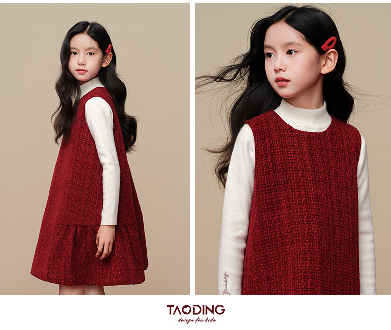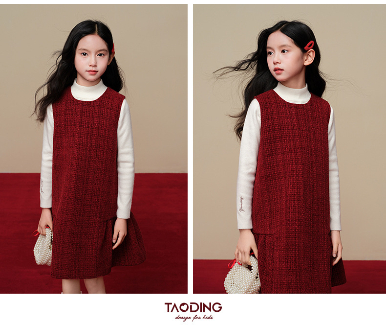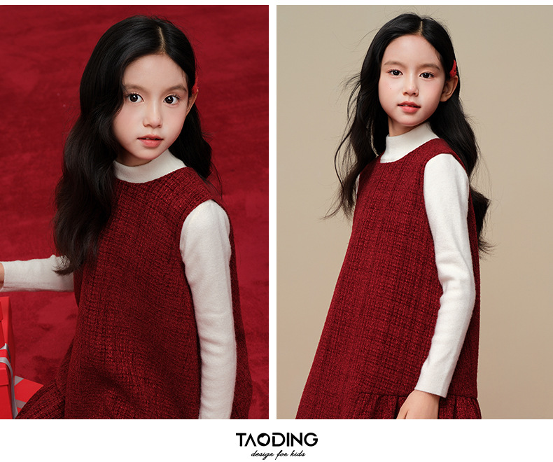 Amoy 마을 크리스마스 딸 바람 원피스 소녀 가을과 겨울 [Ankora 붉은 굵은 울] 작은 향기로운 바람 잠 못 이루는 치마