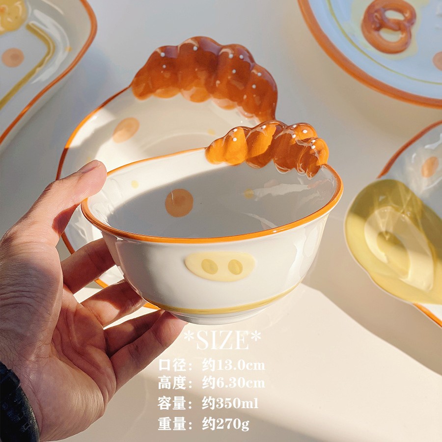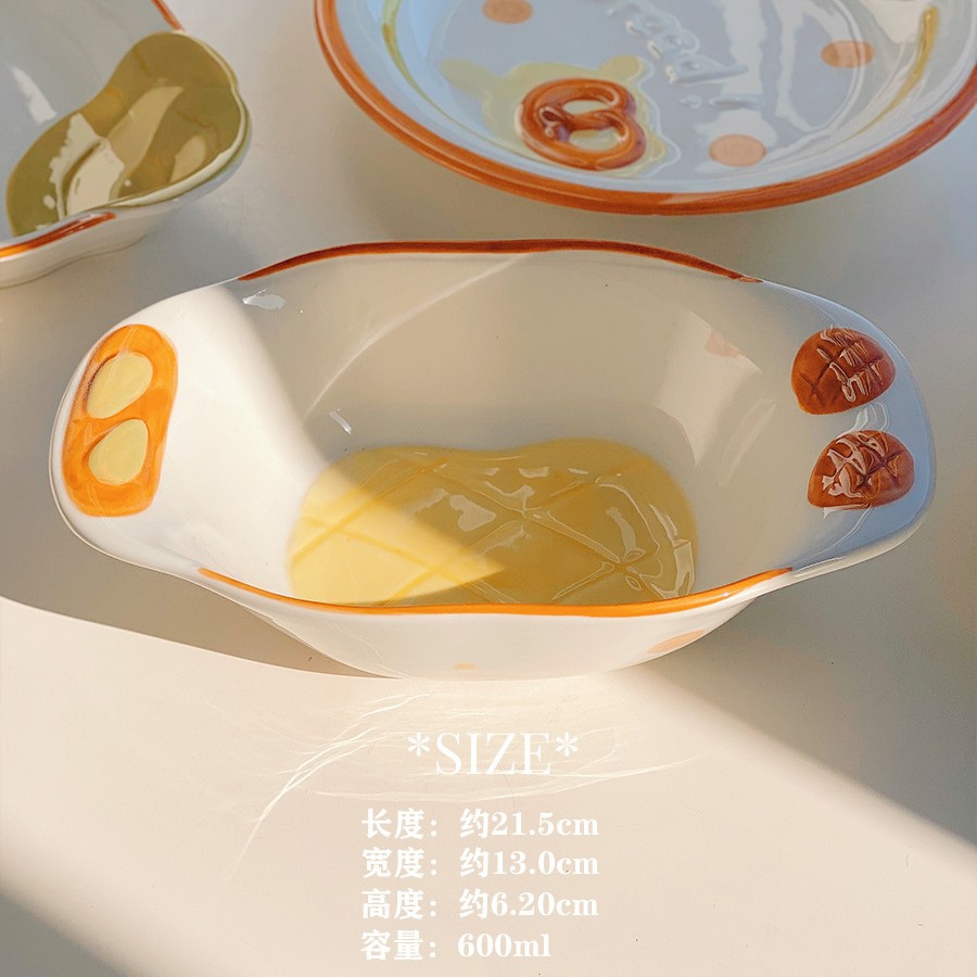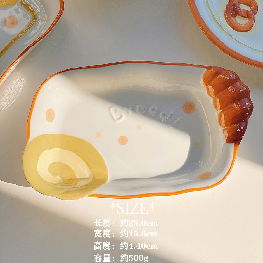 귀여운 빵 세라믹 식기 가정용 그릇 디저트 쿠키 비스킷 빵 높은 색상 가치 디스크 밥 그릇 숟가락 접시