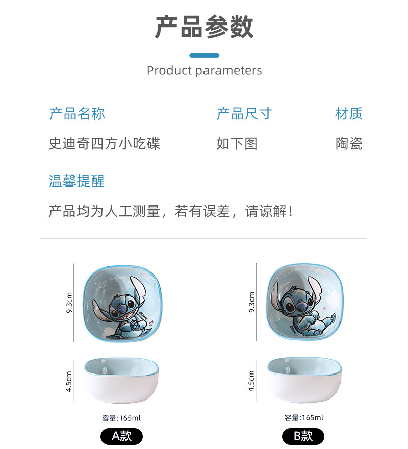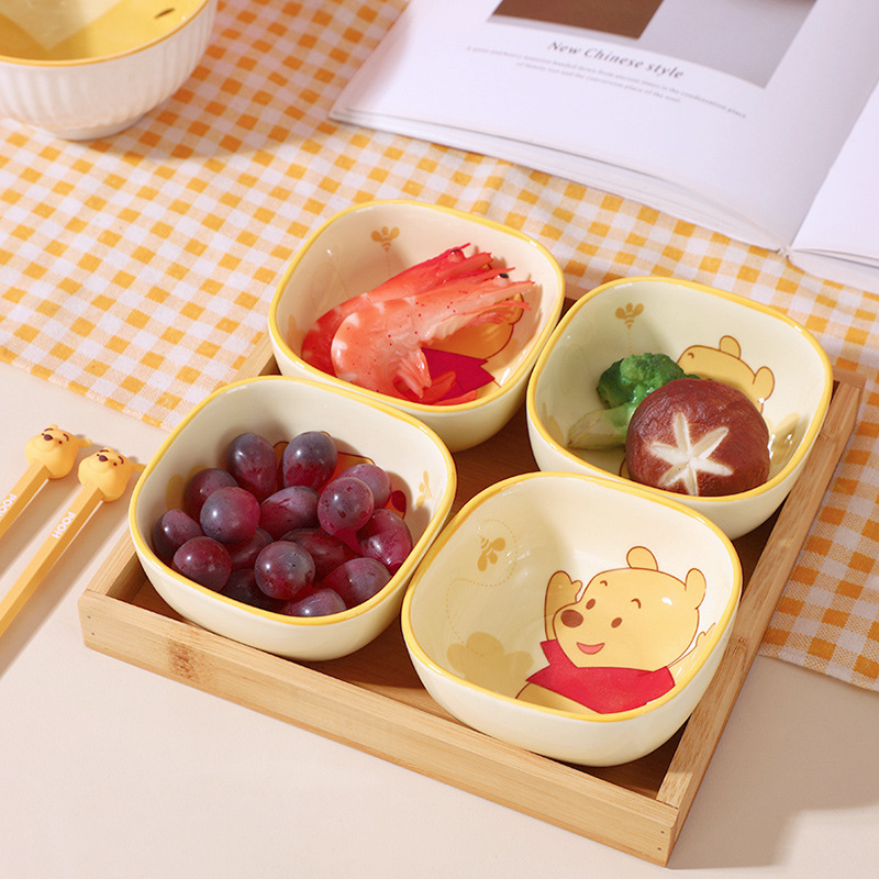 디즈니 새로운 세라믹 가정용 딥 딥 디쉬 만화 스퀘어 스낵 접시 식기 언더 유약 컬러 조미료 요리스토어 가기
