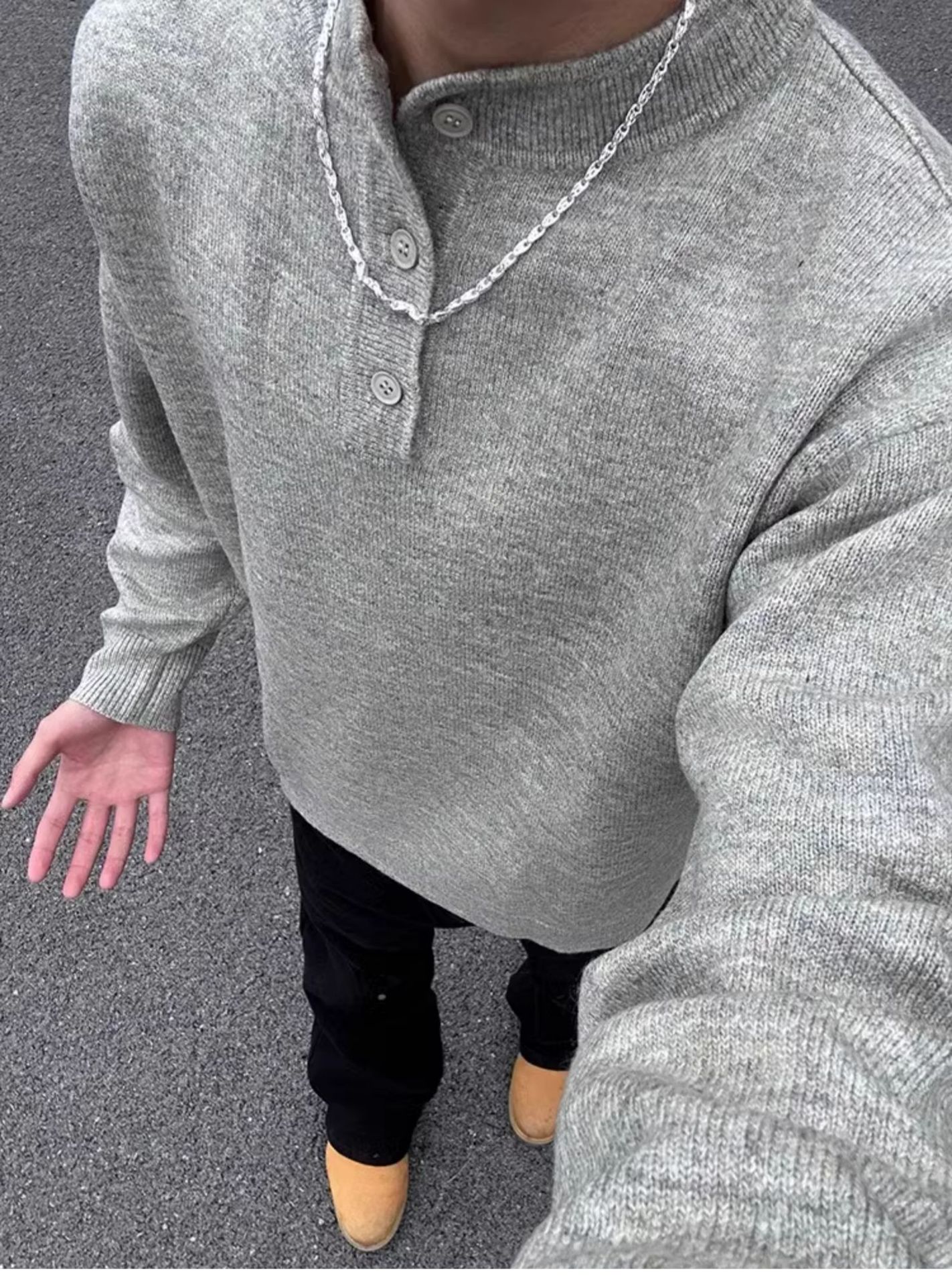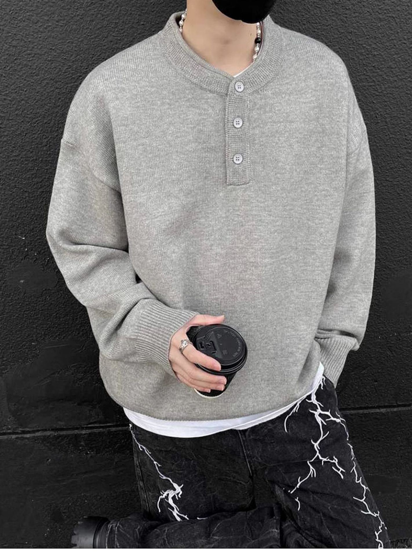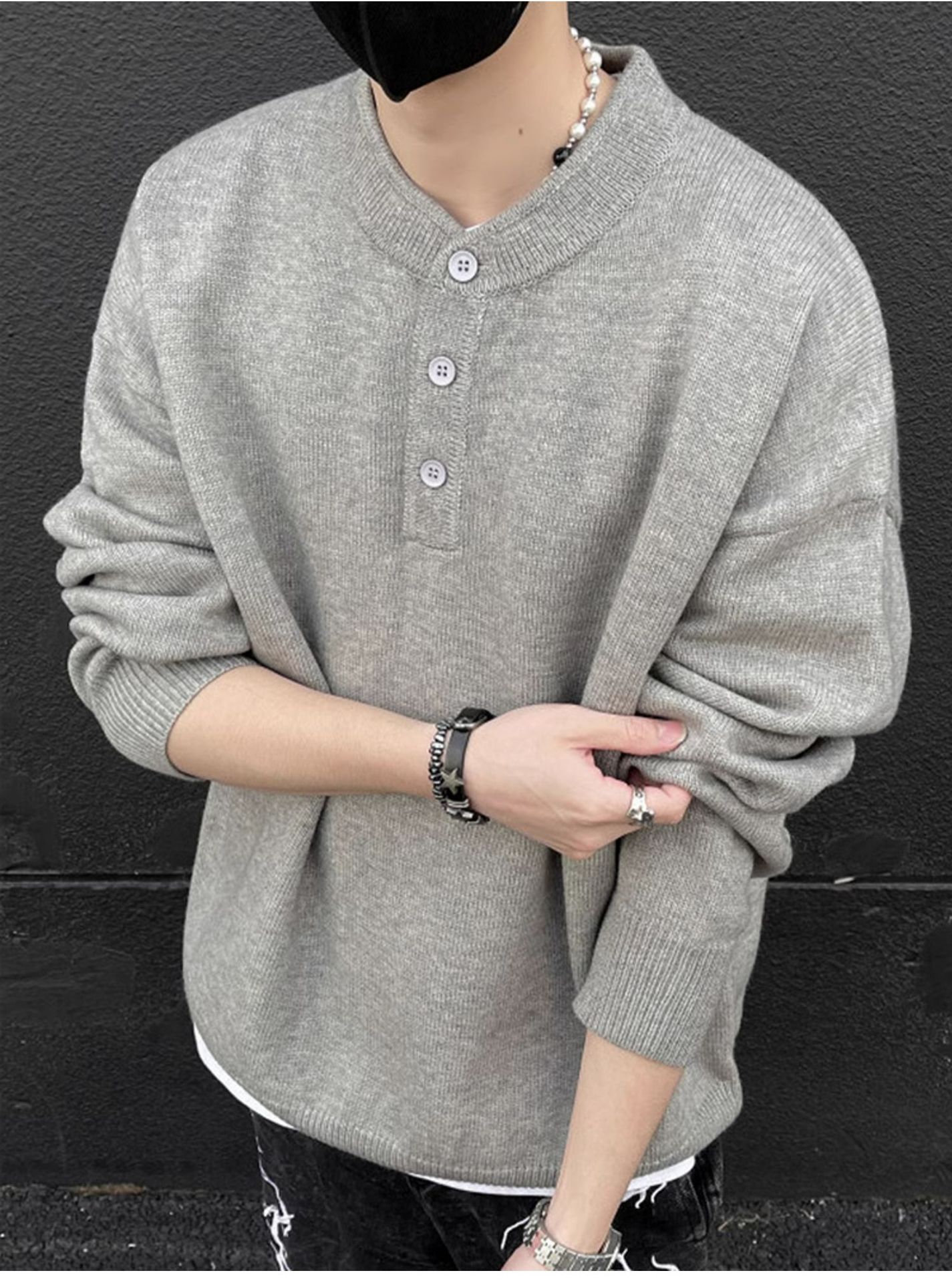 그레이 아메리칸 헨리 칼라 스웨터 남자 겨울 하이 엔드 게으른 스타일 바지 스웨터 클린 핏 재킷스토어 가기