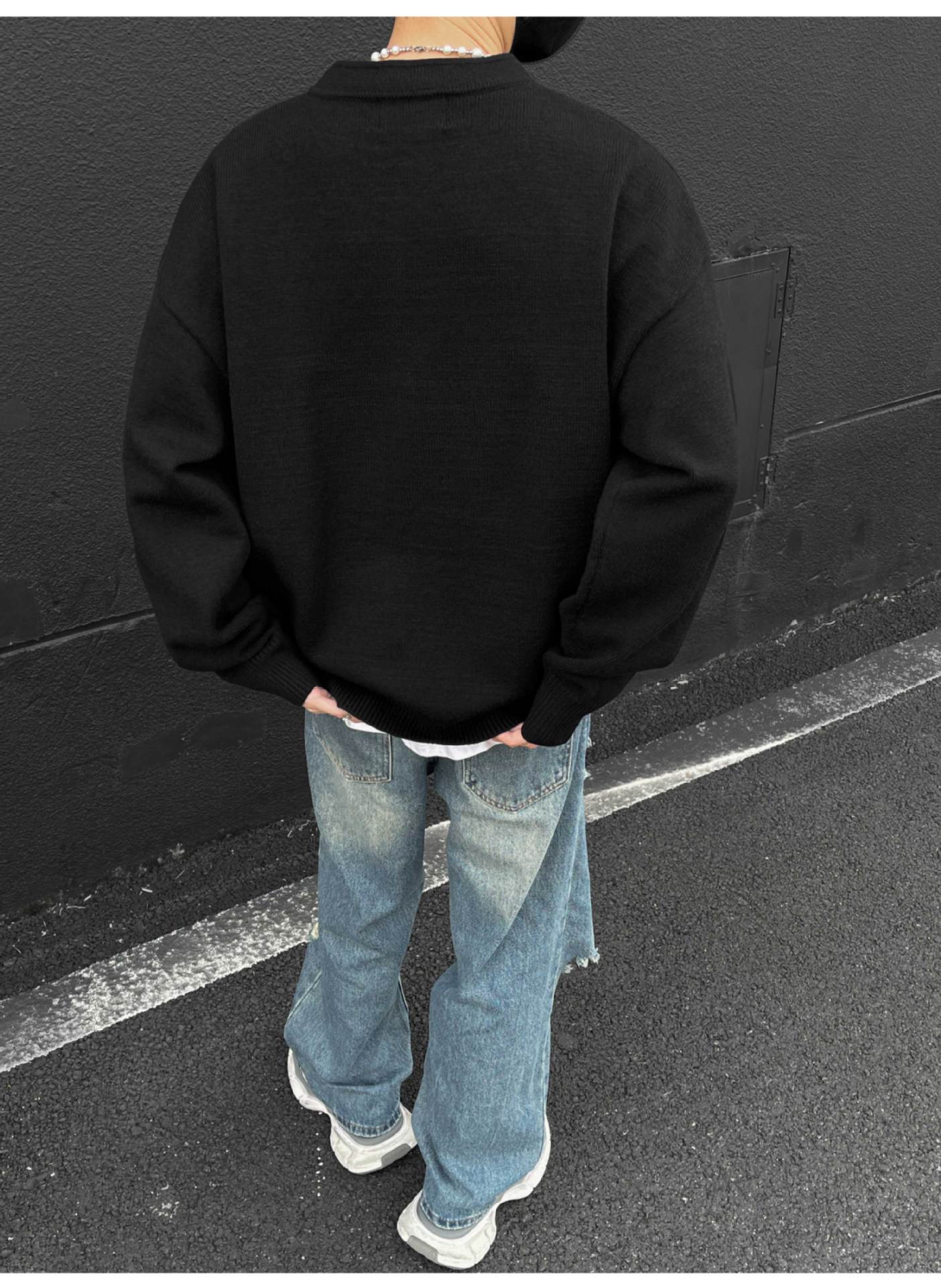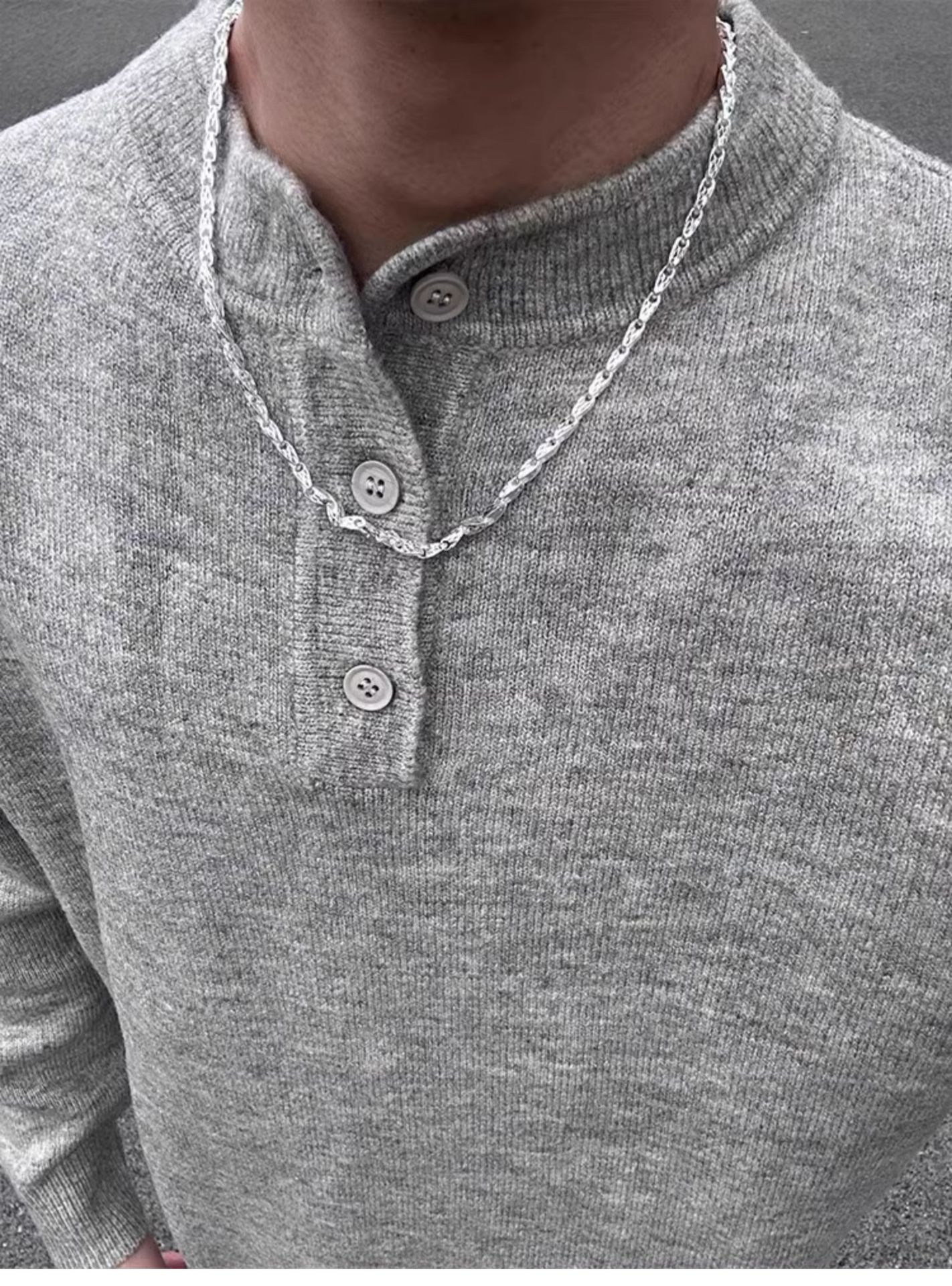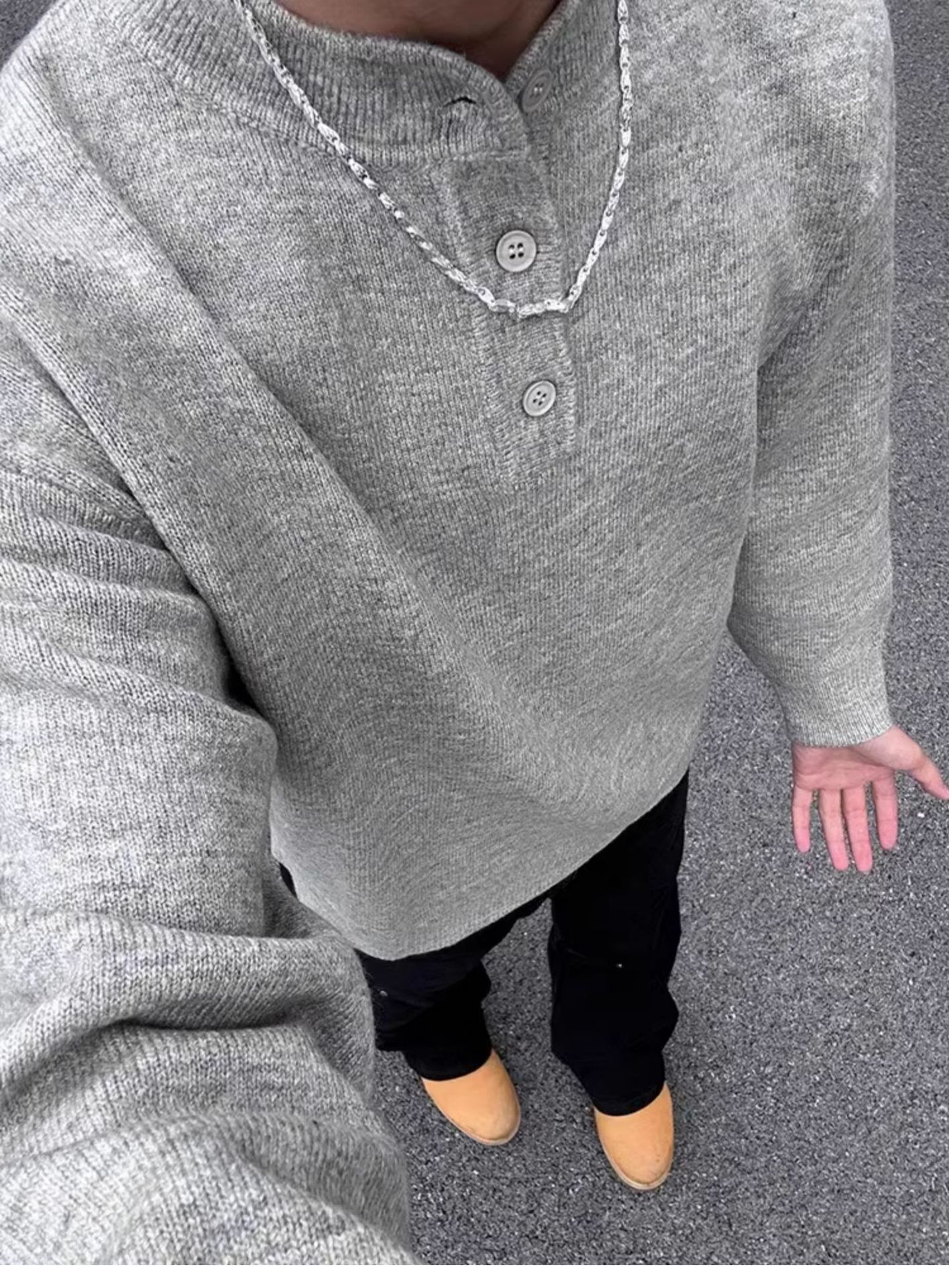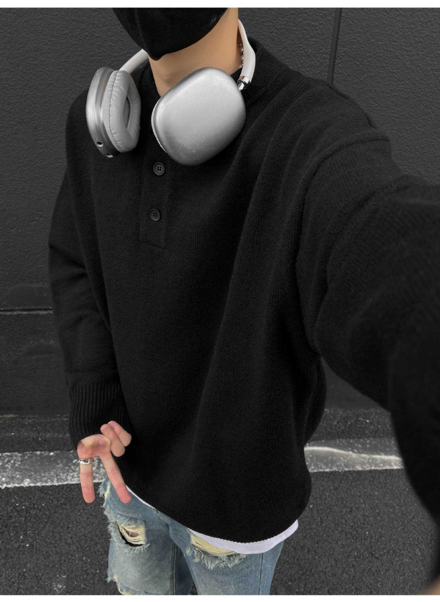 그레이 아메리칸 헨리 칼라 스웨터 남자 겨울 하이 엔드 게으른 스타일 바지 스웨터 클린 핏 재킷스토어 가기