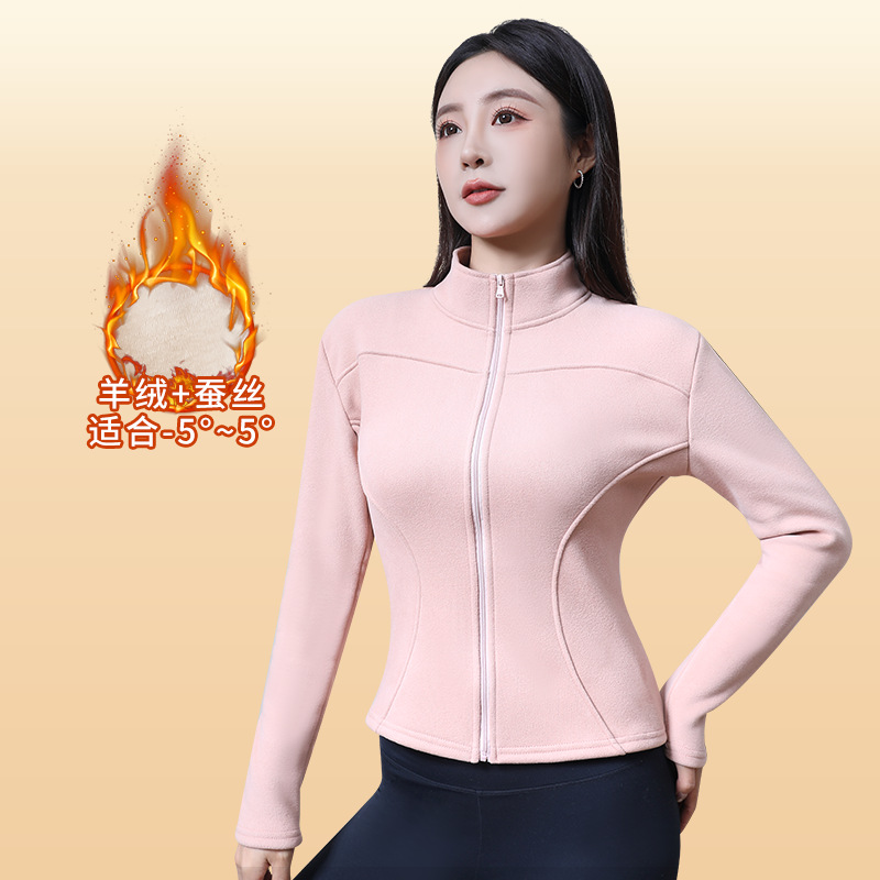 새로운 양고기 양털 코트 스포츠 여성의 가을과 겨울 요가 칼라 더블 아크 곡선 타이트탑 지퍼 우아한 카디건