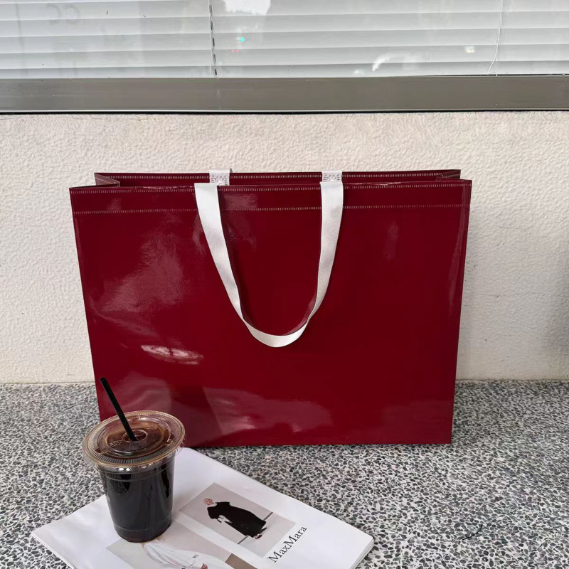 고급 앙고라 레드 선물 가방 종이 가방 의류 쇼핑 선물 핸드백 여성복 숨김 버튼 도매스토어 가기