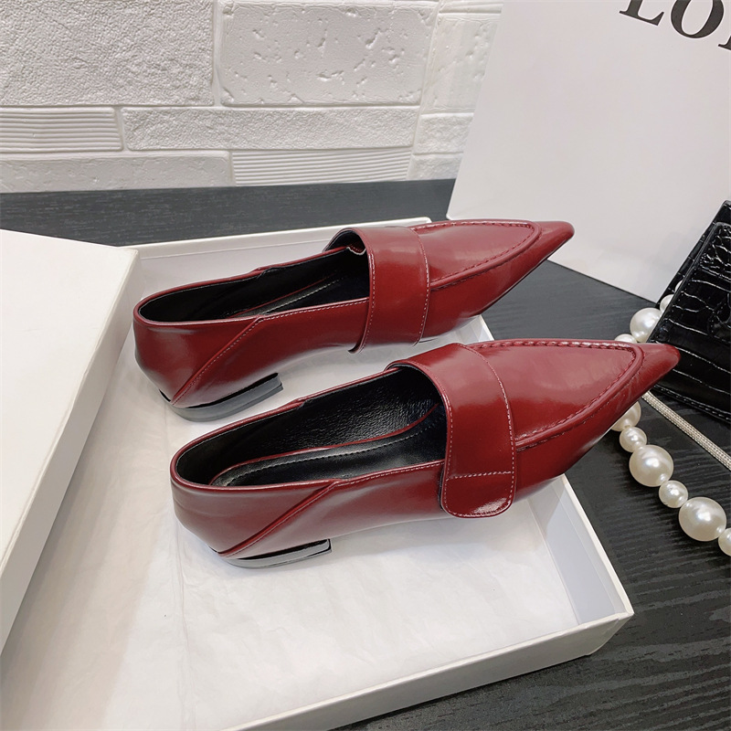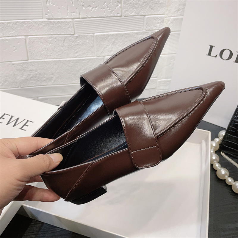 2024 봄과 가을 새로운 유럽과 미국 스타일 포인팅 신발 여성 로우 힐 틈새 디자인 벨크로 통근 전문 여성 신발스토어 가기
