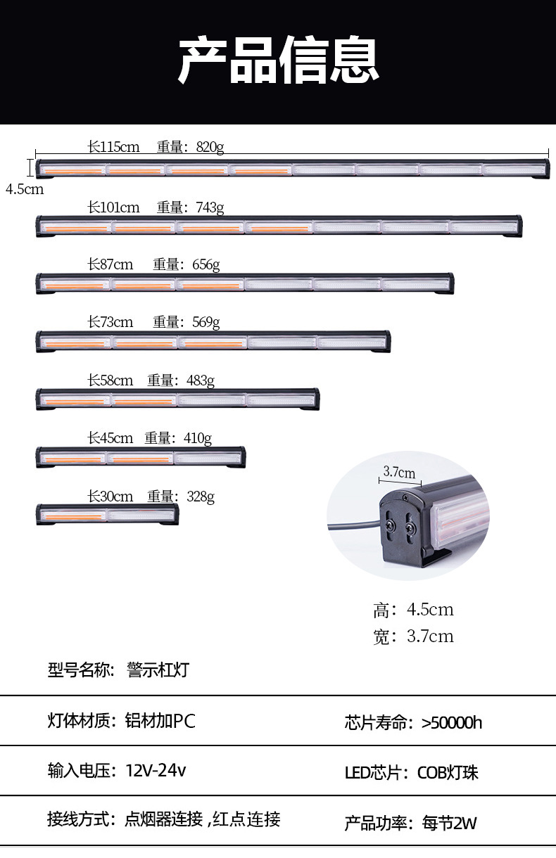 COB 스트립 깜박이는 가벼운 자동차 안전 경고 바 라이트 엔지니어링 차량 트럭 고속도로 경고 신호등
