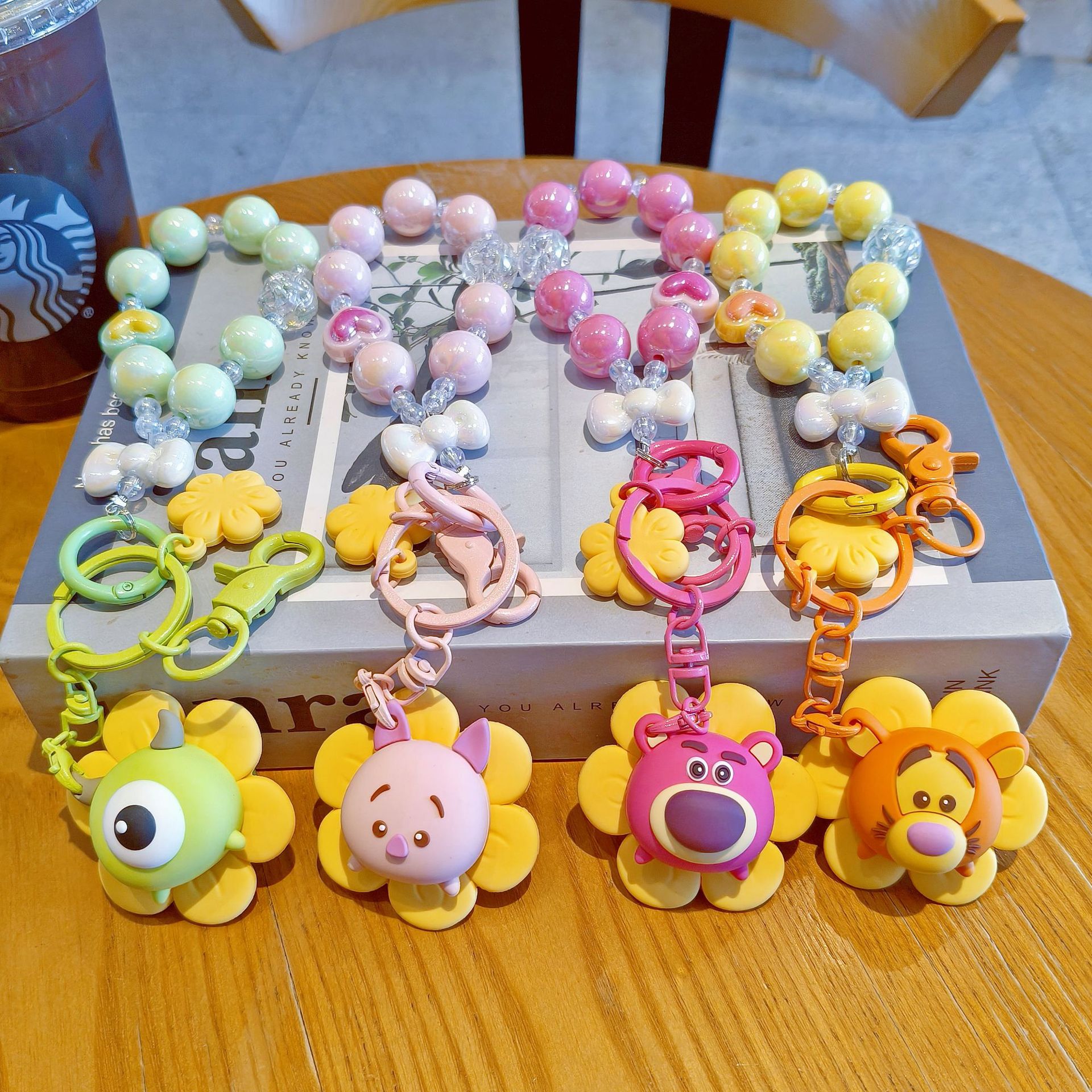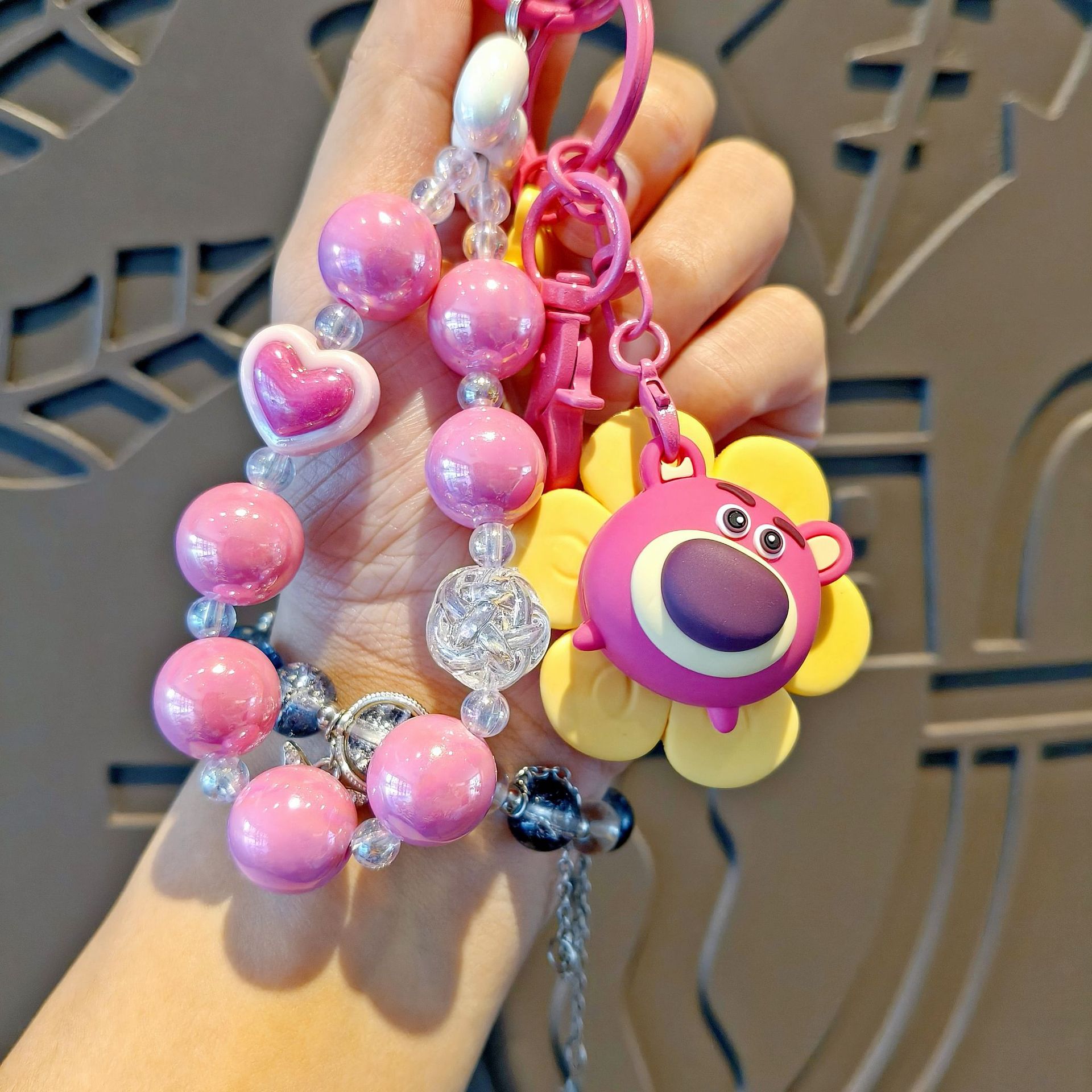 딸기 곰 구슬 체인 만화 키 체인 귀여운 학교 가방 펜던트 휴대 전화 체인 자동차 키 체인 인형 기계 작은 선물