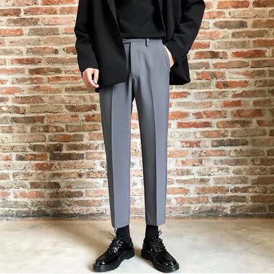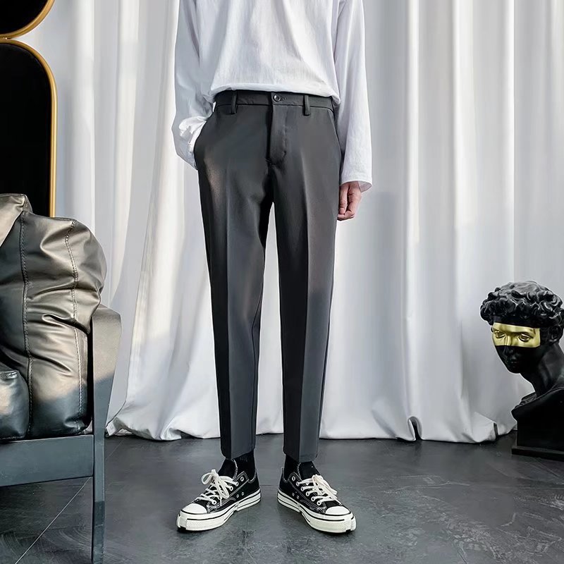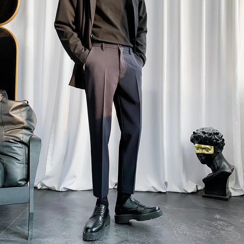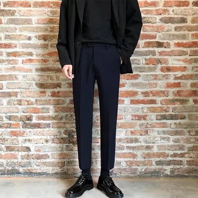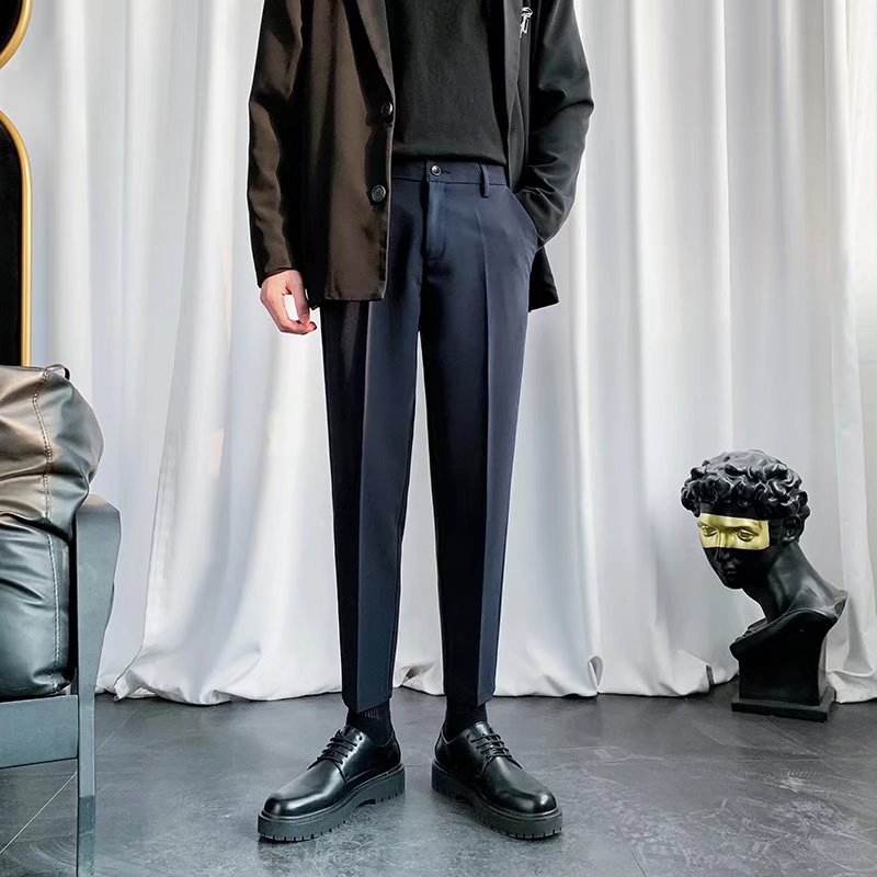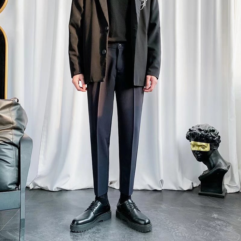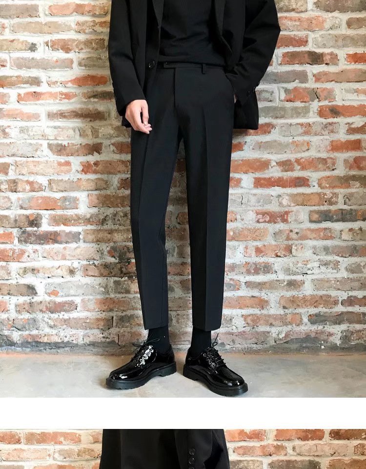 검은 작은 세트 바지 남자의 발목 길이 바지 스트레이트 슬림 핏 작은 발 캐주얼 한국 스타일 트렌디 남성 세트 트렌디 한 바지스토어 가기