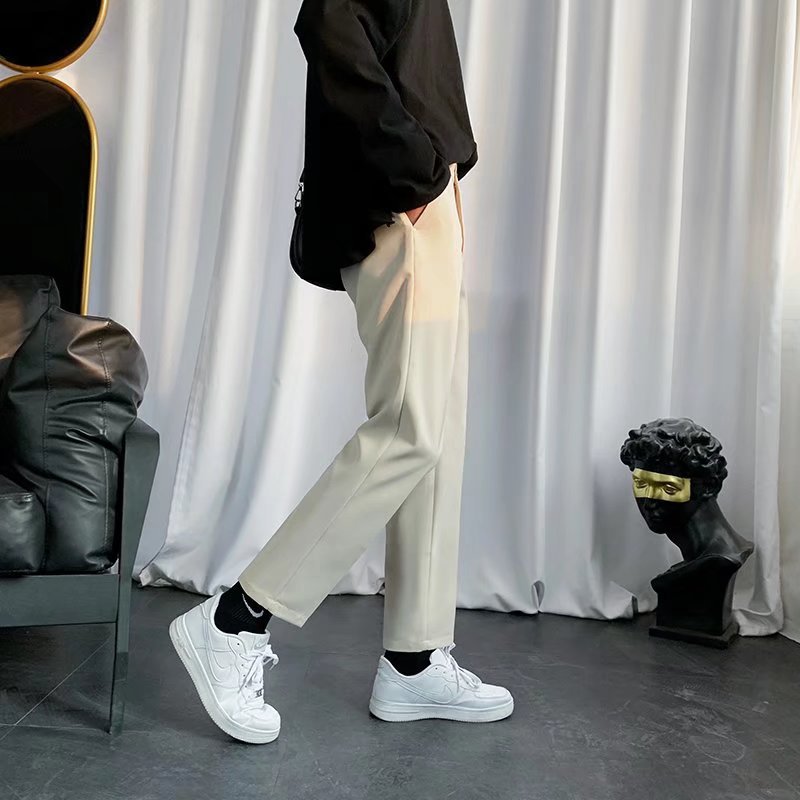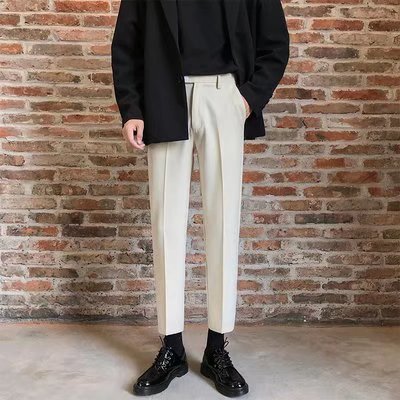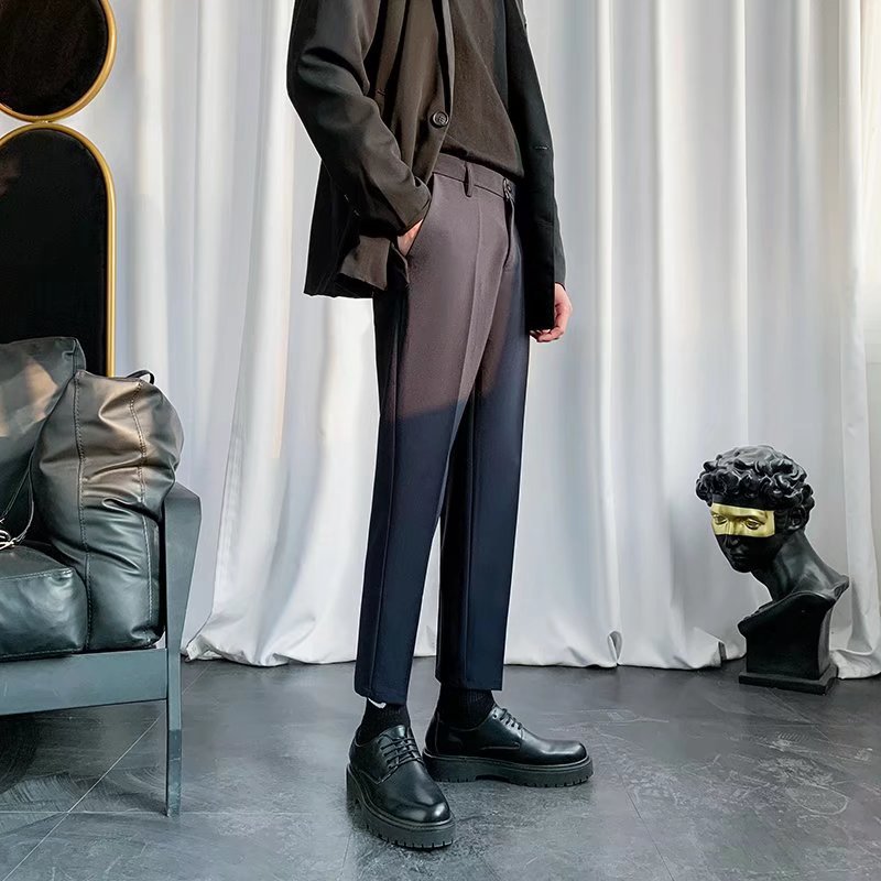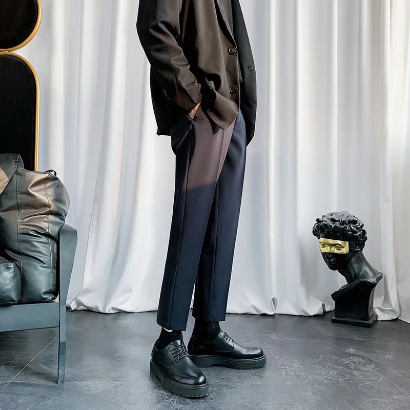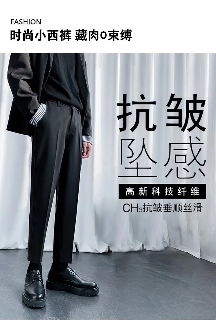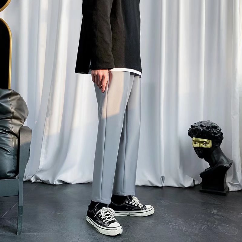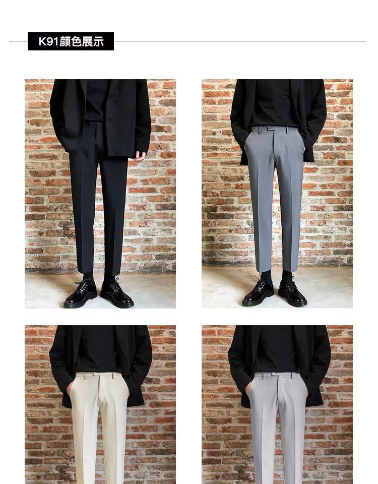 검은 작은 세트 바지 남자의 발목 길이 바지 스트레이트 슬림 핏 작은 발 캐주얼 한국 스타일 트렌디 남성 세트 트렌디 한 바지스토어 가기