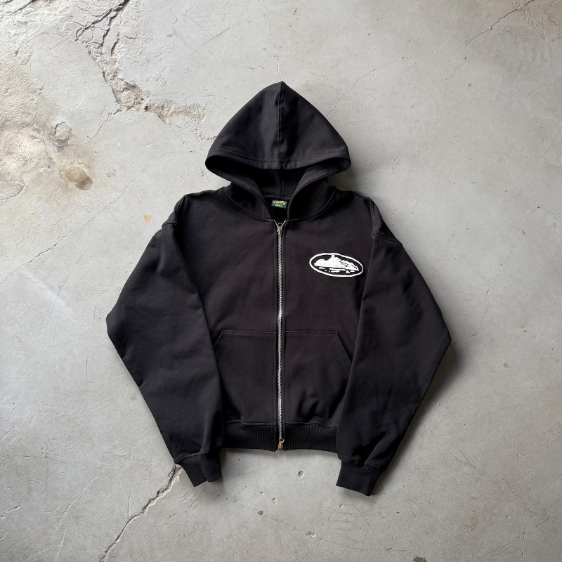 미국 스트리트 힙합 프린트 플리스 지퍼 후드티 남성 트렌디 브랜드 아우터스토어 가기