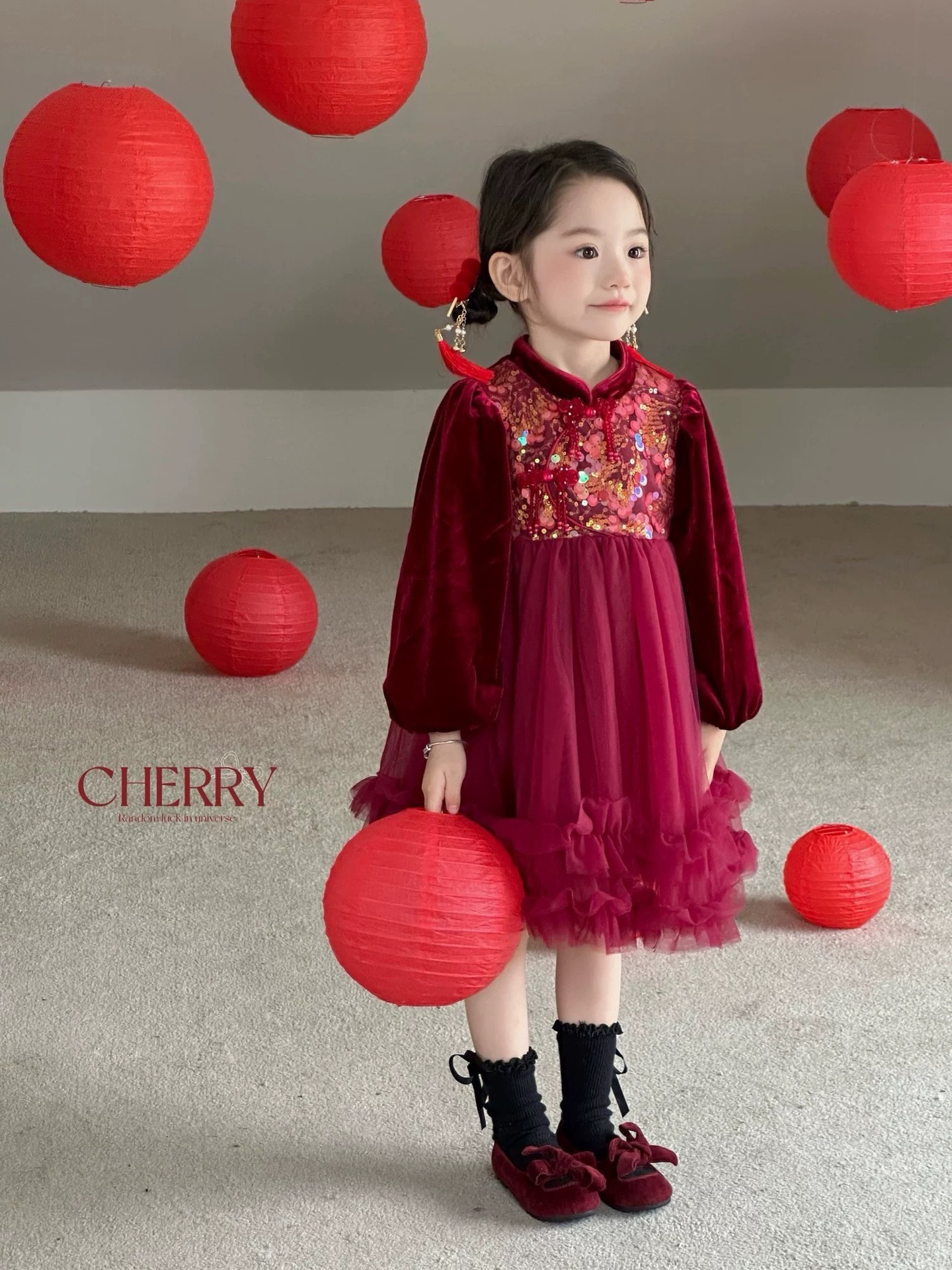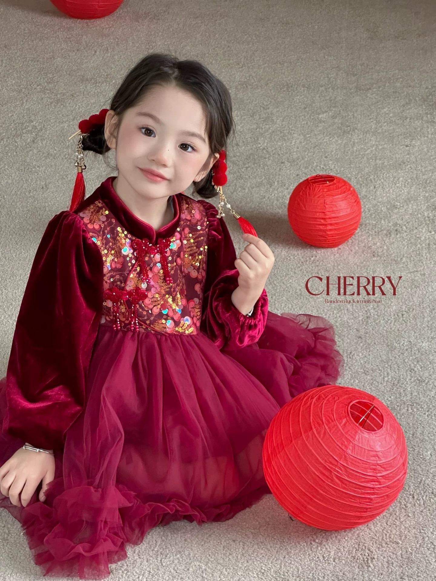 소녀와 어린이의 새로운 기모 긴 소매 원피스 국가 스타일 메쉬 스티칭 공주 원피스 가을과 겨울 2024