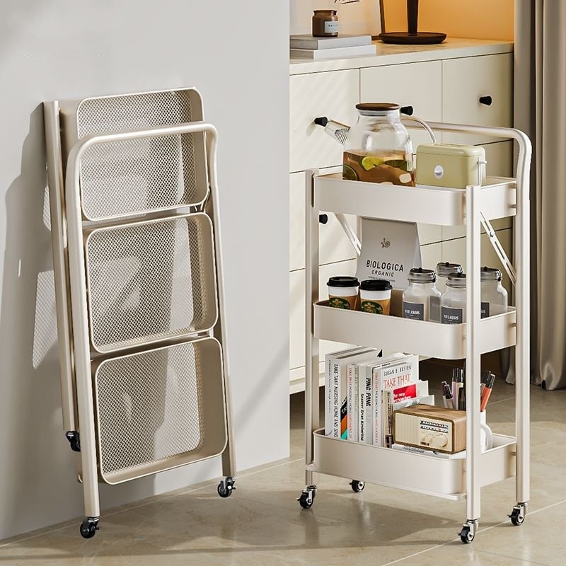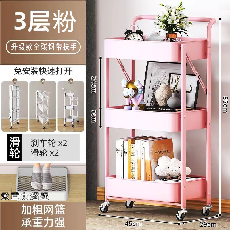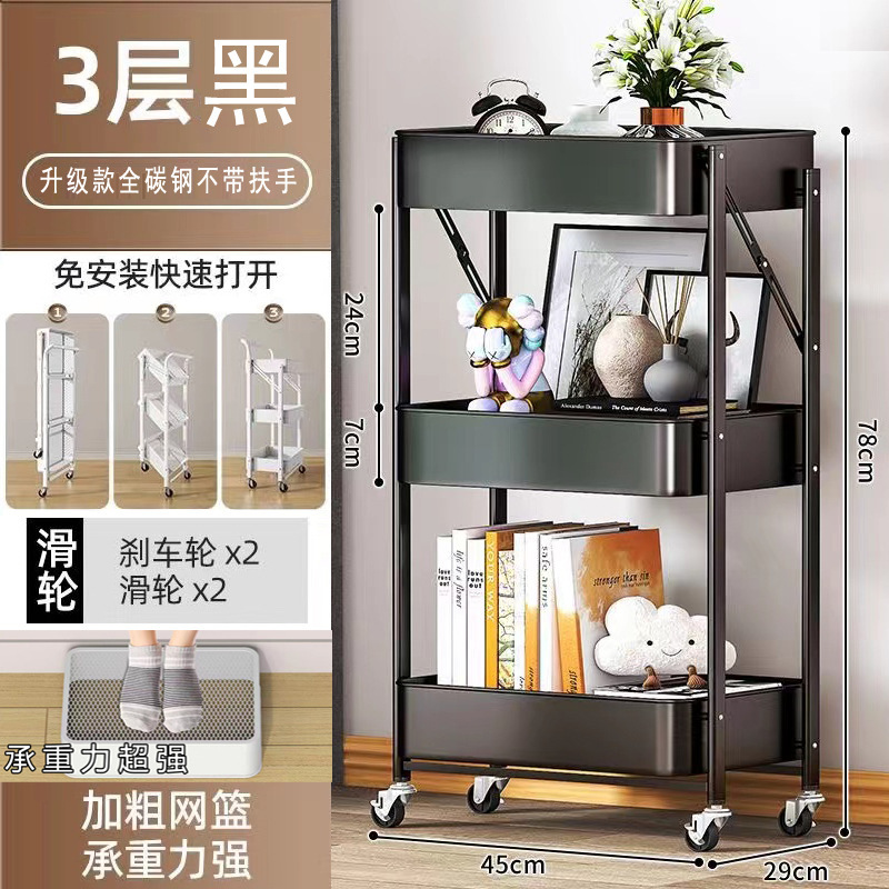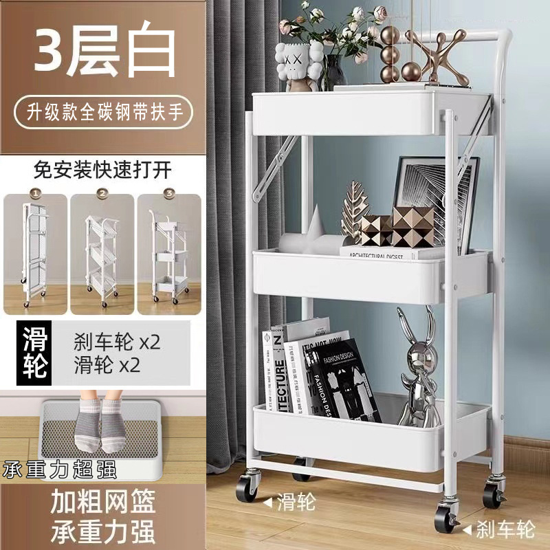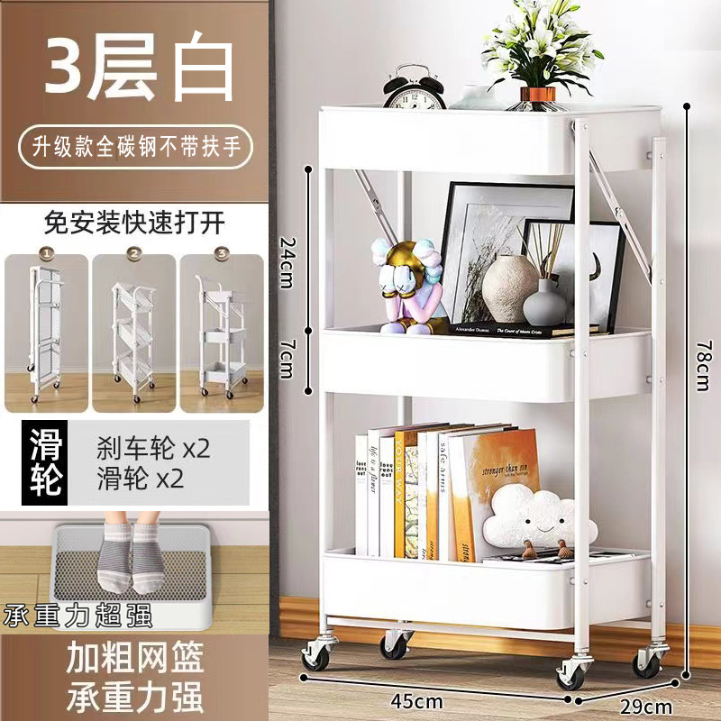 트롤리 스토리지 랙 모바일 주방 욕실 바닥 침실 다층 스토리지 랙 가정용 접이식 스토리지 랙