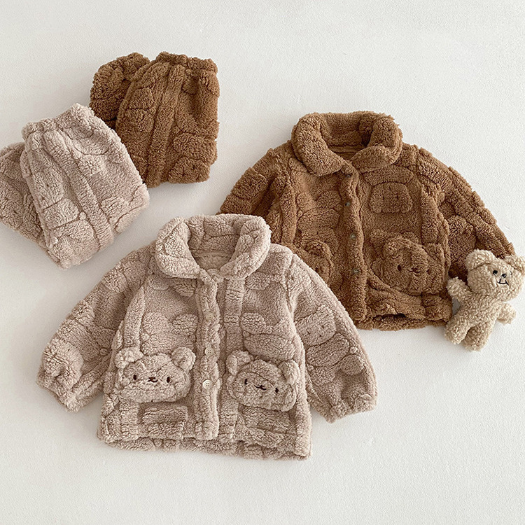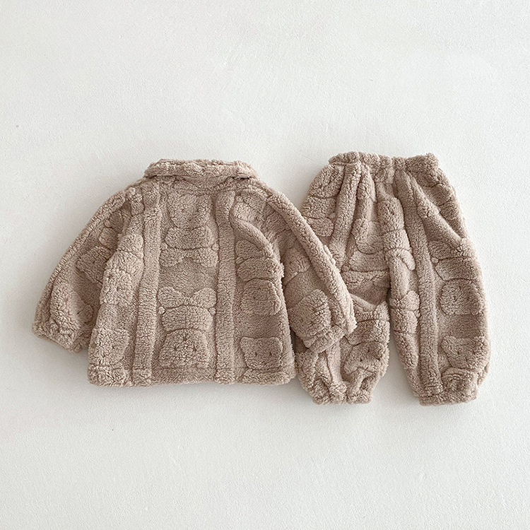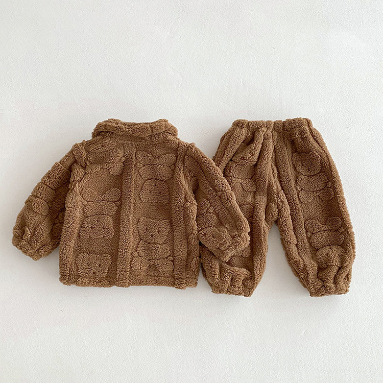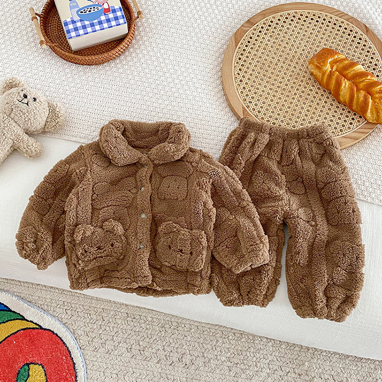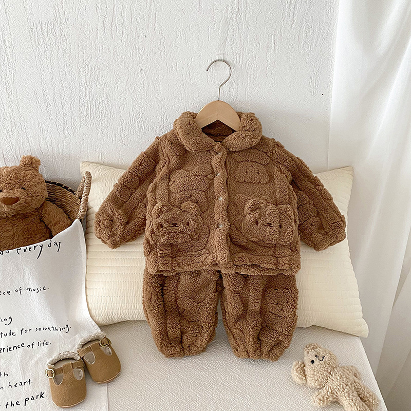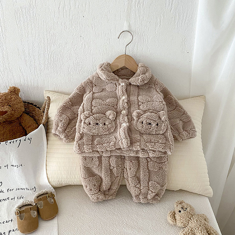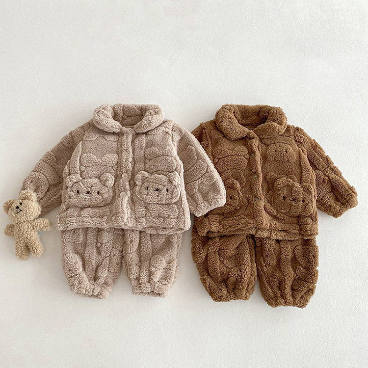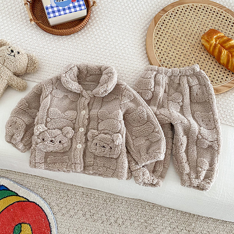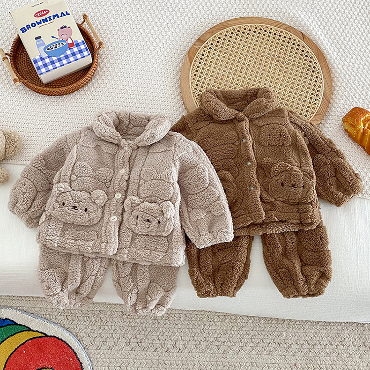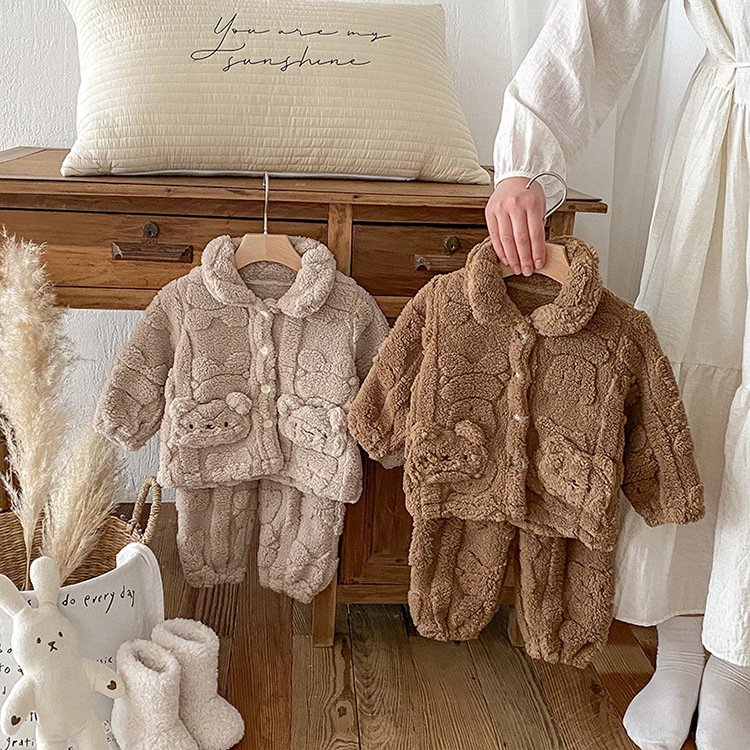 가을과 겨울 아기 집 옷 세트 귀여운 곰 봉제 자켓 어린이 아기 플러스 벨벳 잠옷 두 조각 세트