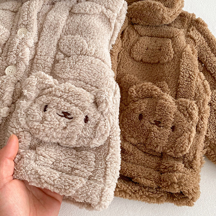 가을과 겨울 아기 집 옷 세트 귀여운 곰 봉제 자켓 어린이 아기 플러스 벨벳 잠옷 두 조각 세트스토어 가기