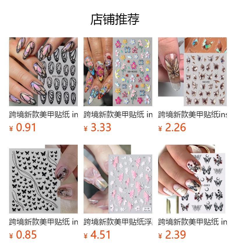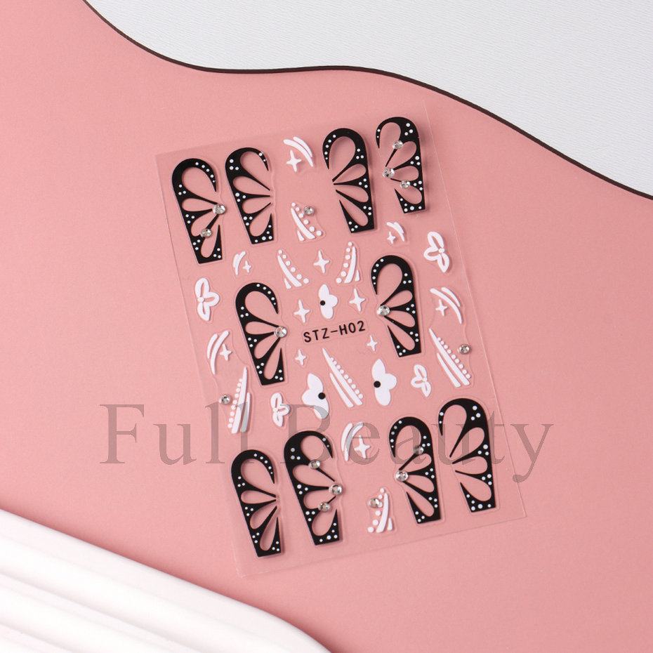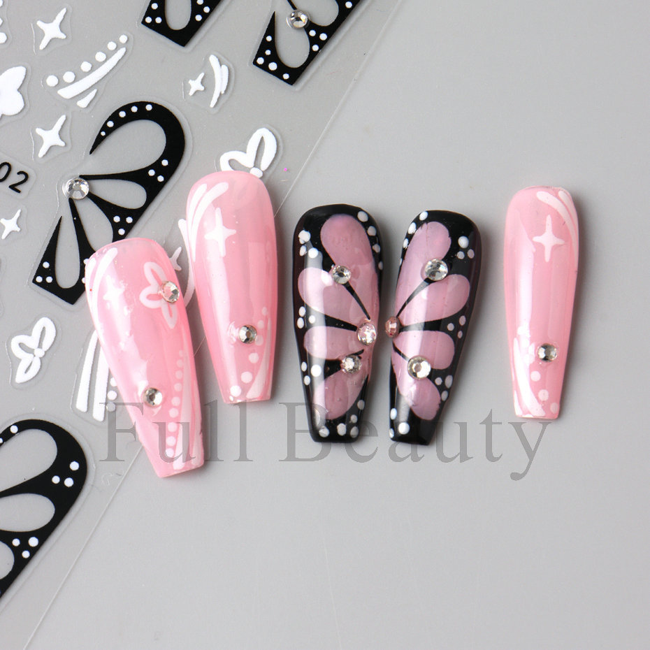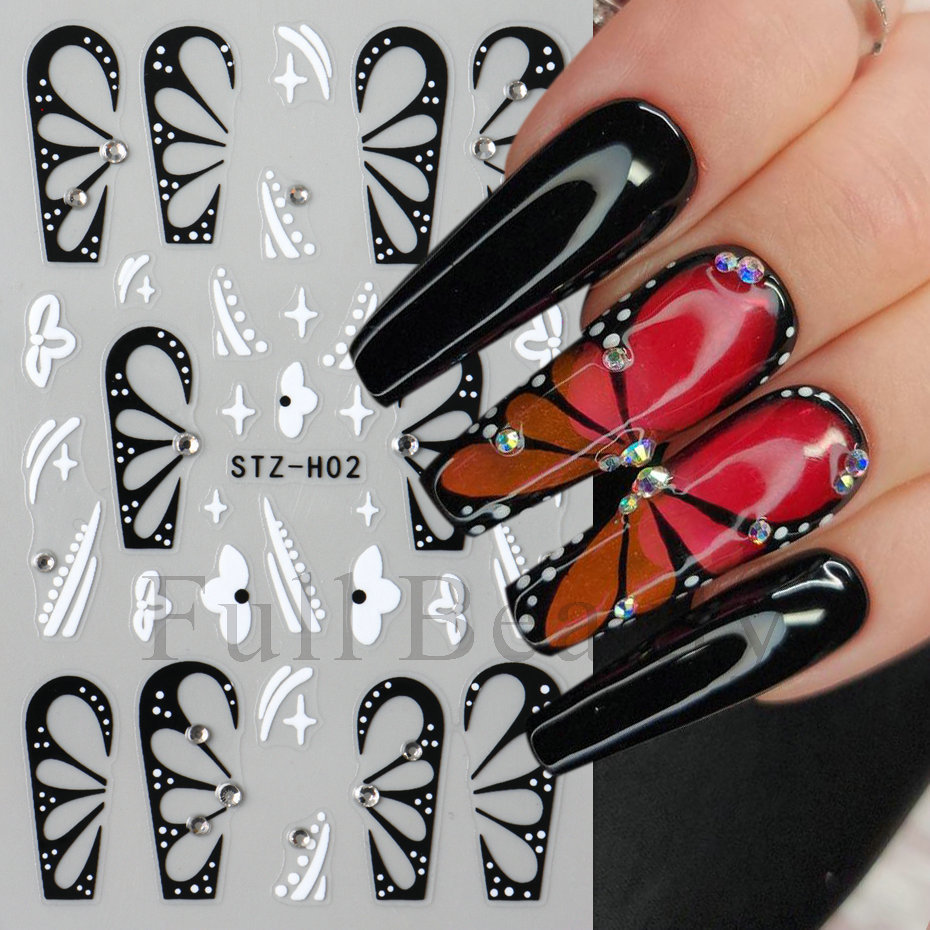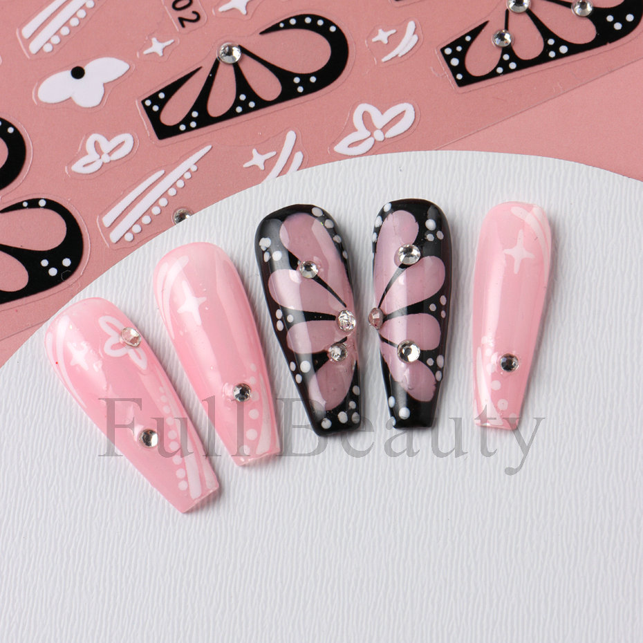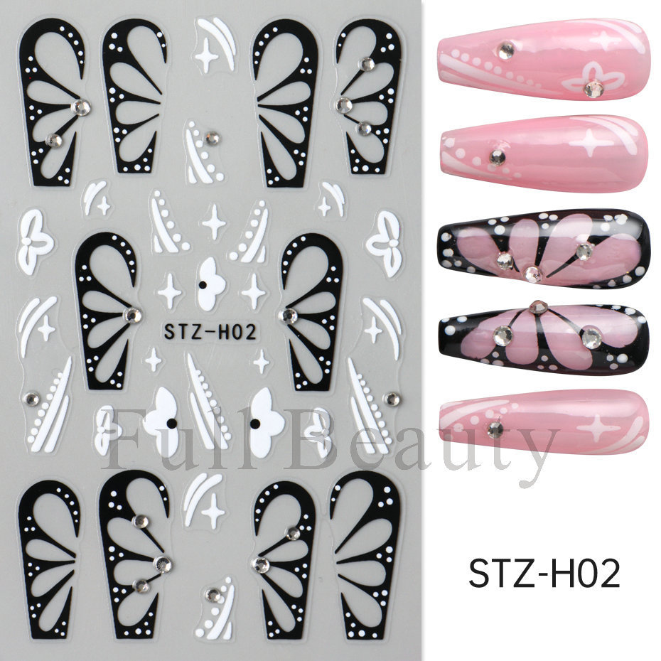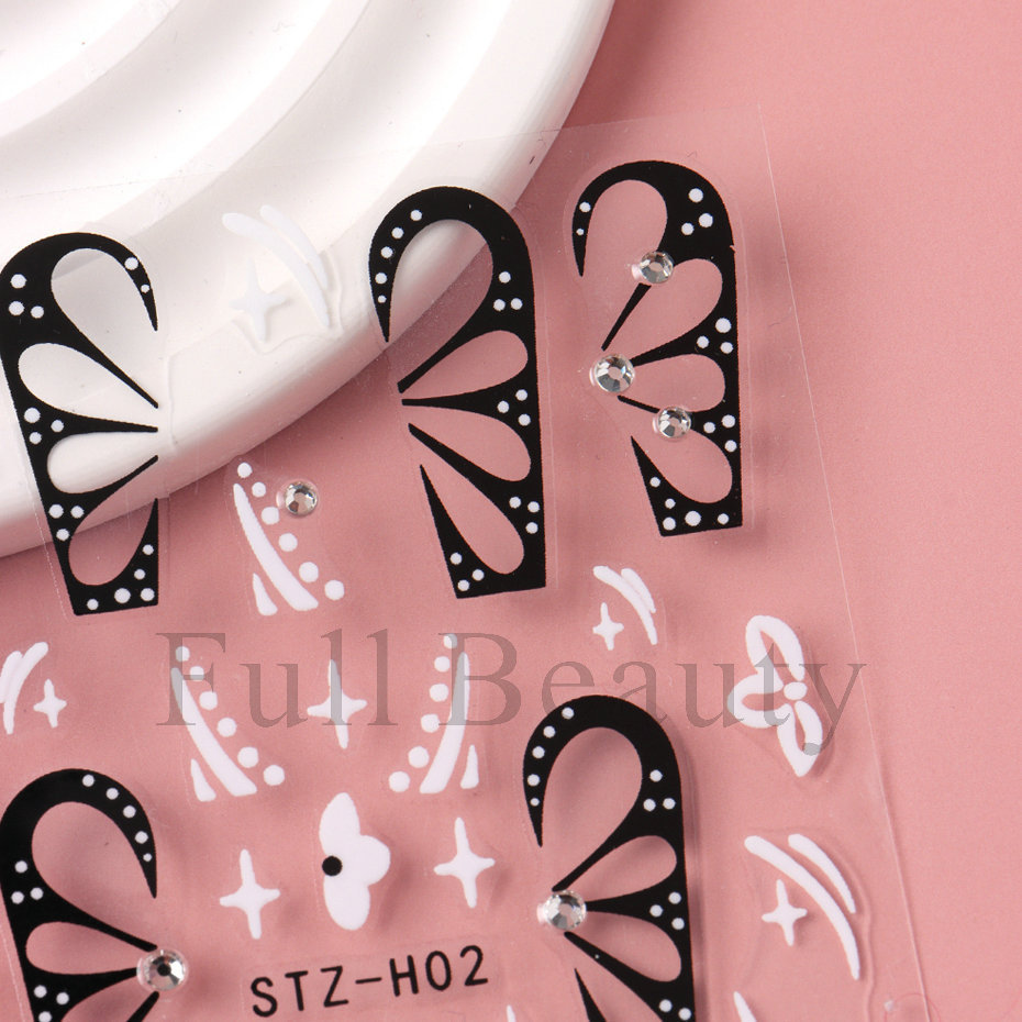 다이아몬드 플라워 라인 네일 스티커가있는 고급 센스 블랙 할로우 나비 날개스토어 가기