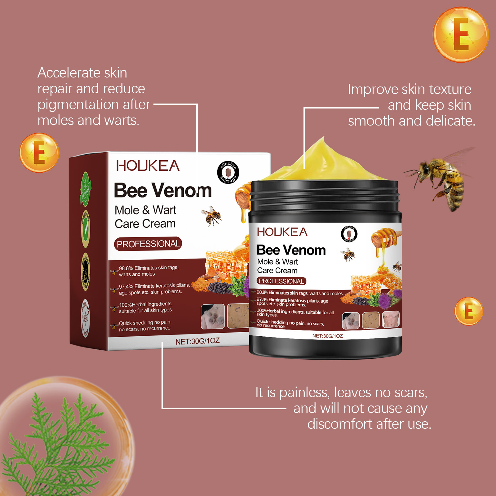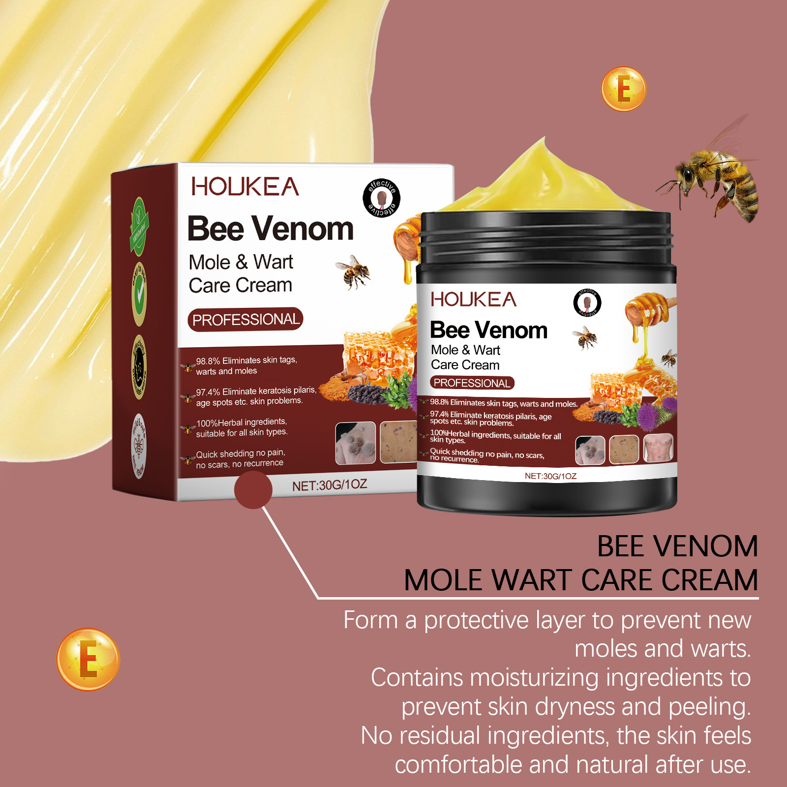 HOUKEA 꿀벌 독 크림 부드러운 클렌징 피부 보습 수리 부드러운 피부 스킨 케어 크림