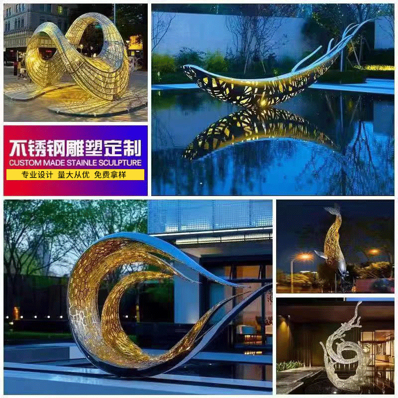대형 스테인레스 스틸 조각 맞춤형 야외 사각형 추상 거울 워터 스케이프 장식품 중공 모양의 빛나는 조각
