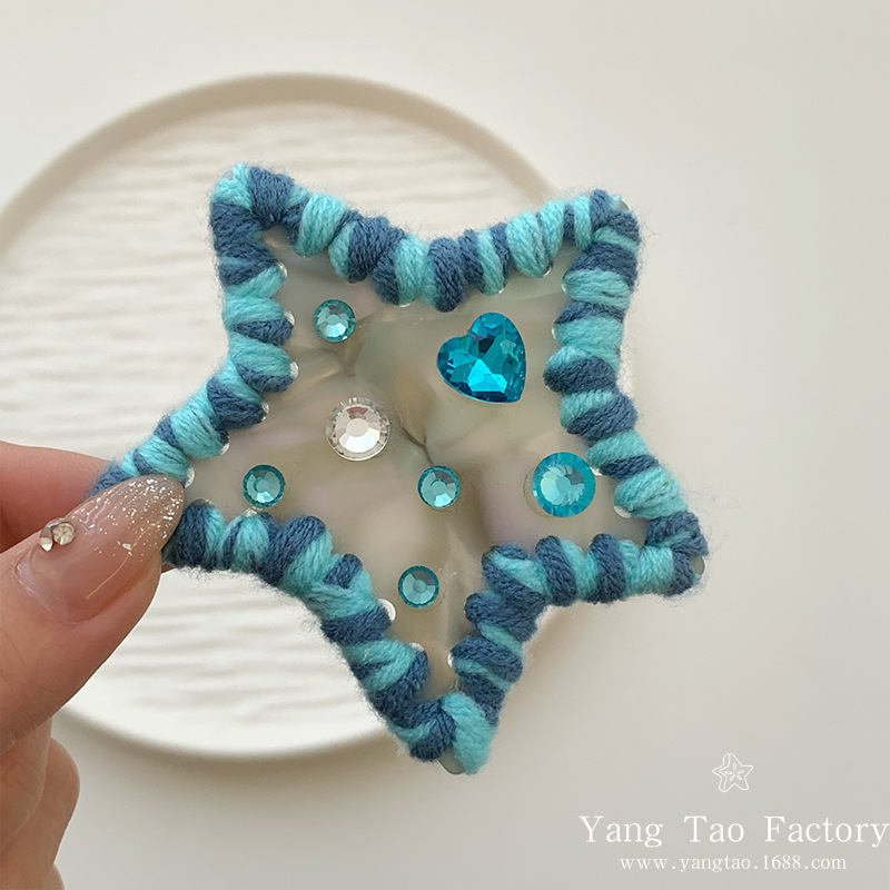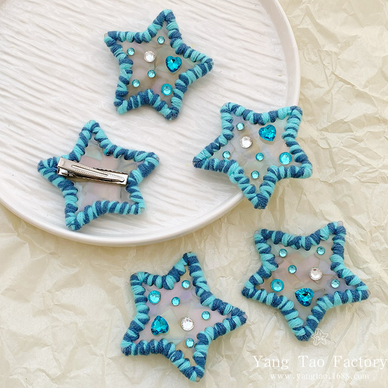 Shen Yue 같은 블루 스타 대조 컬러 울 사이드 클립 Acetic Acid 헤어핀 귀여운 사이드 헤어핀 Bangs 클립 헤드웨어
