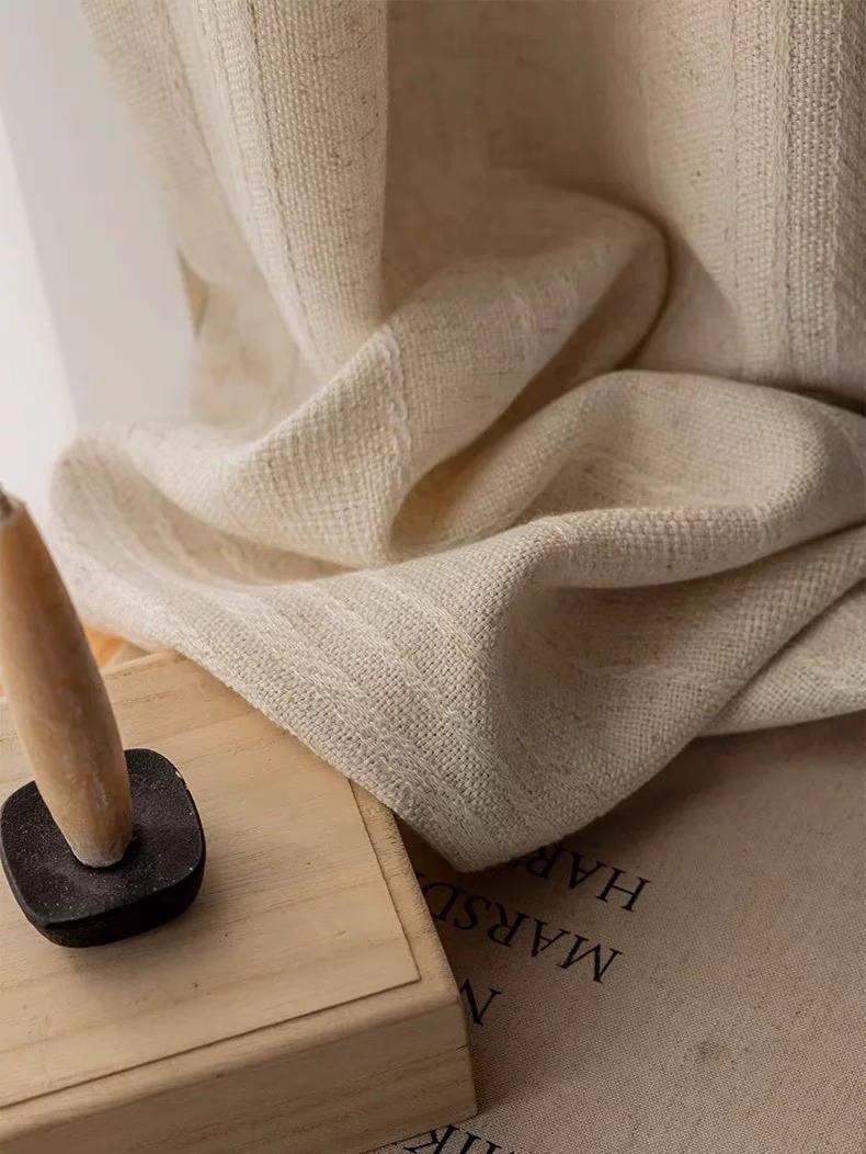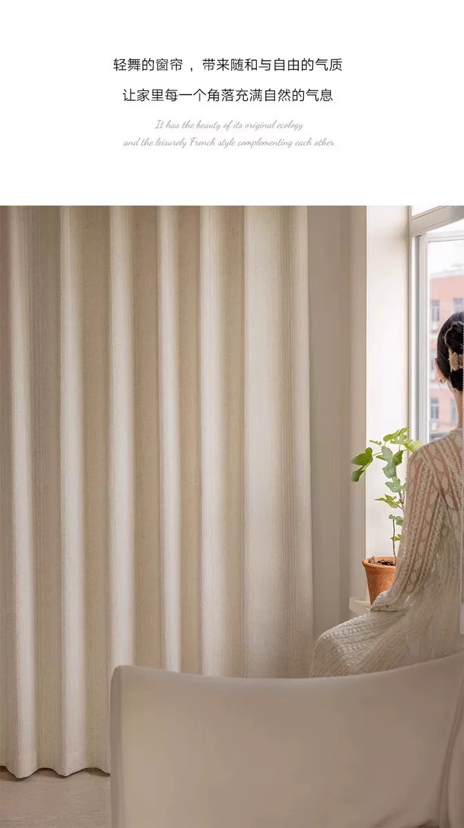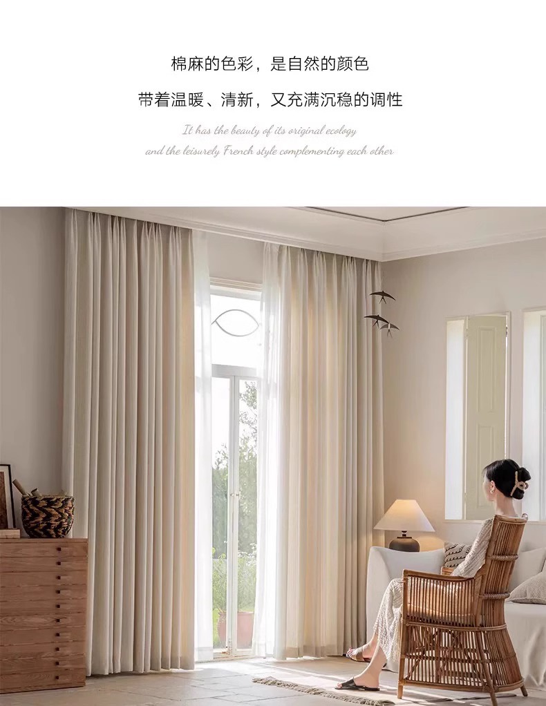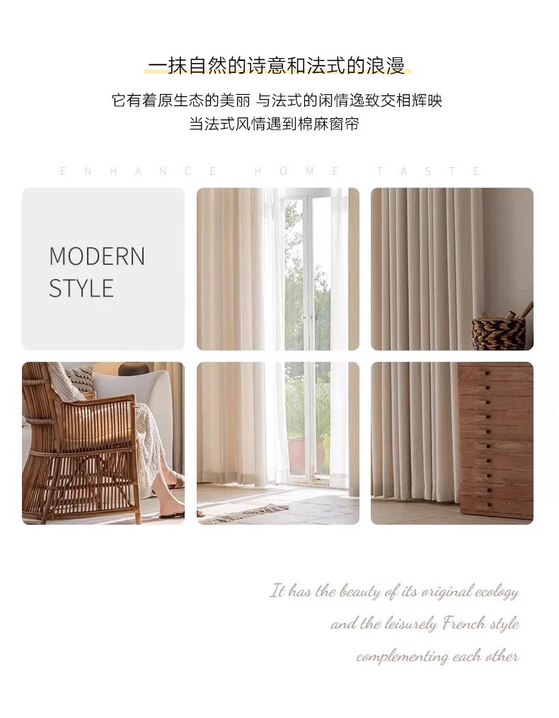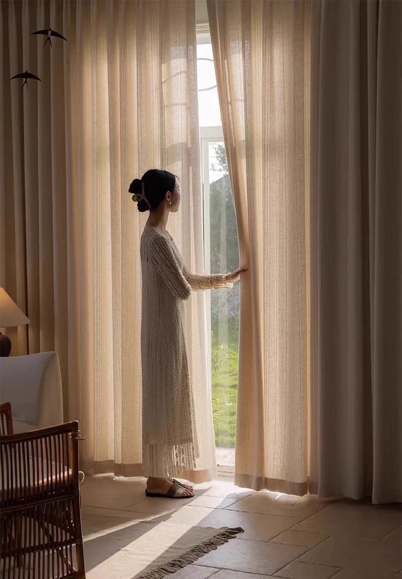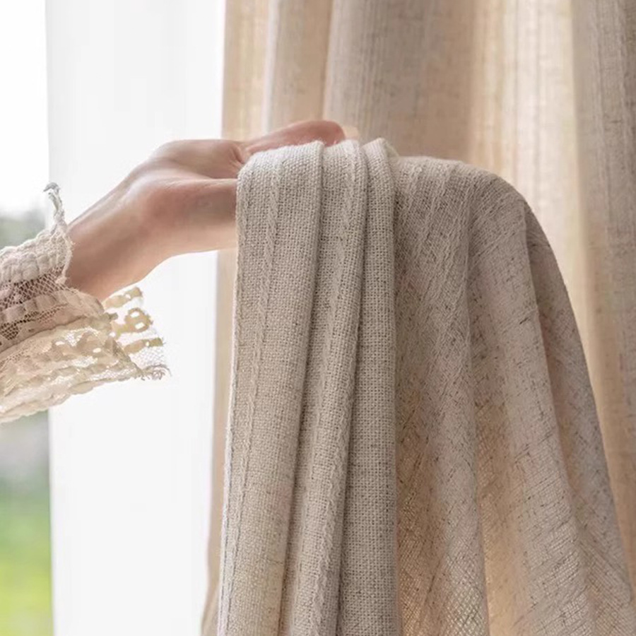 2025 새로운 일본식 통나무 스타일 반투명 반차광 린넨 거즈 커튼 거실 발코니 B&B 창 스크린