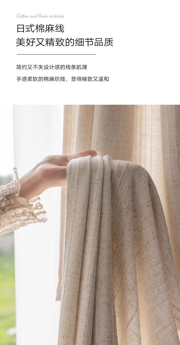 2025 새로운 일본식 통나무 스타일 반투명 반차광 린넨 거즈 커튼 거실 발코니 B&B 창 스크린스토어 가기
