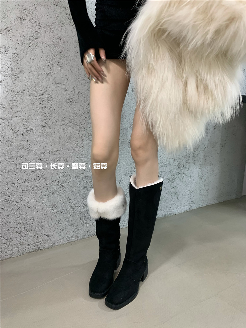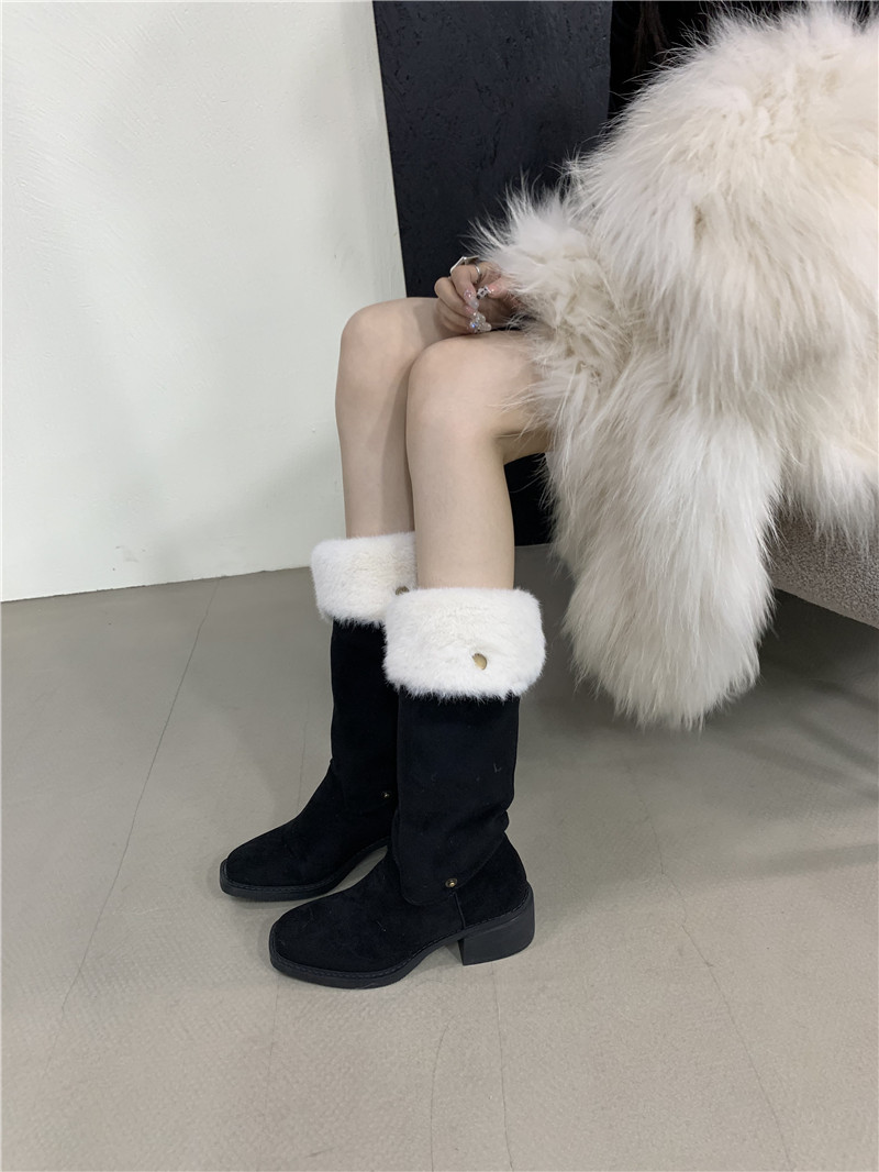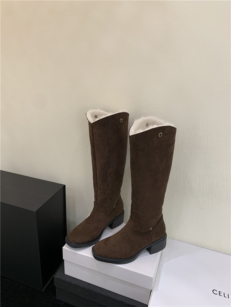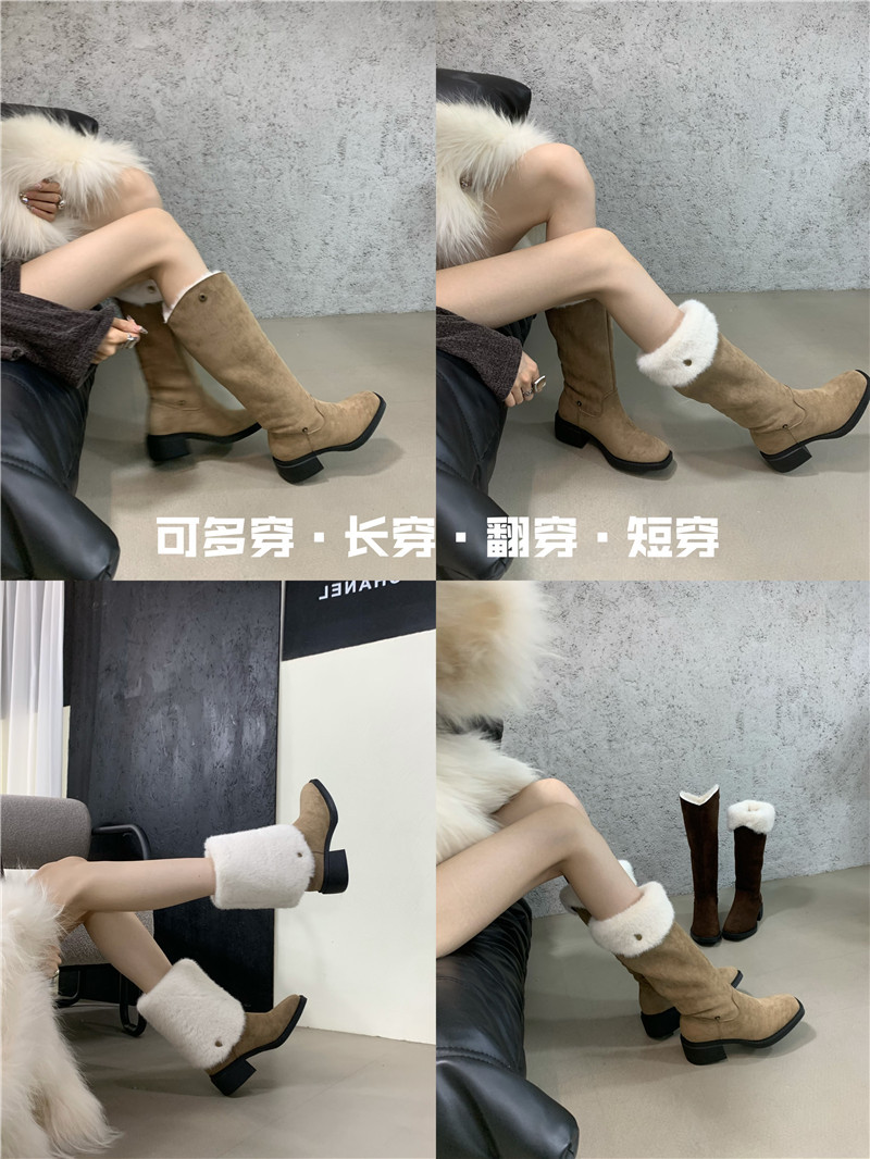 두꺼운 뒤꿈치 슬림 V-mouth 부츠 기모 스노우 부츠 여성 2024 가을과 겨울 새로운 투웨어 푹신한 부츠 스웨이드 나이트 부츠스토어 가기