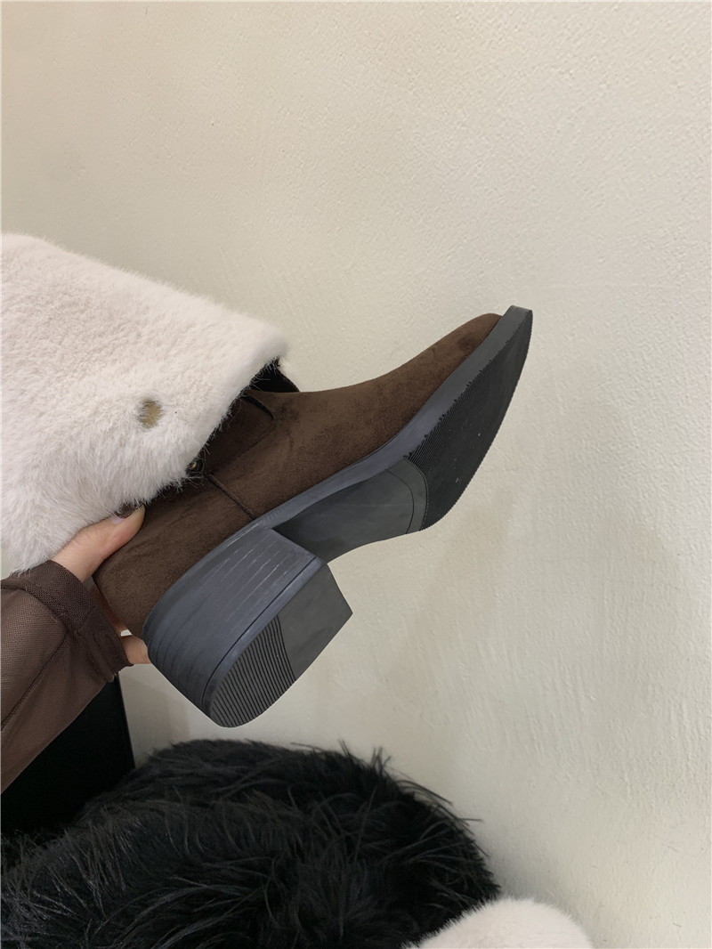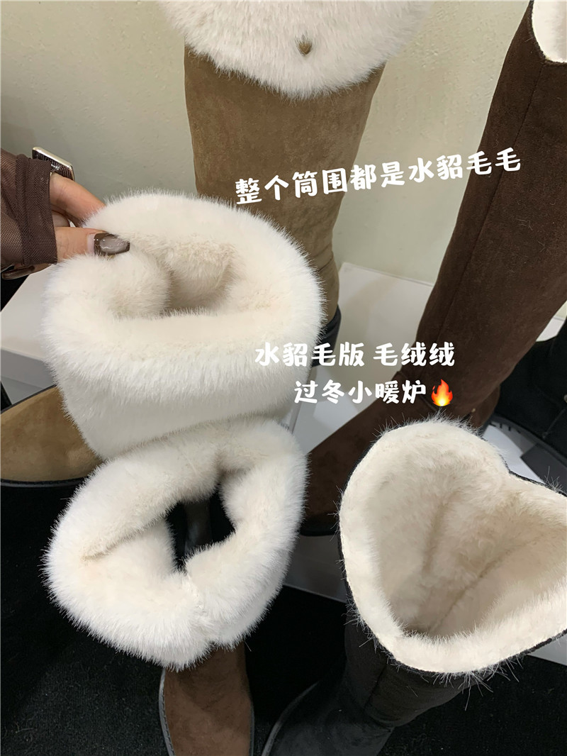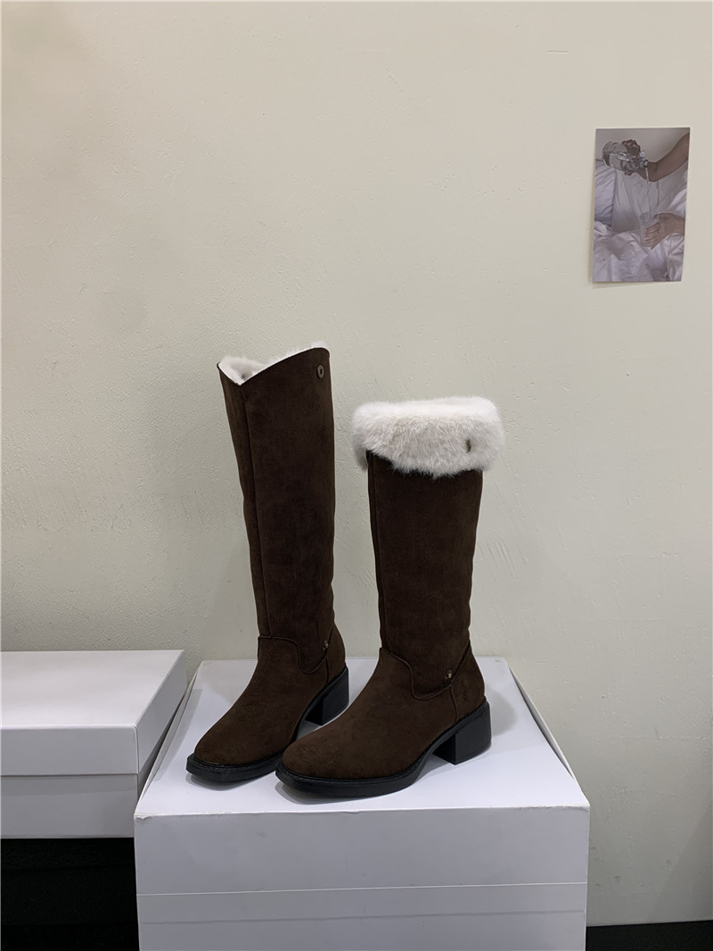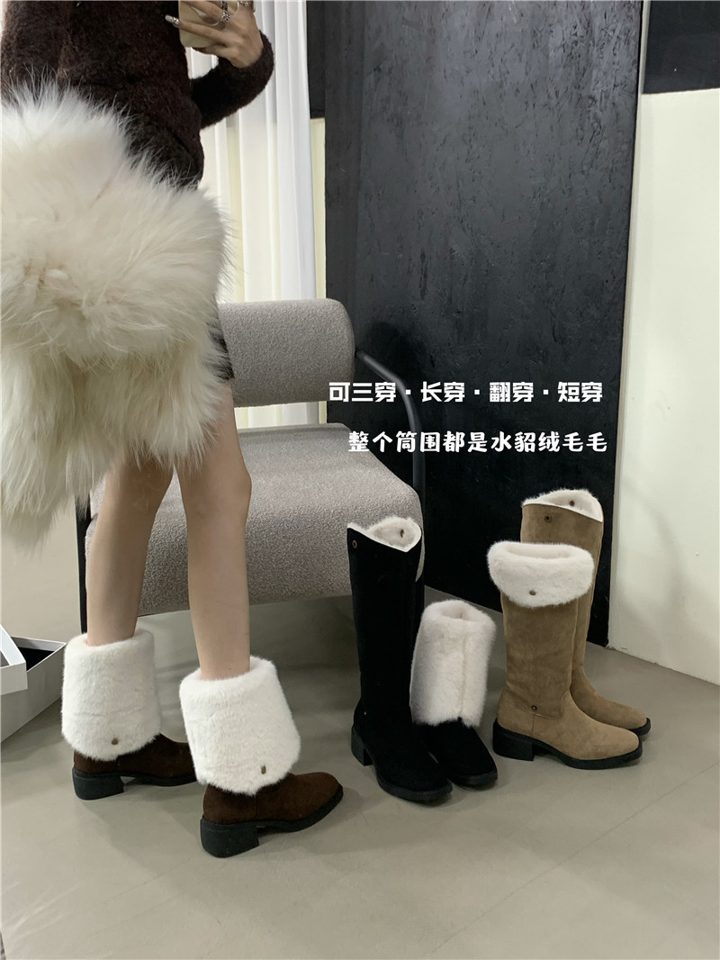 두꺼운 뒤꿈치 슬림 V-mouth 부츠 기모 스노우 부츠 여성 2024 가을과 겨울 새로운 투웨어 푹신한 부츠 스웨이드 나이트 부츠스토어 가기