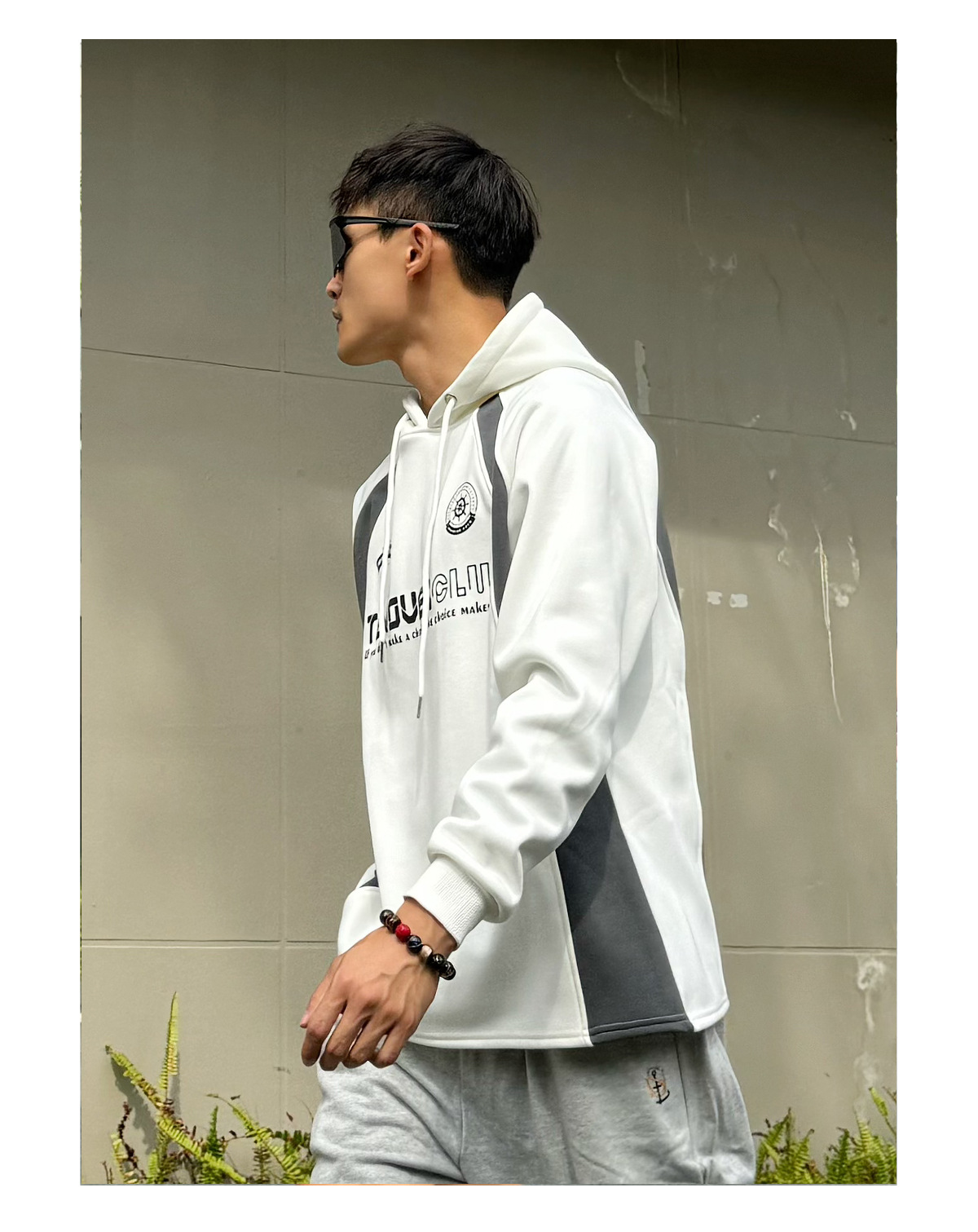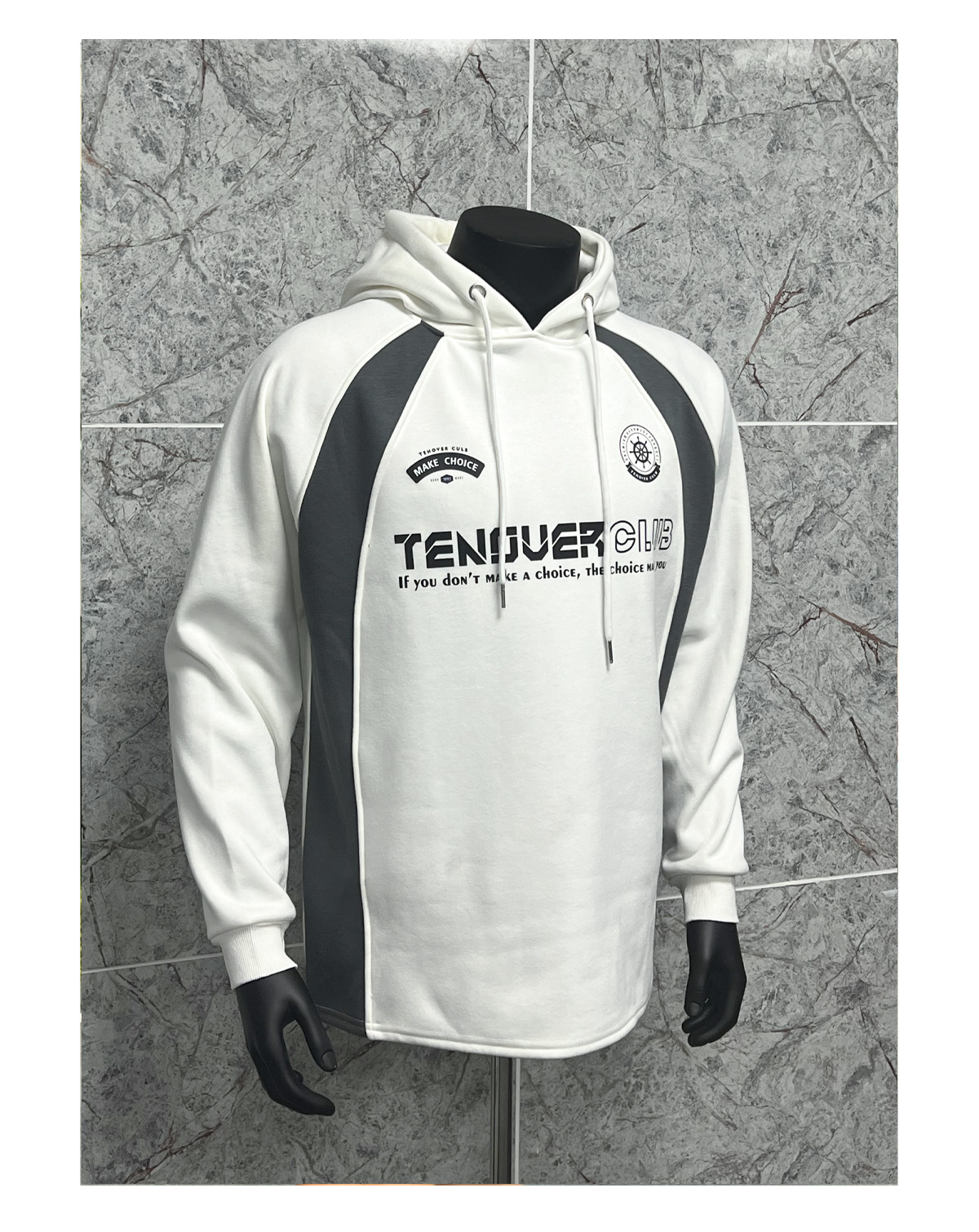 • TENOVER 완고한 흰색과 회색 후드 스웨트셔츠(460g 플러스 플리스 스타일)