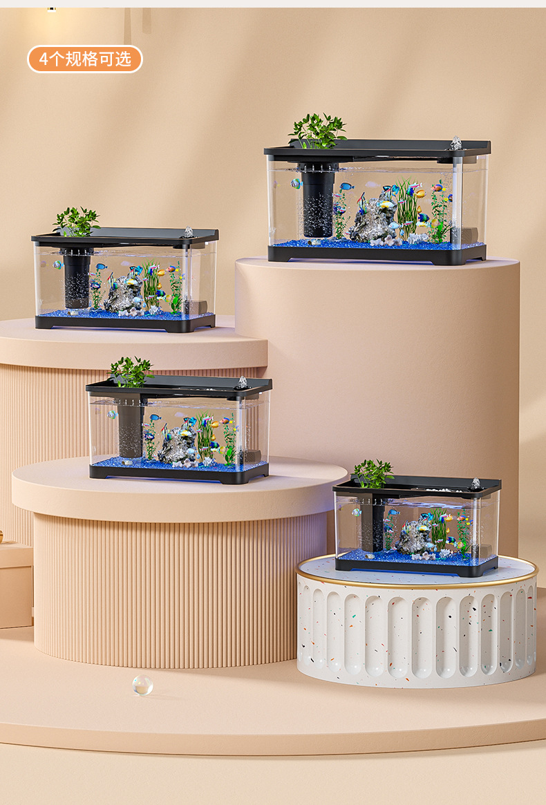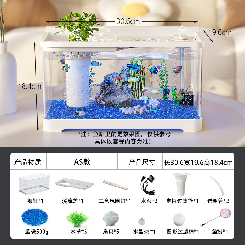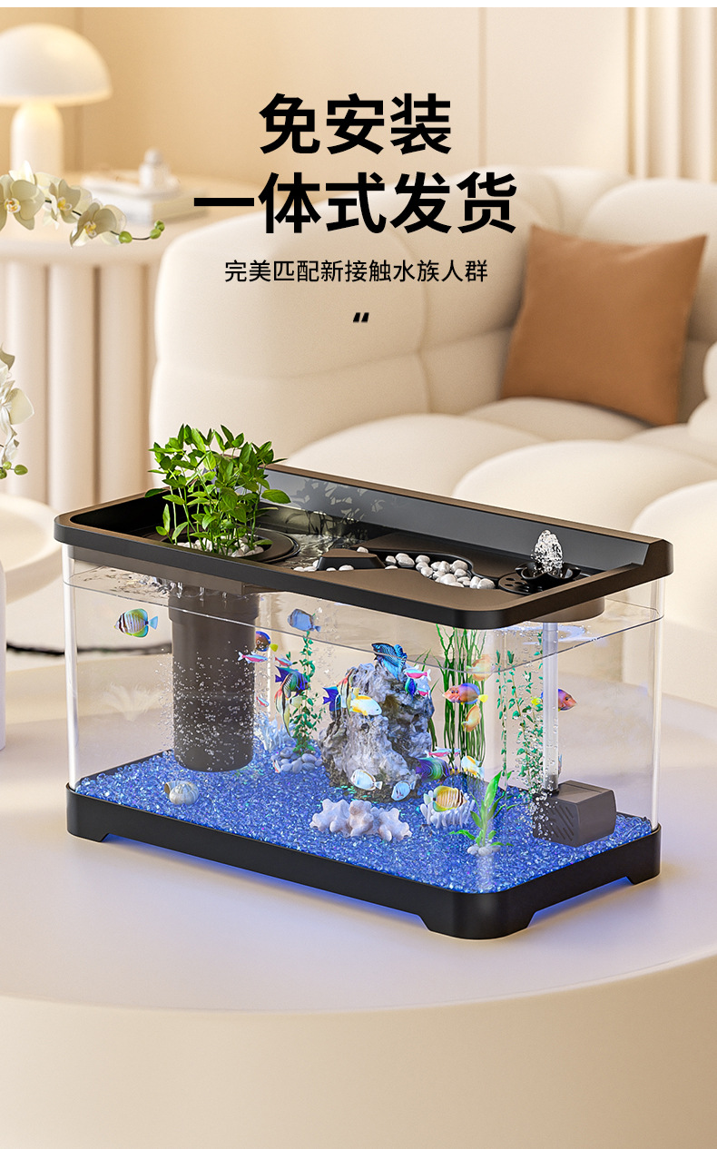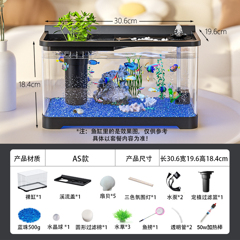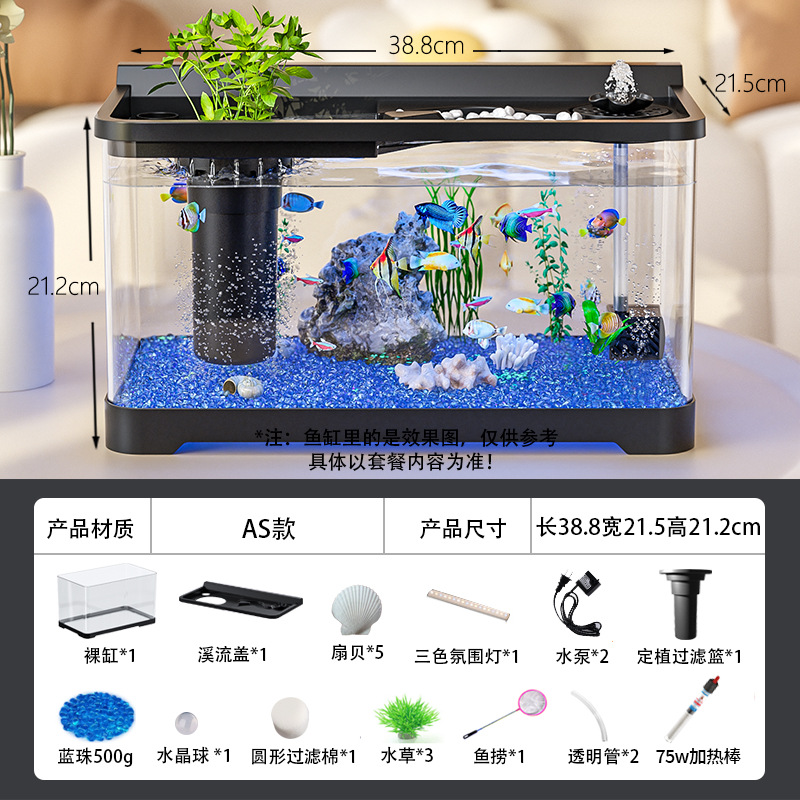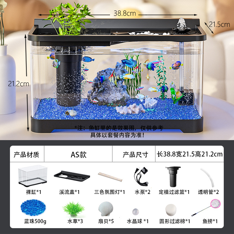 Kuo Ting 물고기 탱크 풍경 데스크탑 수족관 가정용 작은 금붕어 탱크 생태 필터 산소 만들기 기계 거실 물고기 탱크스토어 가기