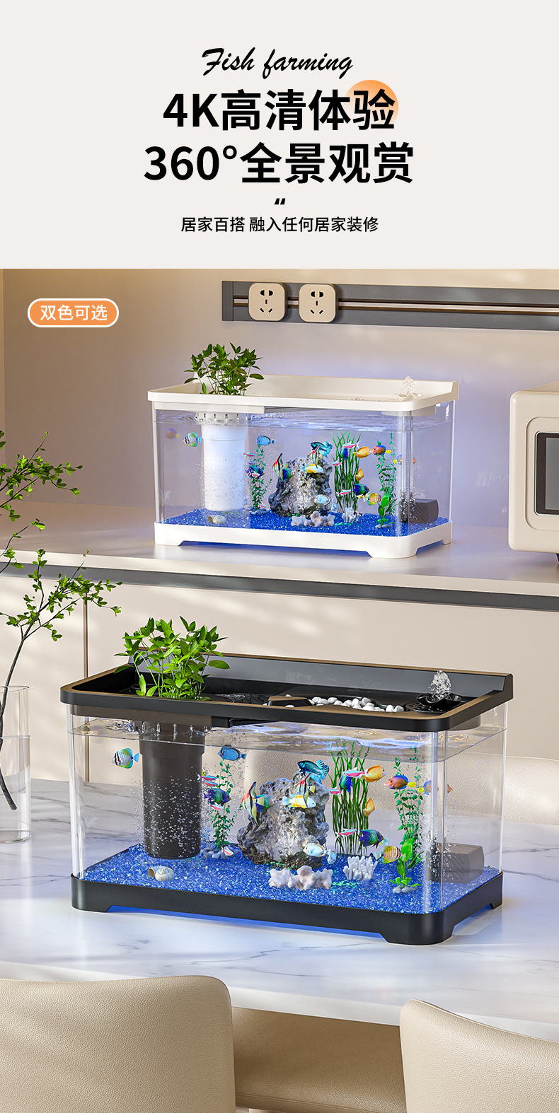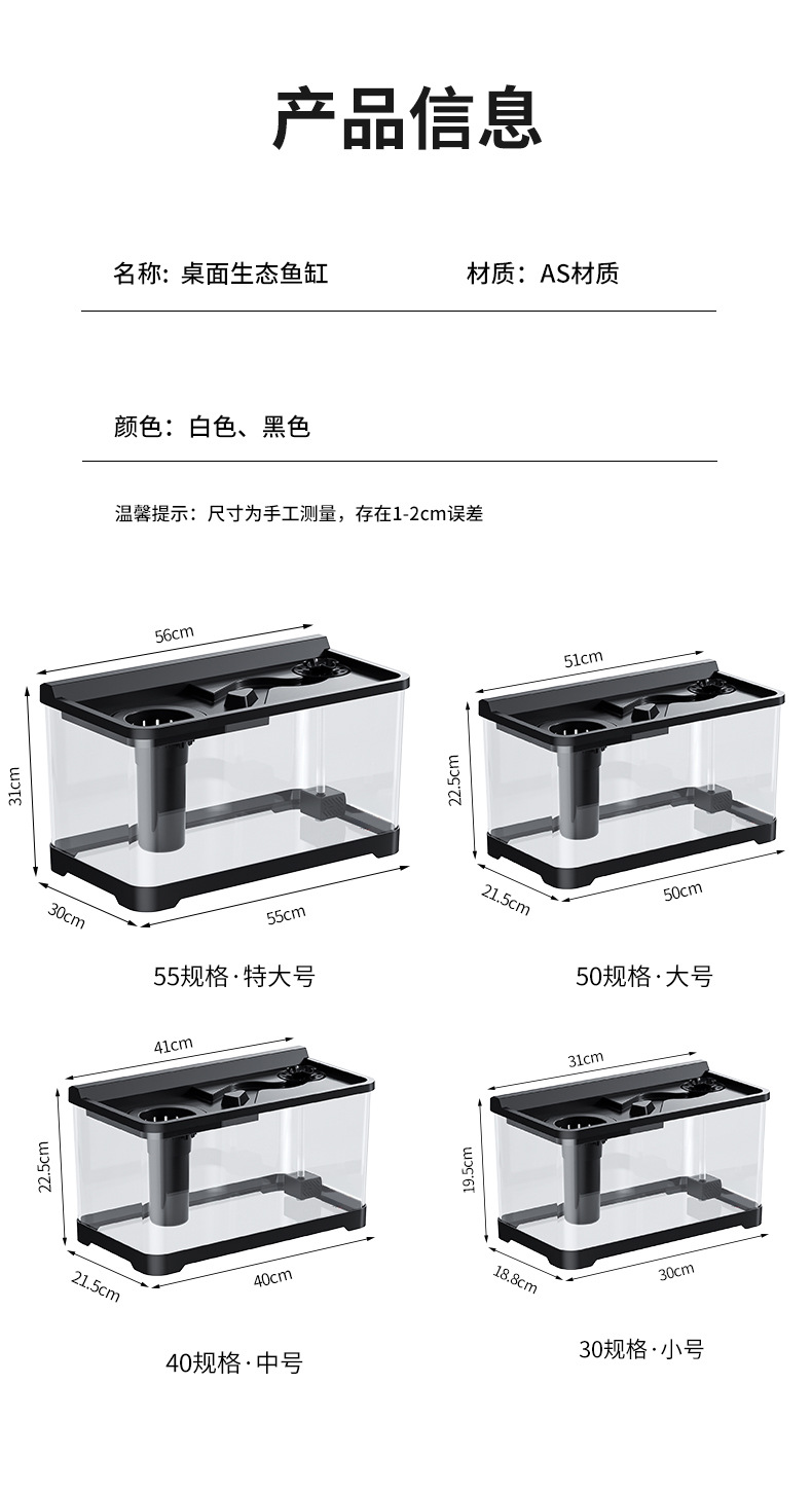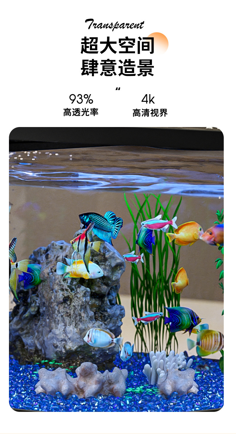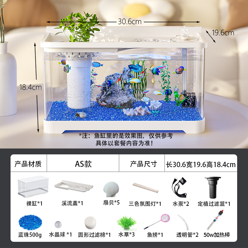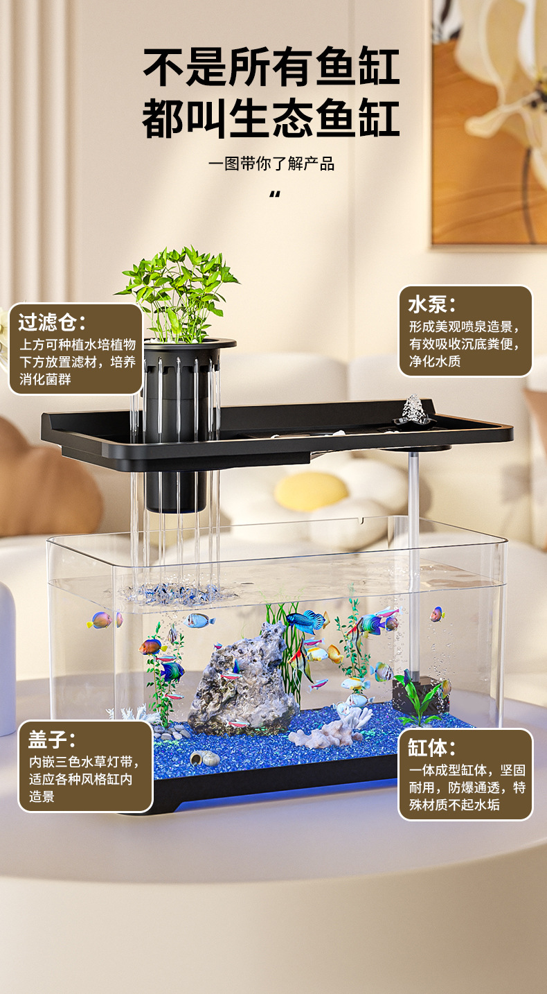 Kuo Ting 물고기 탱크 풍경 데스크탑 수족관 가정용 작은 금붕어 탱크 생태 필터 산소 만들기 기계 거실 물고기 탱크스토어 가기