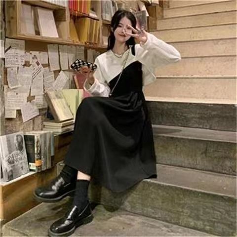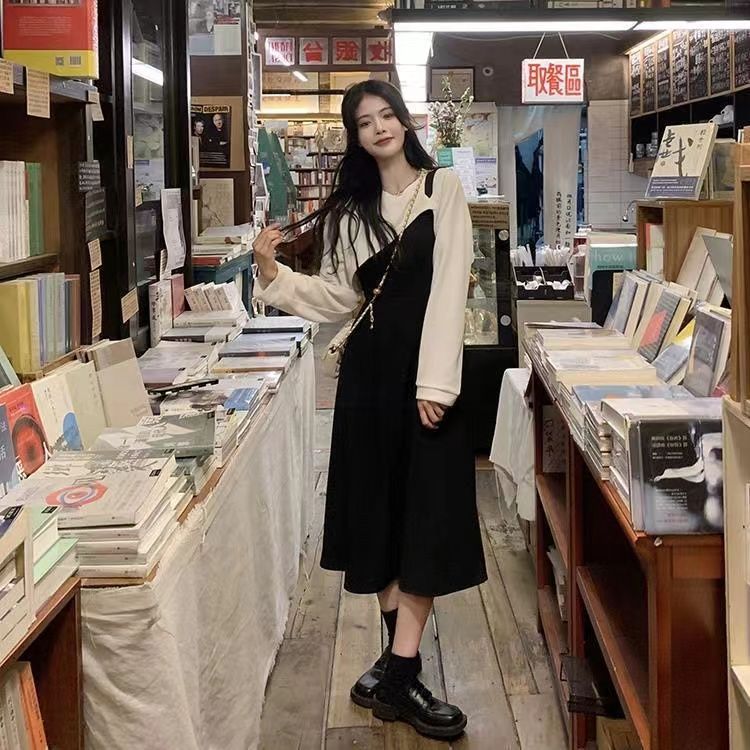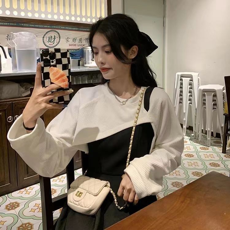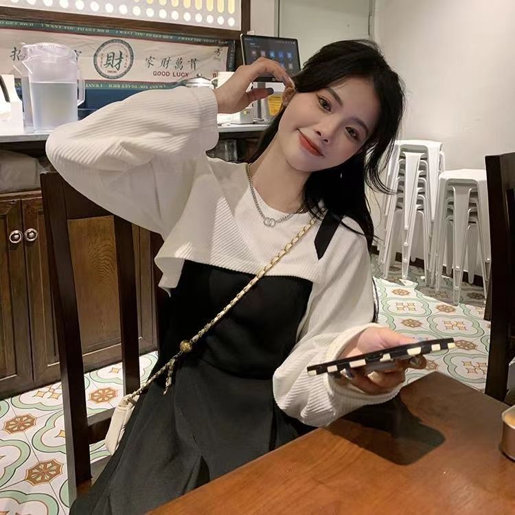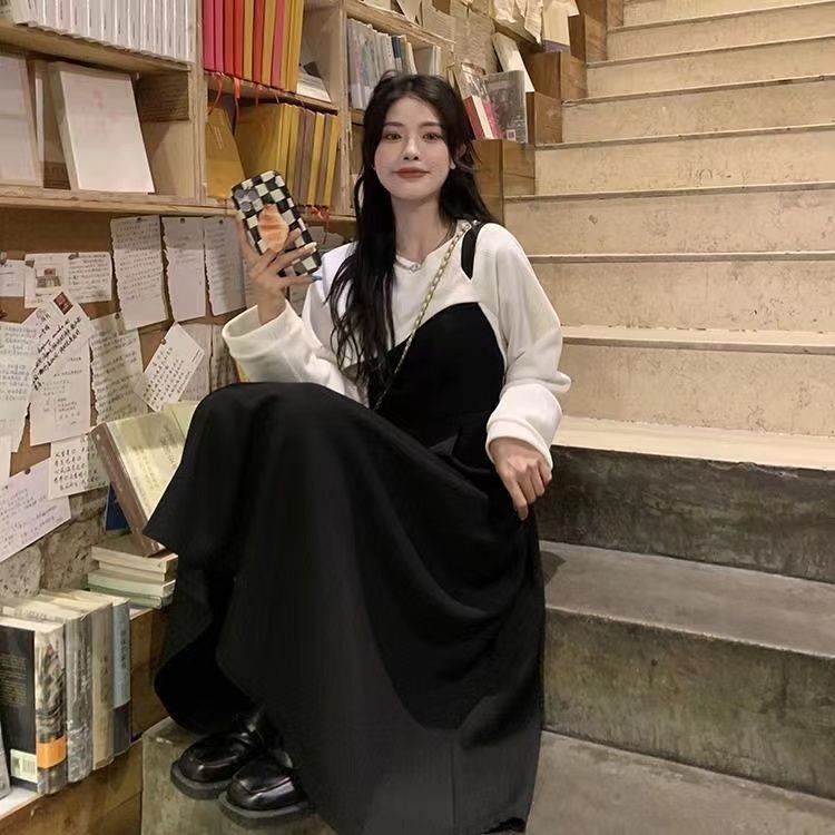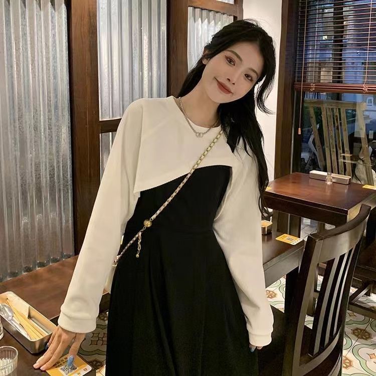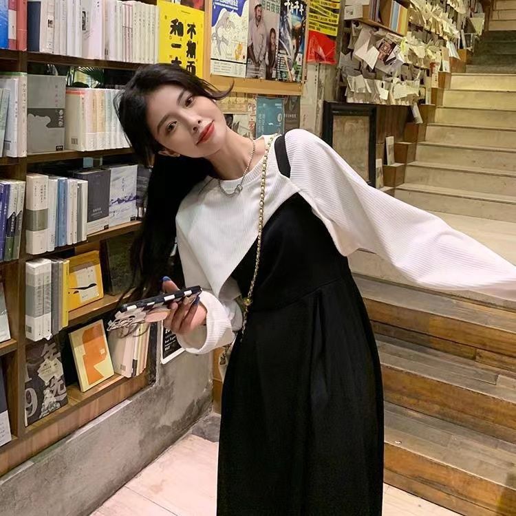 슬링 원피스 패션 세트 여성의 봄과 가을 2023 새로운 한국 중간 길이 슬리밍 스커트 투피스 세트스토어 가기
