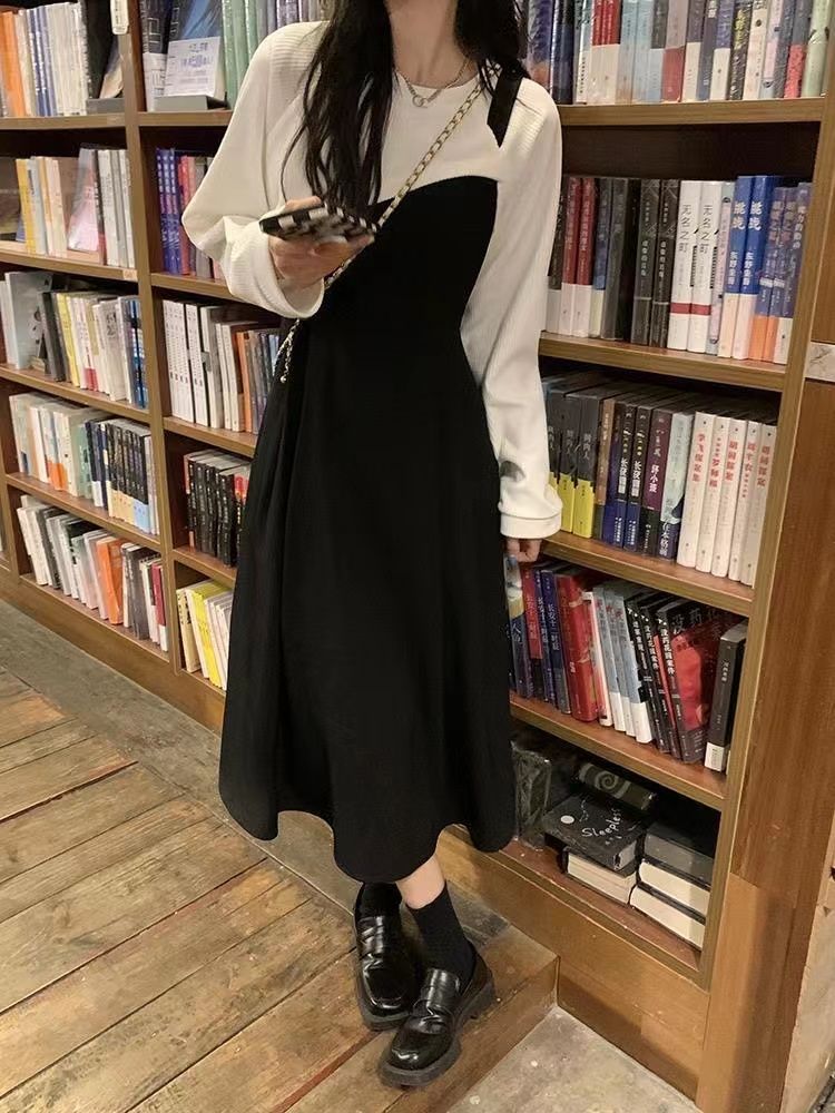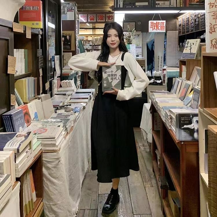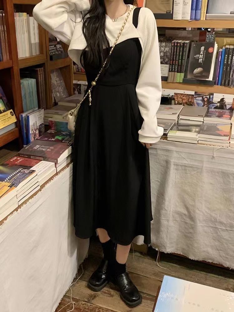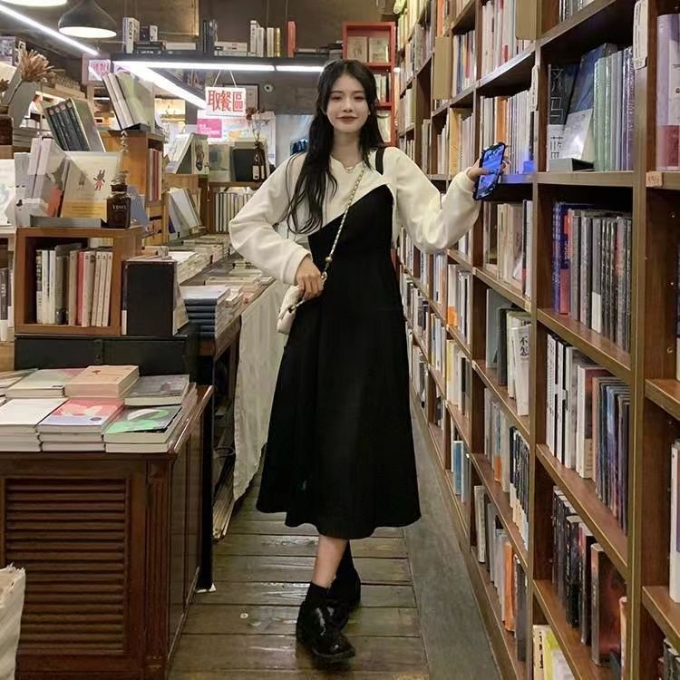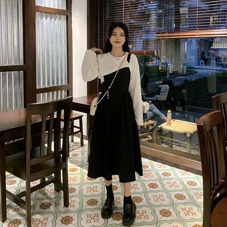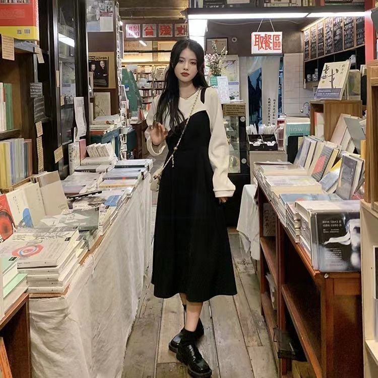 슬링 원피스 패션 세트 여성의 봄과 가을 2023 새로운 한국 중간 길이 슬리밍 스커트 투피스 세트스토어 가기