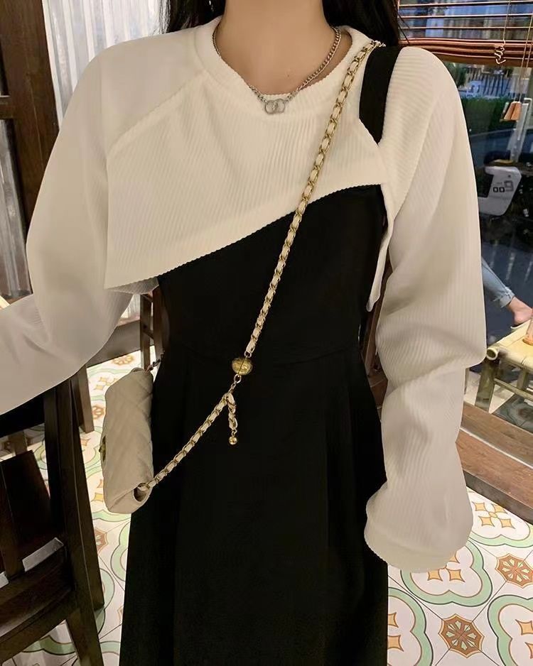 슬링 원피스 패션 세트 여성의 봄과 가을 2023 새로운 한국 중간 길이 슬리밍 스커트 투피스 세트