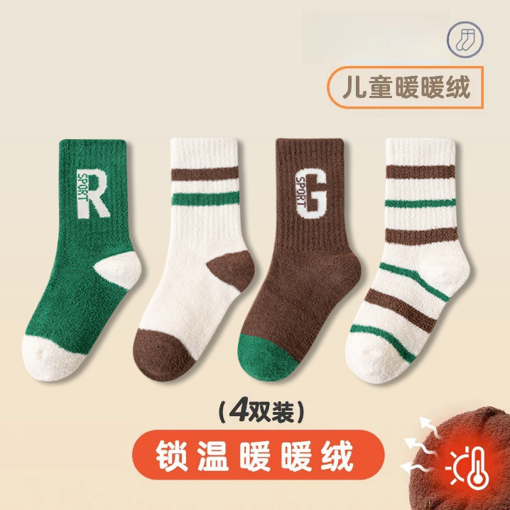 어린이 양말 겨울 기모 두꺼운 소년의 중년 아기 산호 양털 미드 튜브 양말스토어 가기