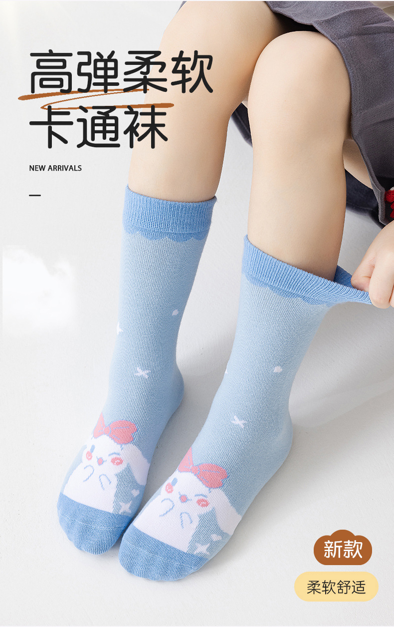 작은 토끼 가을 겨울 만화 소녀용 종아리 양말 귀여운 만화 어린이 트렌디한 직선형 면 양말 도매스토어 가기