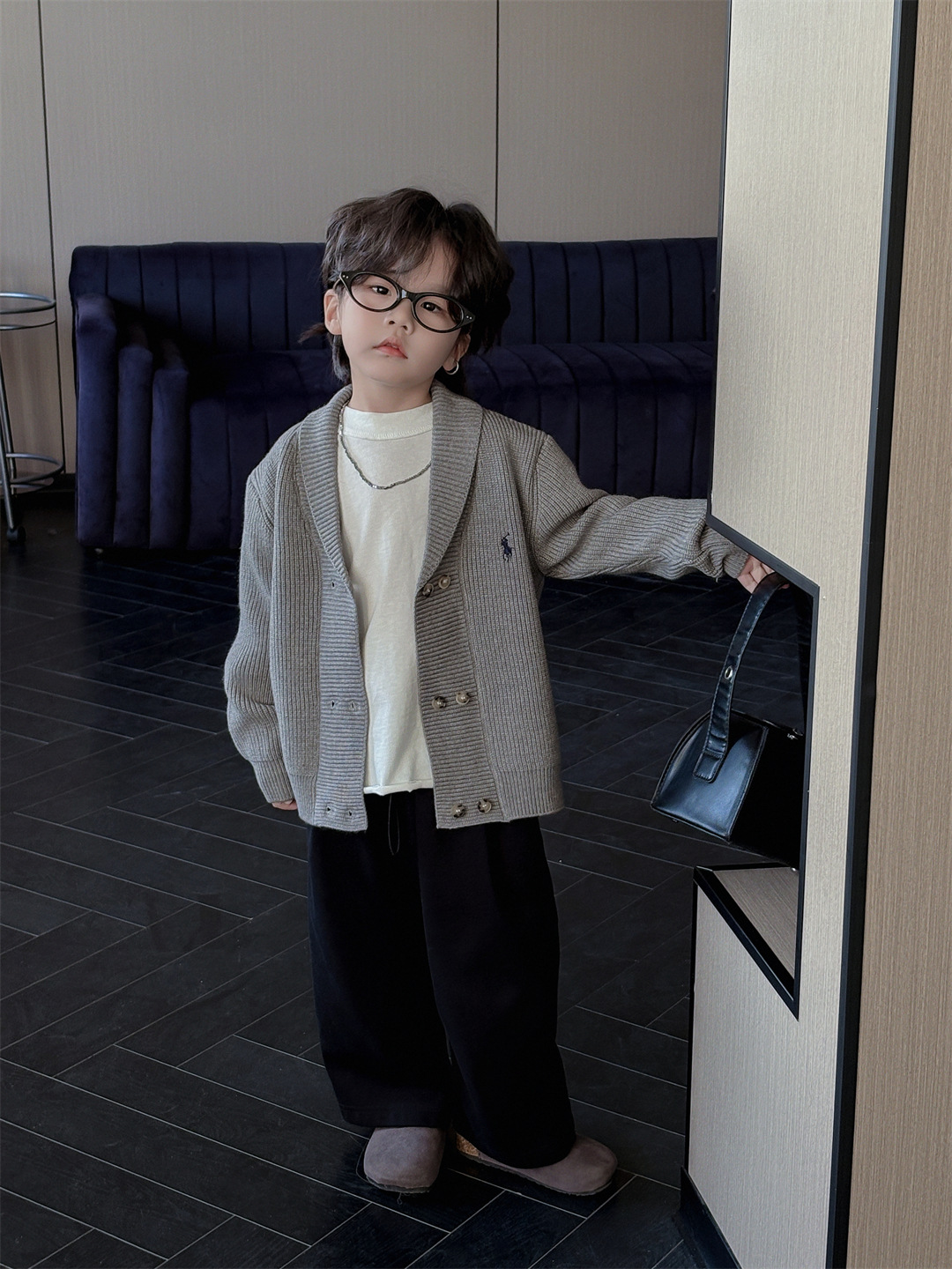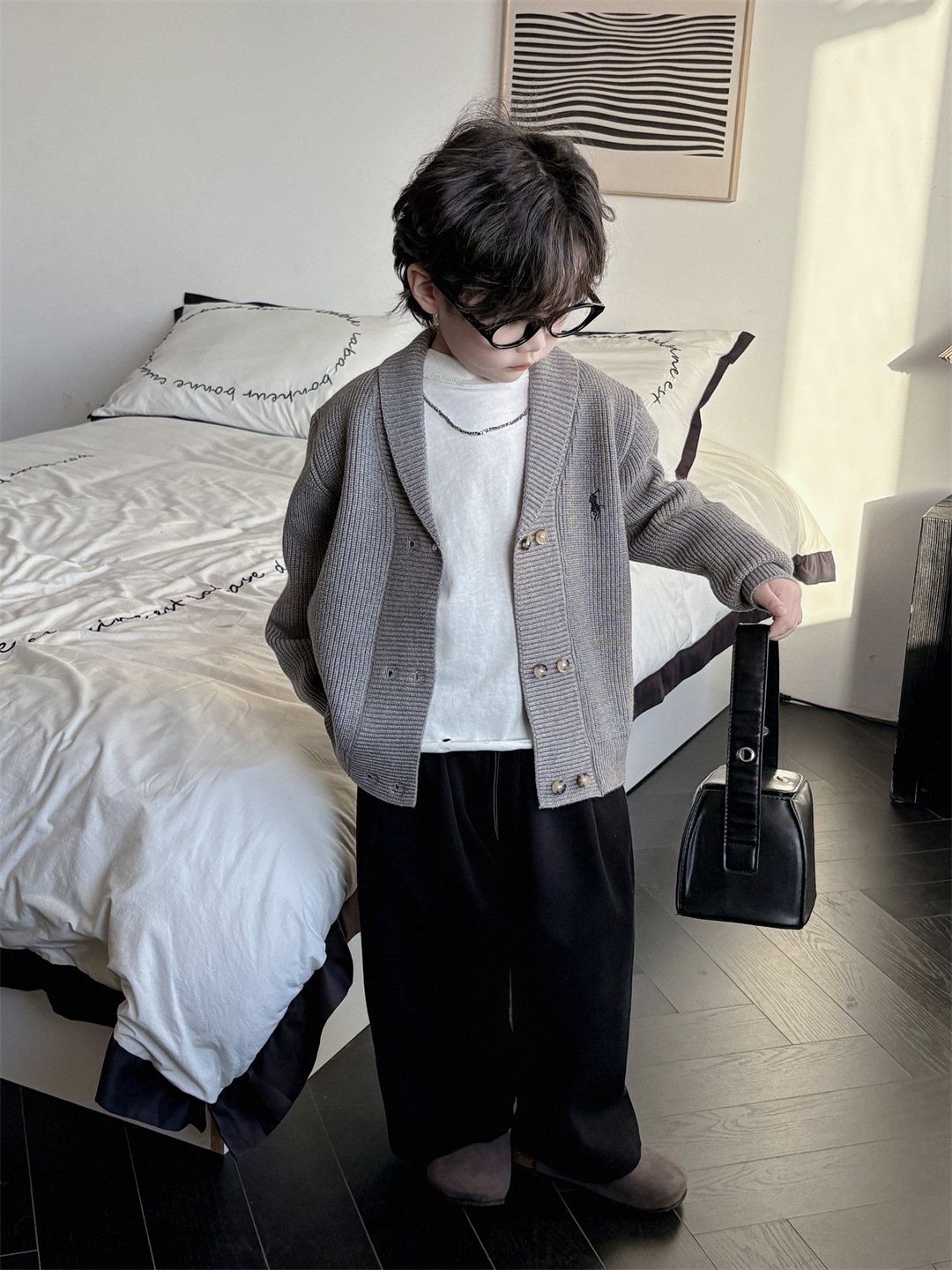 2025 년 봄 소년 니트 카디건 스웨터 릴 한국 탑 루즈 재킷 레트로 패션 게으른 타이드