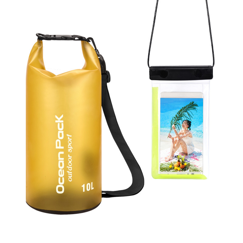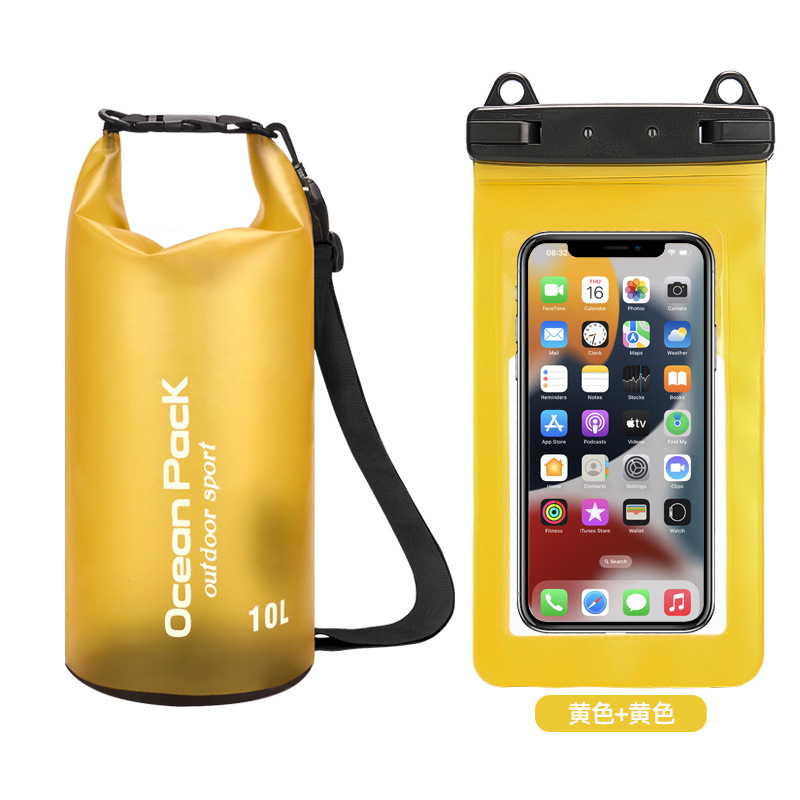 • PVC 방수 버킷 + 이중 후크 반투명 PVC 휴대폰 가방 = 노란색 + 노란색 조합 모델