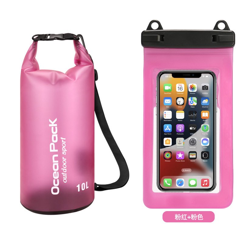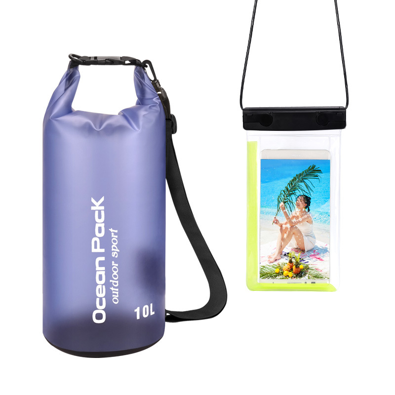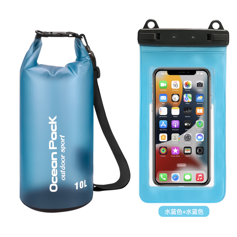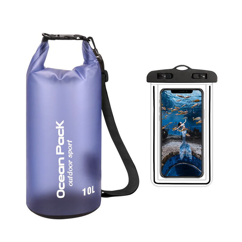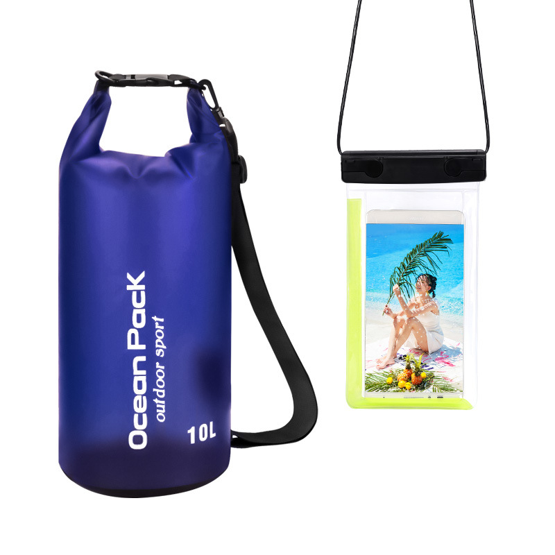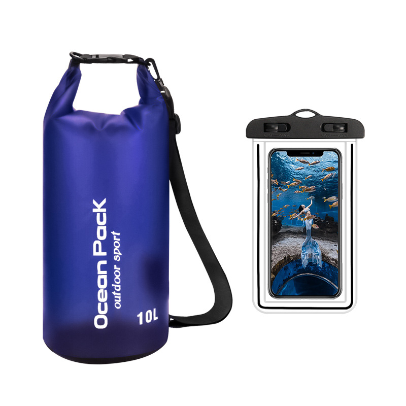 • PVC 방수 버킷 + 이중 후크 반투명 PVC 휴대폰 가방 = 진한 파란색 + 진한 파란색 조합