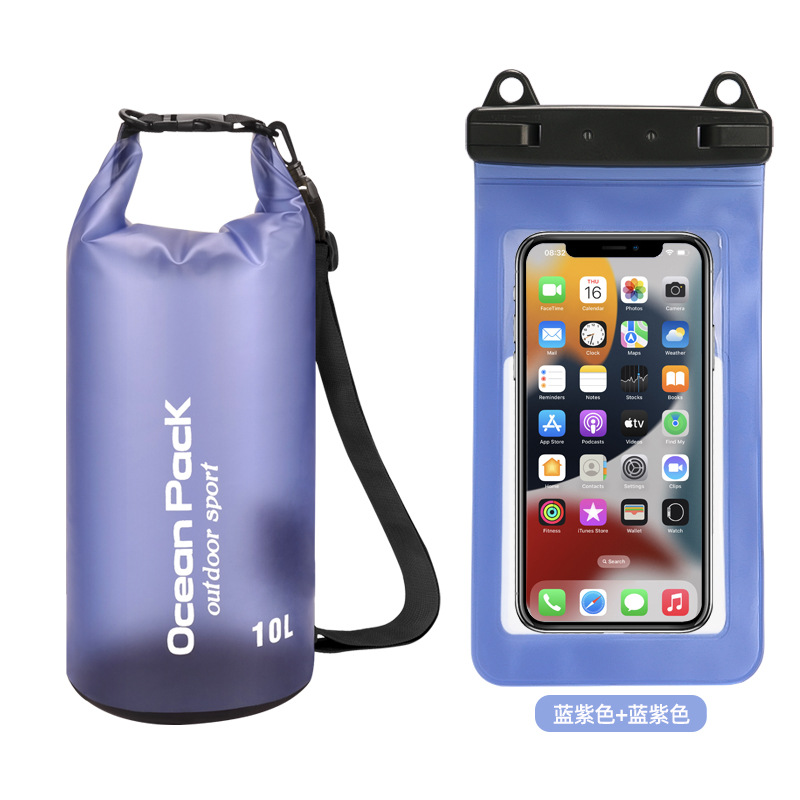 • PVC 방수 버킷 + 이중 후크 반투명 PVC 휴대폰 가방 = 파란색 보라색 + 파란색 보라색 조합 모델