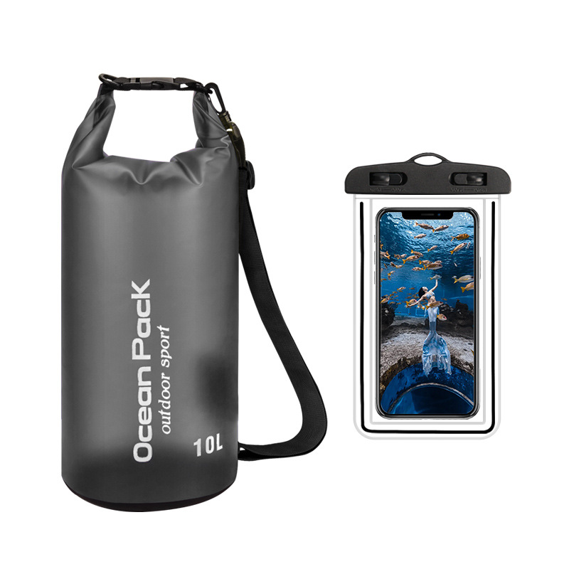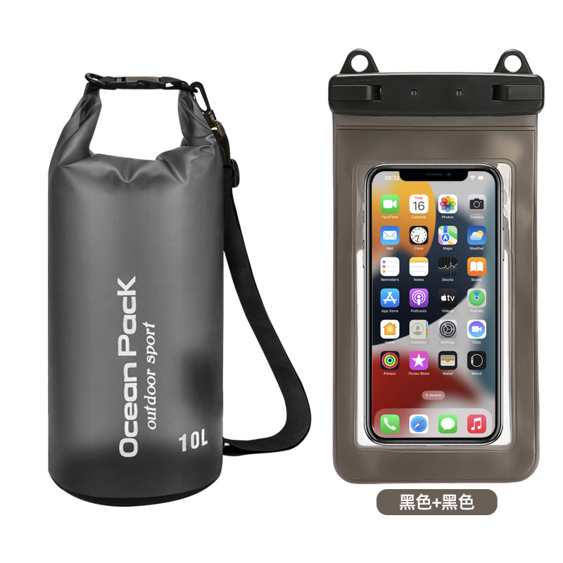 • PVC 방수 버킷 + 더블 후크 반투명 PVC 휴대폰 가방 = 블랙 + 블랙 조합 모델