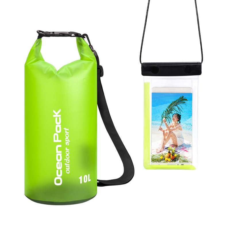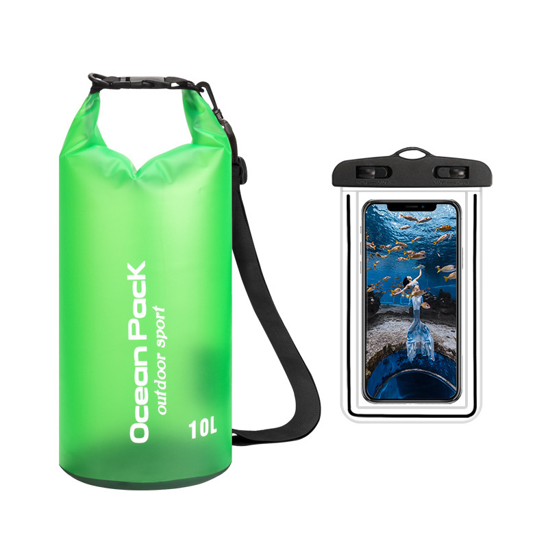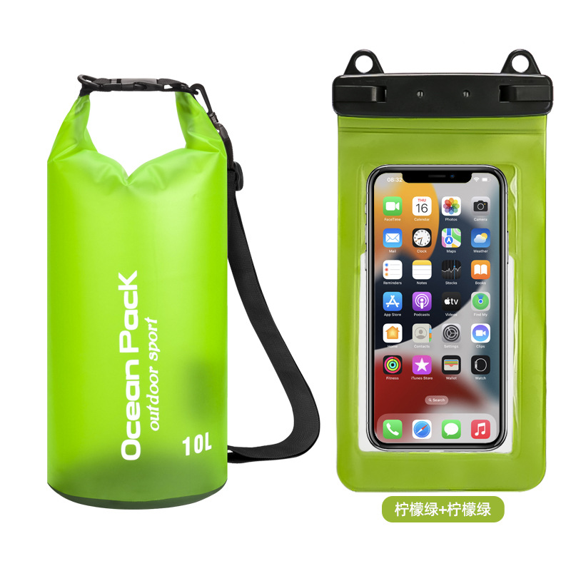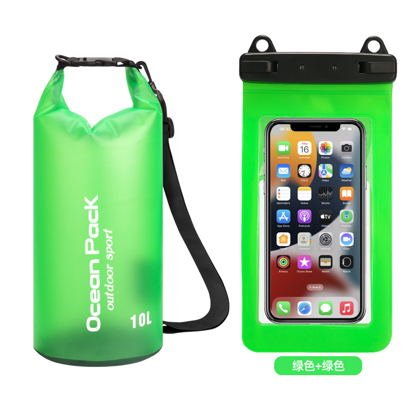 • PVC 방수 물통 + 이중 후크 반투명 PVC 휴대폰 가방 = 잔디 녹색 + 잔디 녹색 조합 모델