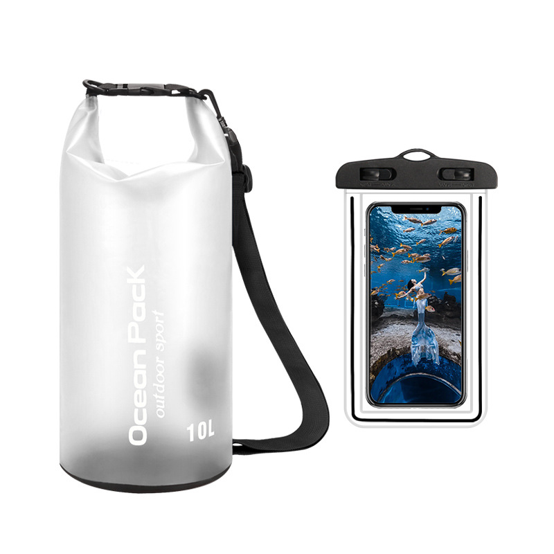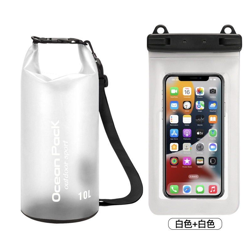 • PVC 방수 버킷 + 이중 후크 반투명 PVC 휴대폰 가방 = 흰색 + 흰색 조합 모델