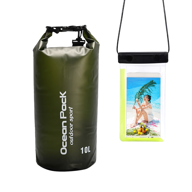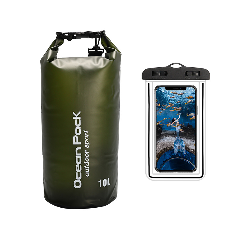 • PVC 방수 버킷 + 더블 후크 반투명 PVC 휴대폰 가방 = 밀리터리 그린 + 밀리터리 그린 조합