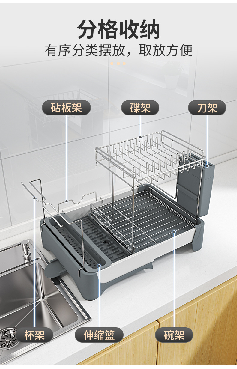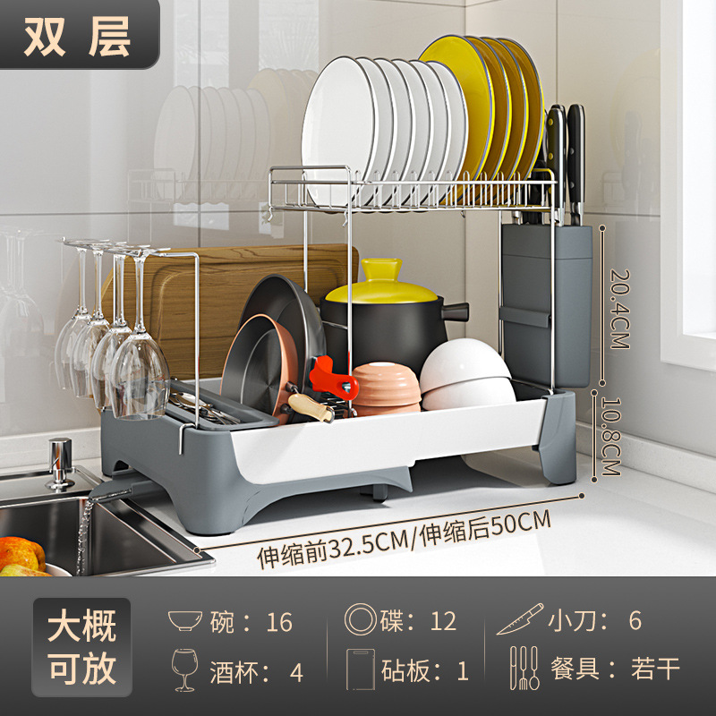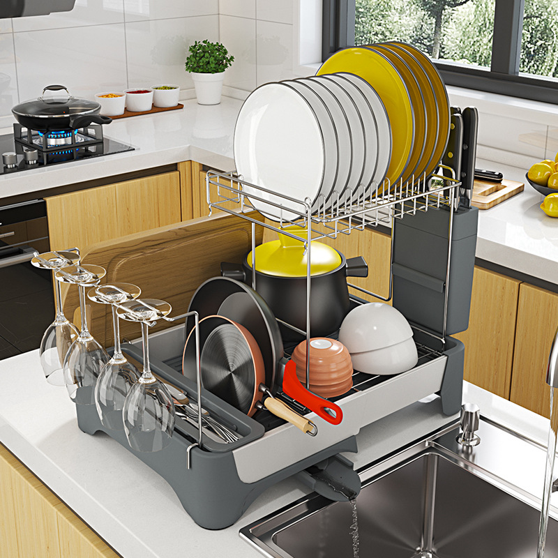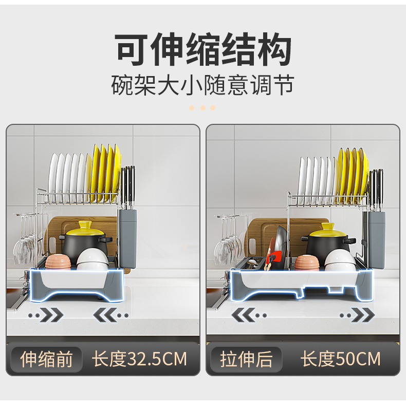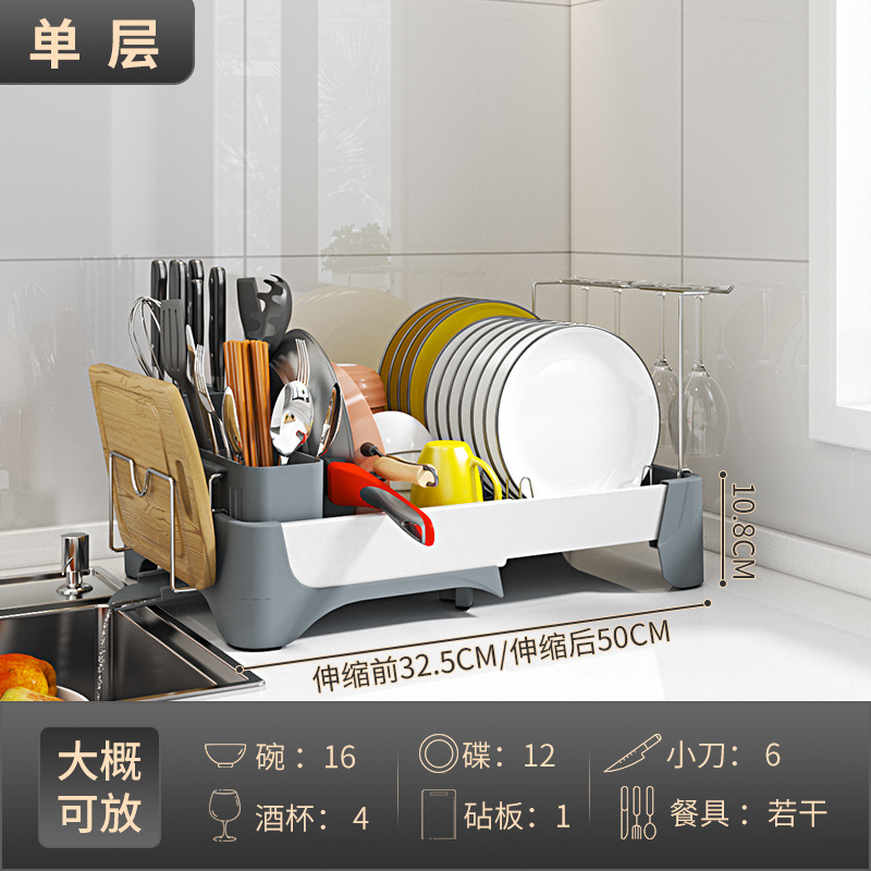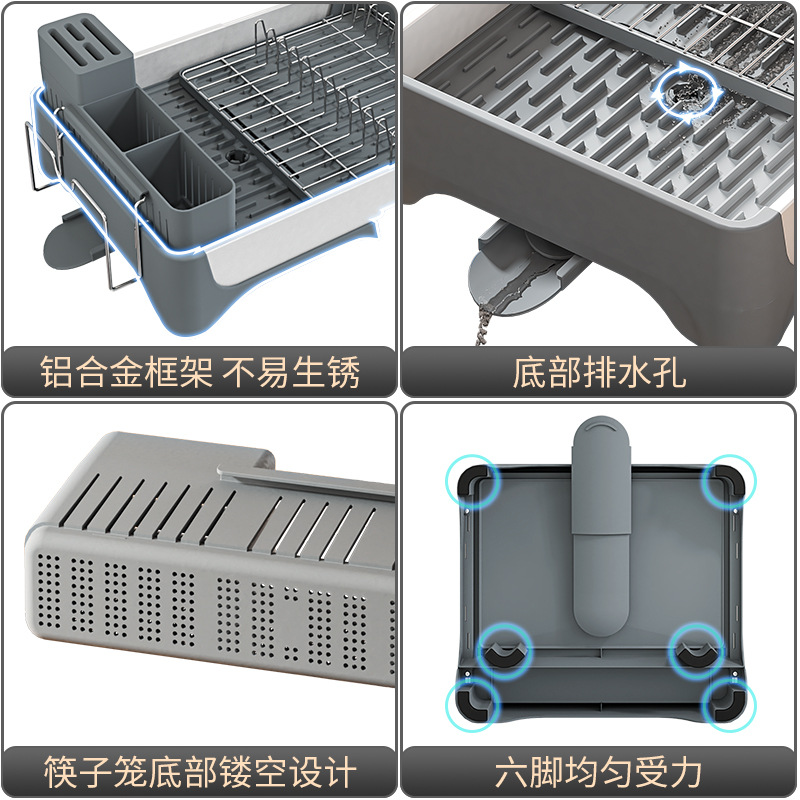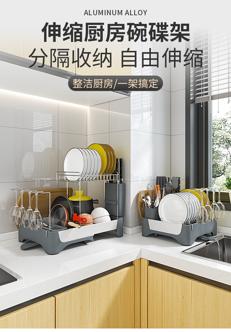 맞춤형 우주 알루미늄 텔레스코픽 식기 배수 랙 다기능 주방 식기, 컵 및 식기 보관 랙의 국경 간 특별 공급스토어 가기